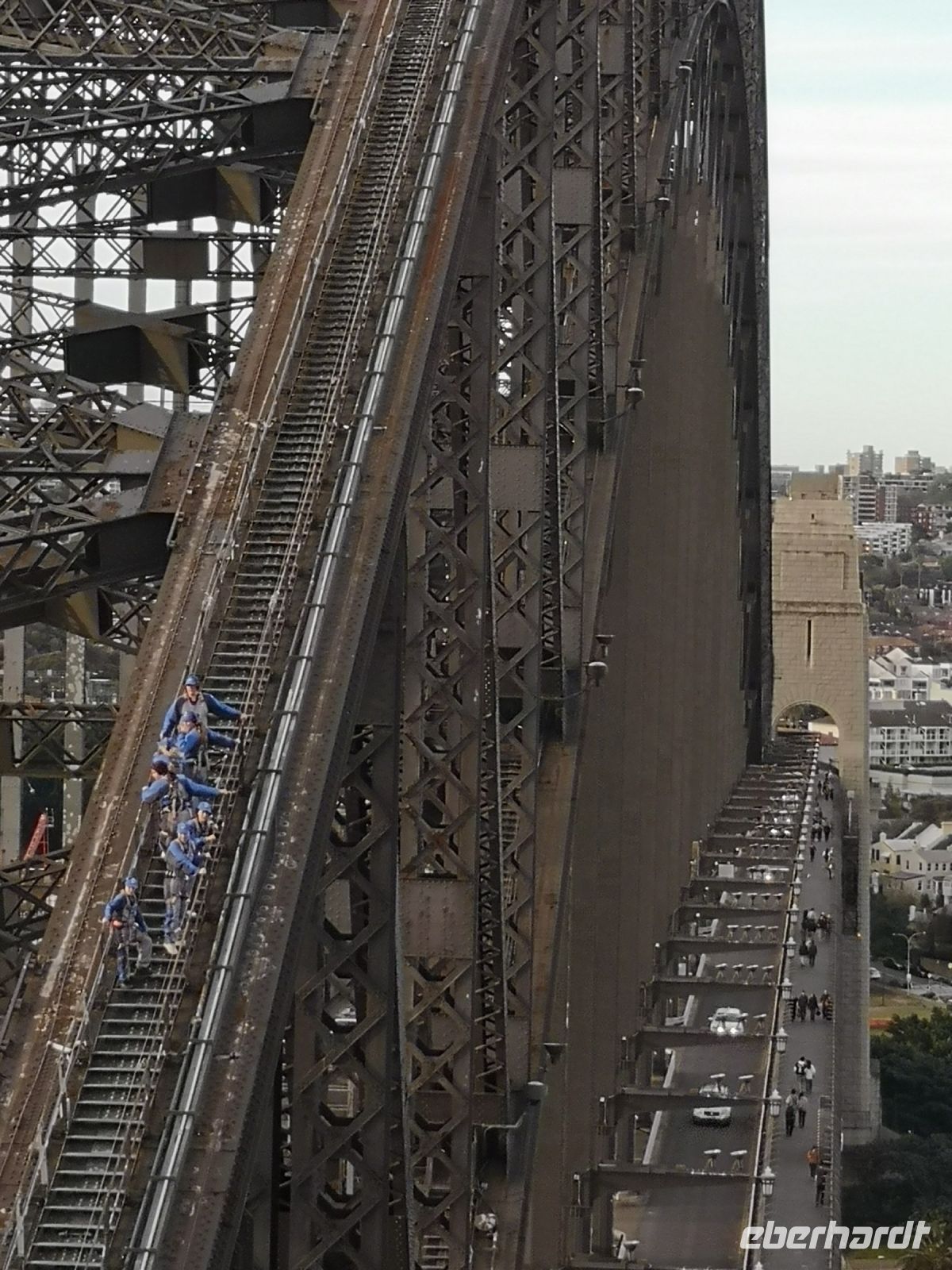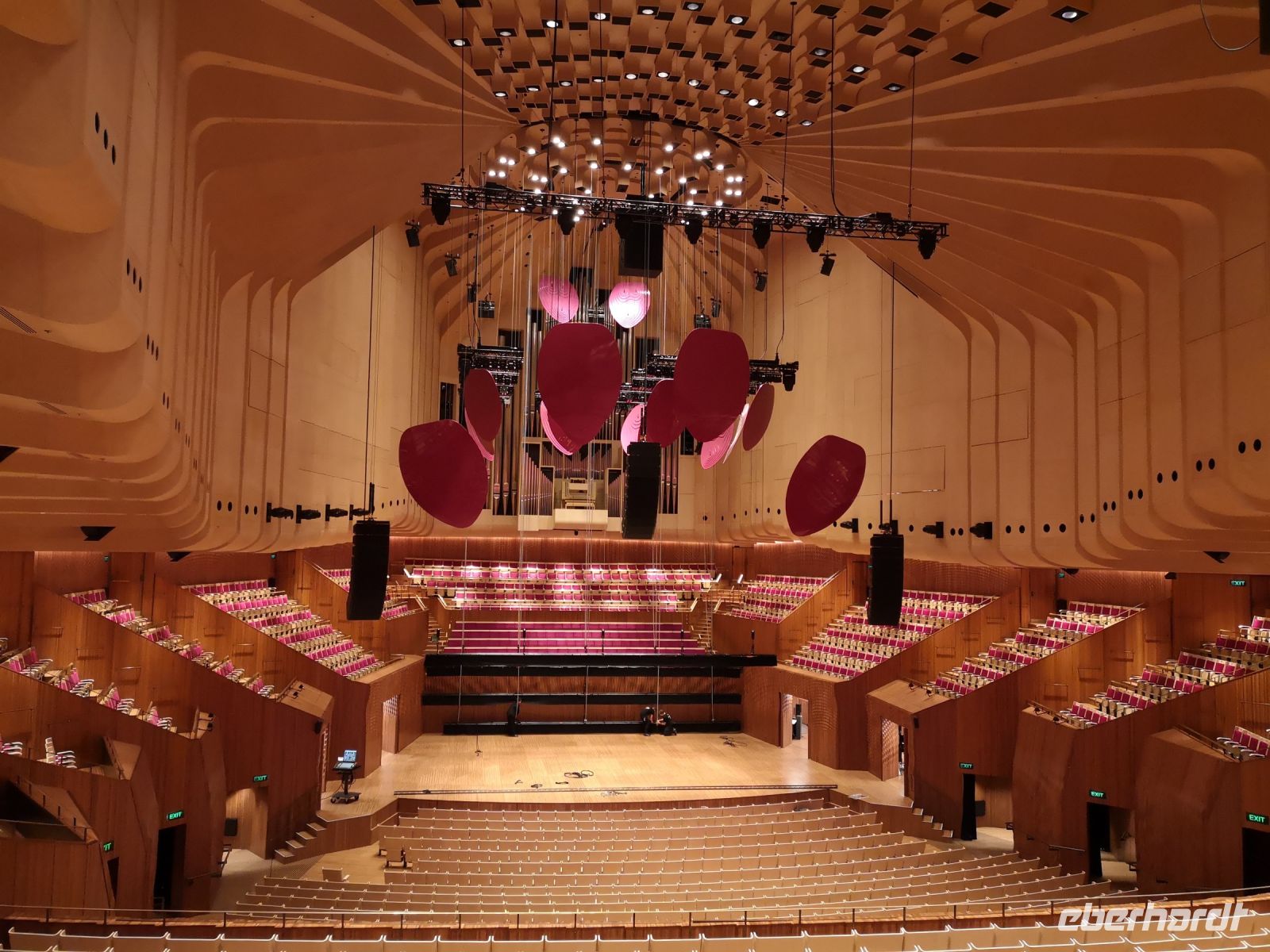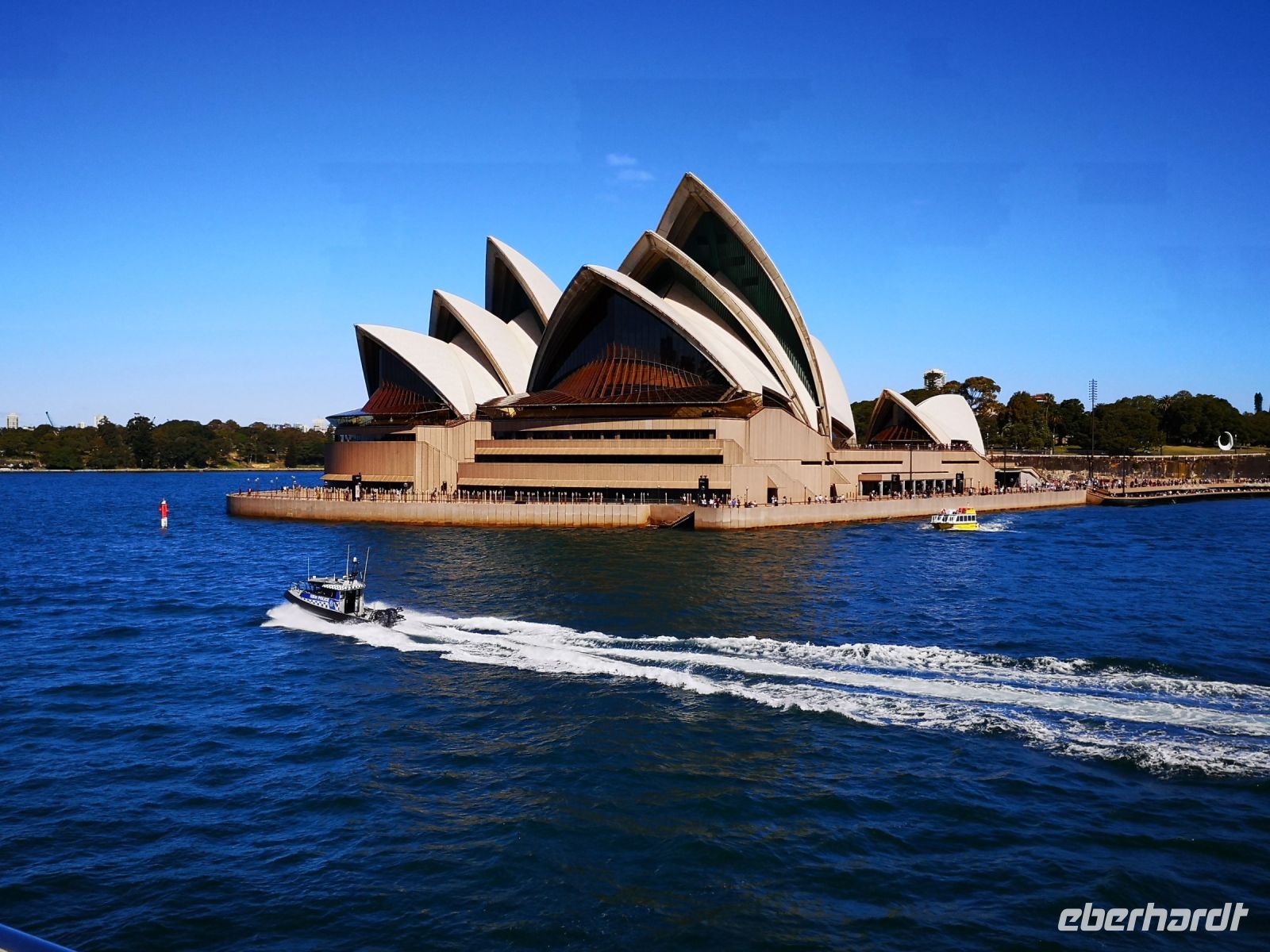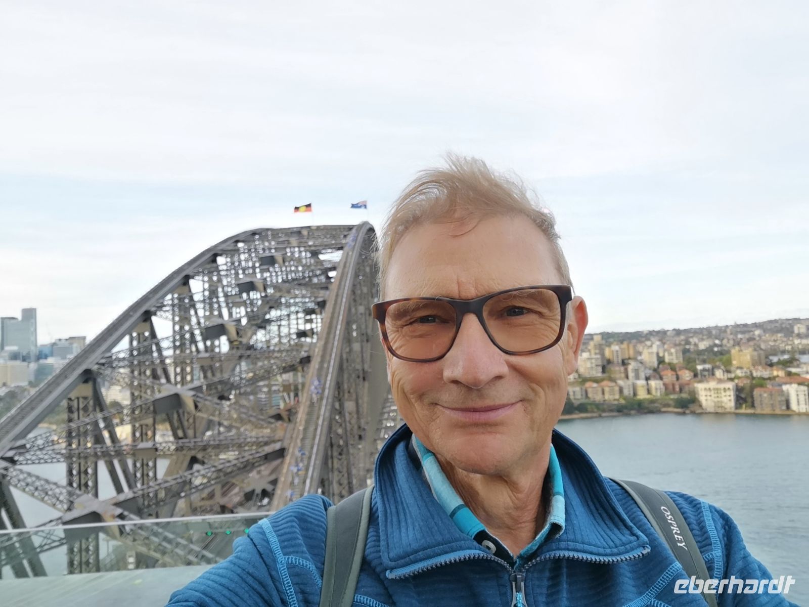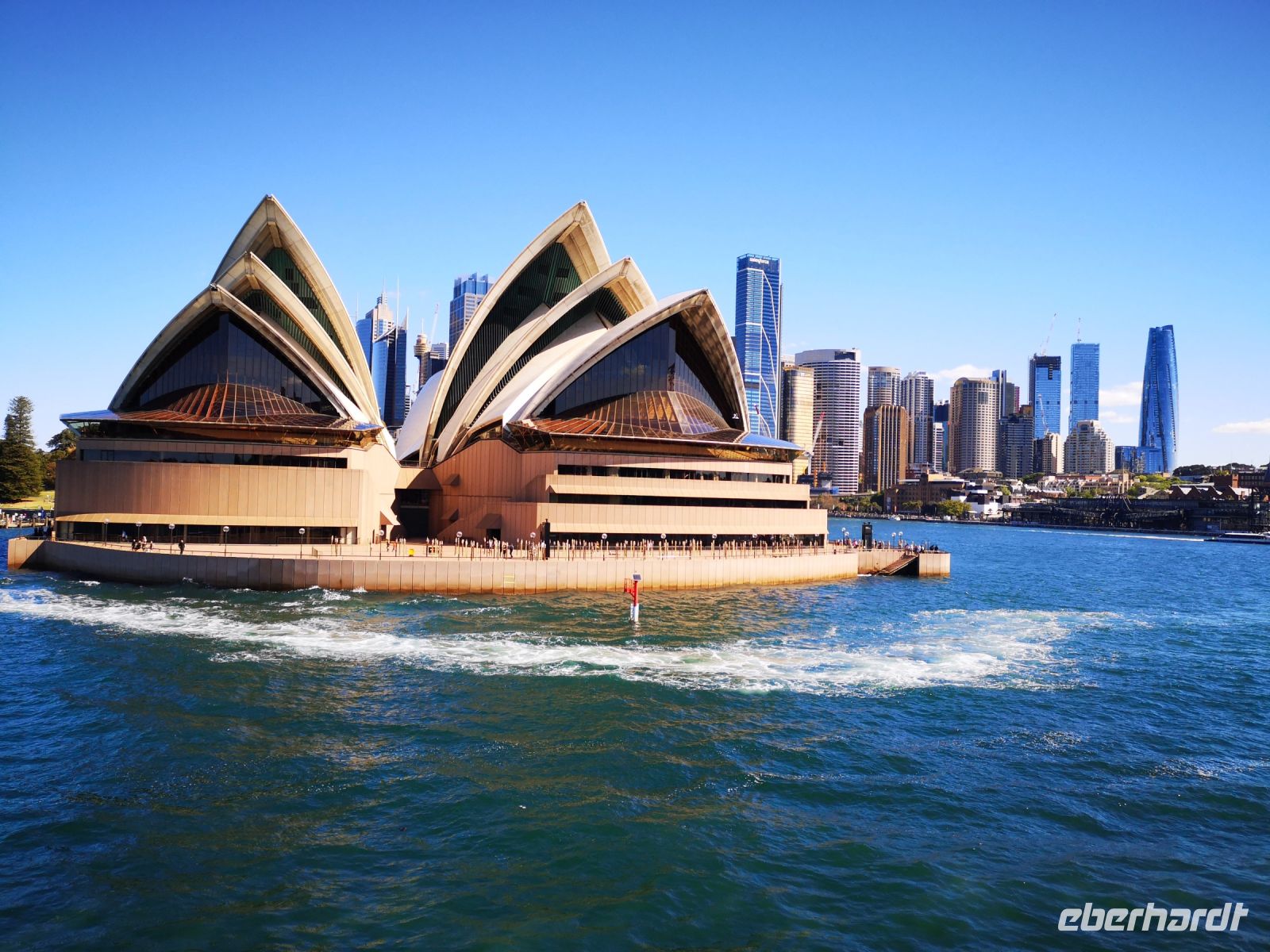 Die ganzen Sehenswürdigkeiten Sydney’s auf einem Blick vor uns. Habour Bridge, Opernhaus die glitzernde Skyline am Circular Quay. Dann unter der Brücke hindurch zum Darling Habour. Die Sicht auf die Stadt, nun vom Wasser aus, ist faszinierend. Das nächste Highlight ist eine Führung durch das berühmte Opernhaus. Hier sind wir ganz nahe an der Architektur, können die leuchtenden Fließen der Dachkonstruktion berühren. Im Innenraum tritt das Licht über die großen Fensterflächen gleichmäßig in die Aula der Oper ein. Wir besuchen die Konzertsäle die teilweise durch Requisiten für abendliche Aufführungen vorbereitet sind. Uli kennt sich im Opernhaus sehr gut aus, und übernimmt die Führung komplett selbst. Andi der der eigentliche Fremdenführer der Oper, lässt sie machen, denn er kennt ihre Qualität und direkt in deutscher Sprache ist es viel einfacher.
