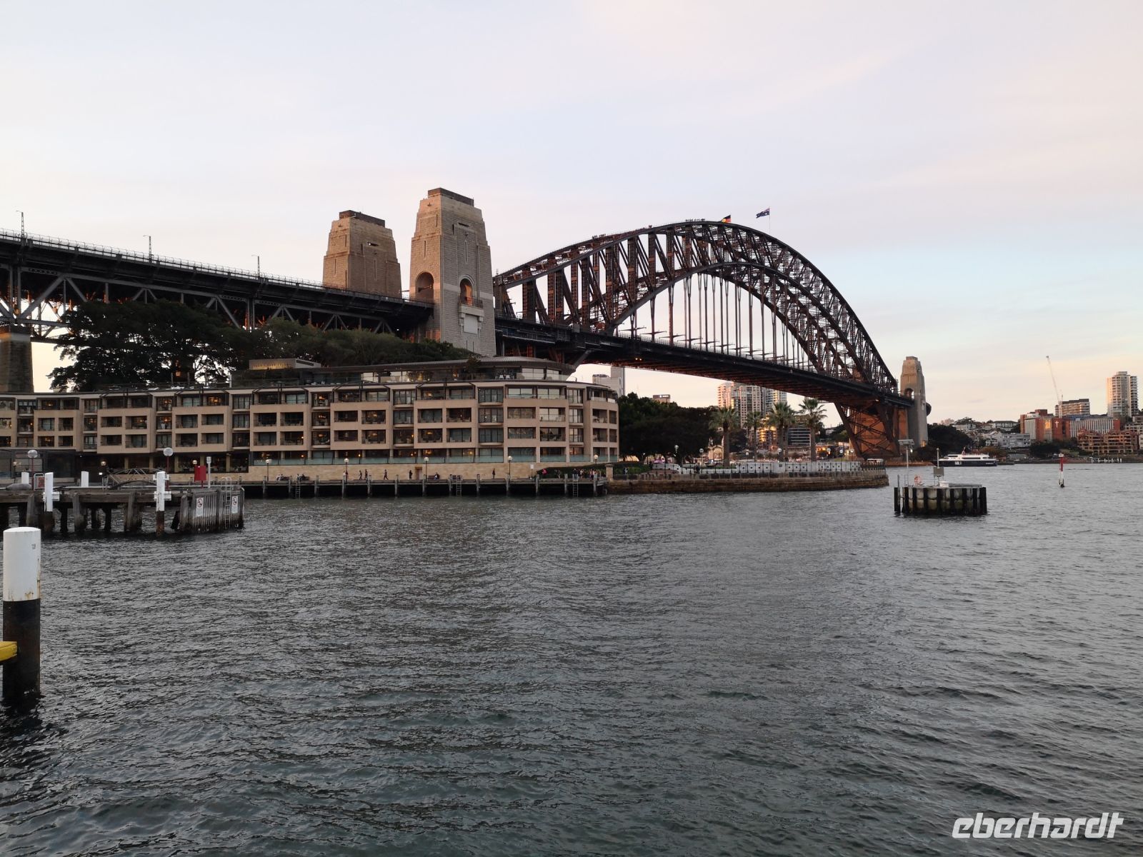 Nach dem Frühstück haben wir den Transfer zum Flughafen und nach 3 Stunden Flugzeit landen wir in Sydney. Schon beim Anflug der Stadt können wir die Bucht und die Oper sehr gut sehen. Die Neugierde auf die Stadt kann man einfach nicht leugnen, nachdem wir jetzt den ersten Blick in das Zentrum getan haben, wollen wir mehr davon erleben. Uli unserer Reiseleiterin kann wohl unsere Neugierde erraten und hat uns gleich während dem Transfer zum Hotel eine vorbereitete Stadtkarte überreicht, wo sie die interessantesten Orte eingezeichnet hat und den Weg von unserem Hotel super markiert. Wir konnten damit gleich nach dem Einchecken im Hotel, auf eigene Faust losziehen und über die Elisabeth Street die Harbour Bridge ansteuern. Wir haben uns in einzelnen kleinen Gruppen auf den Weg gemacht, ohne Abstimmung wohin wir gehen, doch überraschenderweise trafen wir uns fast alle wieder auf der Harbour Bridge, kurz vor dem Sonnenuntergang. Von hier bietet sich eine tolle Panoramasicht über die Bucht, den Circular Quay und das Opernhaus. Nach diesem Treffen teilten sich unsere Wege wieder und wir verzweigten uns auf unterschiedliche Highlights in der Stadt. Ziele waren das Victoria Building mit den traditionellen Geschäften, der langgezogene Hydepark mit der St. Mary’s Cathedral und auch das Drehrestaurant „O Bar“ in der Georg Street. Hatte man genug gesehen konnten wir mit der seit einigen Jahren erbauten Straßenbahnlinie, der L2, schnell zum Hotel zurückkehren, denn einige von uns hatten im Restaurant eine Verabredung zum Abendessen.