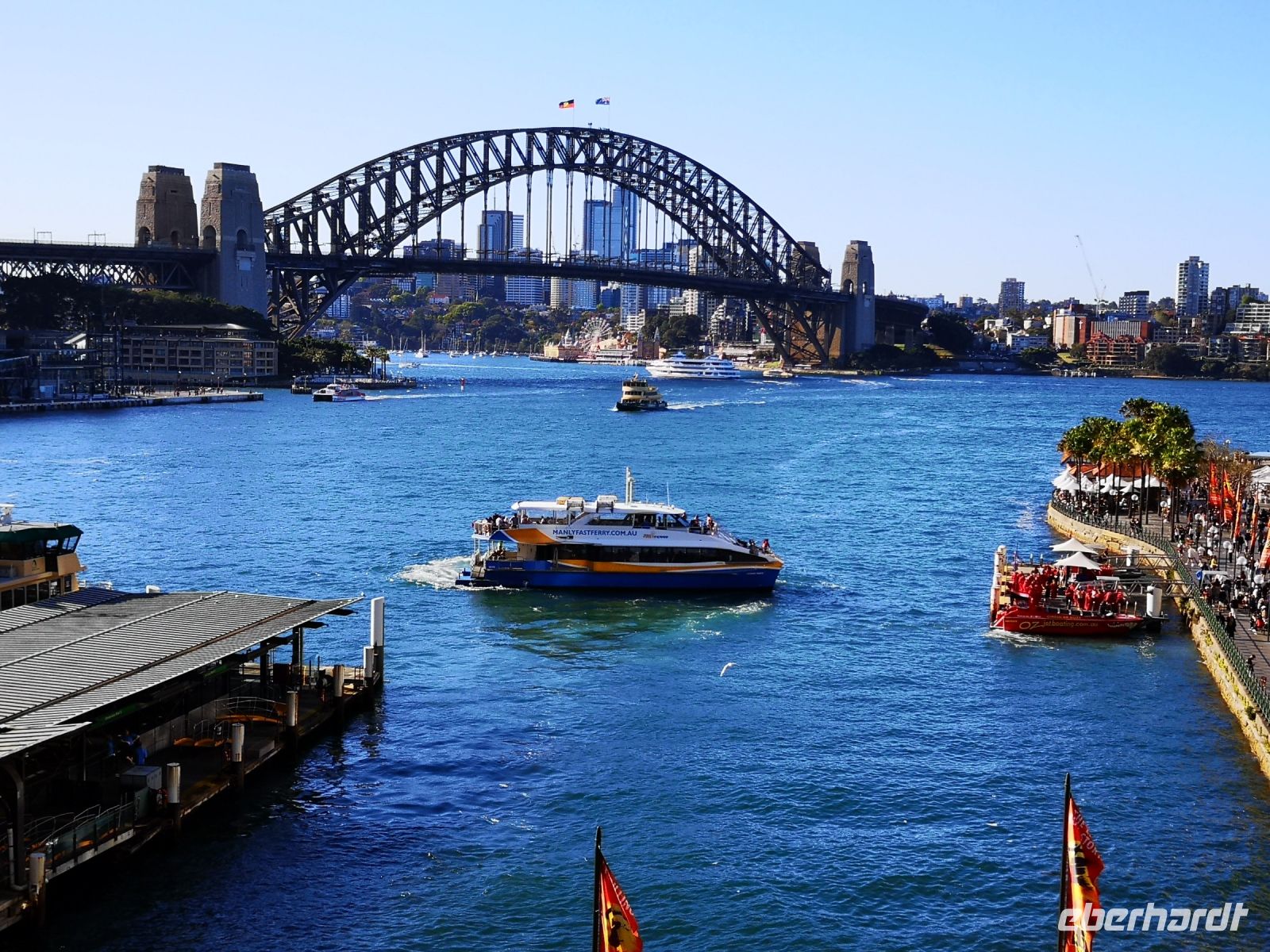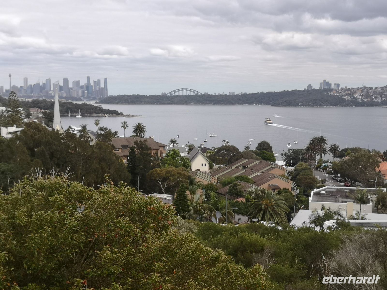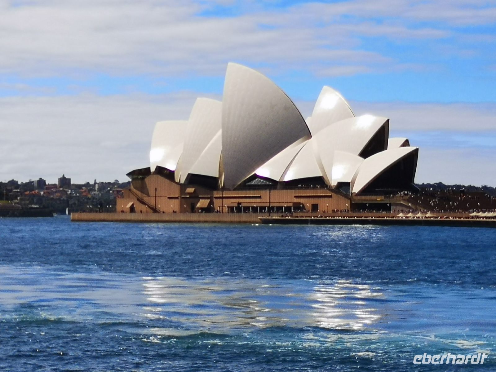 Die Ausdehnung der Stadt erstreckt sich über 2000 qkm, sie umschließt den weit verästelten Parramatta River komplett und bietet der Stadt sehr viel Küstenfläche mit schönsten Lagen. Unser erster Stopp ist an der Watsons Bay, mit Blick weit in den Ozean hinaus. Wir folgen der Ozean Küste nach Süden und kommen zu den schönsten Stränden. Einen Stopp machen wir beim berühmten Bondi-Beach, einem beliebten Surfer Treff. Hierher wird auch gern mal der schicke Sportwagen gelenkt und dekorativ vor dem Strand geparkt. Zurück aus den Vororten kehren wir in die Stadt zurück, am Botanischen Garten gehen wir zu Mrs.Macquarie’s Chair. Hier war der Sehnsuchtsort der Frau des damaligen Gouverneurs. Sie lies sich hier 1811 eine hölzerne Sitzbank platzieren, damit sie beobachten konnte wenn das nächste Schiff aus England eintraf, ihr Heimweh war sehr groß. Im Stadtteil The Rocks, die erste englische Siedlung Australiens, verbringen wir die Mittagszeit. Am Nachmittag wechselten wir von der Straße auf das Wasser. Am Circular Quay machten wir erstmal Mittagspause und konnten dort den Straßenkünstlern zuschauen und auf dem Markt bei Händler-und Essensständen uns ausruhen. Danach machten wir eine Hafenrundfahrt mit dem Schiff und hatten eine perfekte Sicht auf das facettenreiche Gebäude der Oper. Während der Umrundung mit dem Schiff und dem ständigen Wechsel der Perspektive, produzierten wir vermutlich hunderte von Fotos. Jeder neue Blickwinkel und jeder neue Schattenschlag ergab wieder neue reizvolle Aufnahmen.