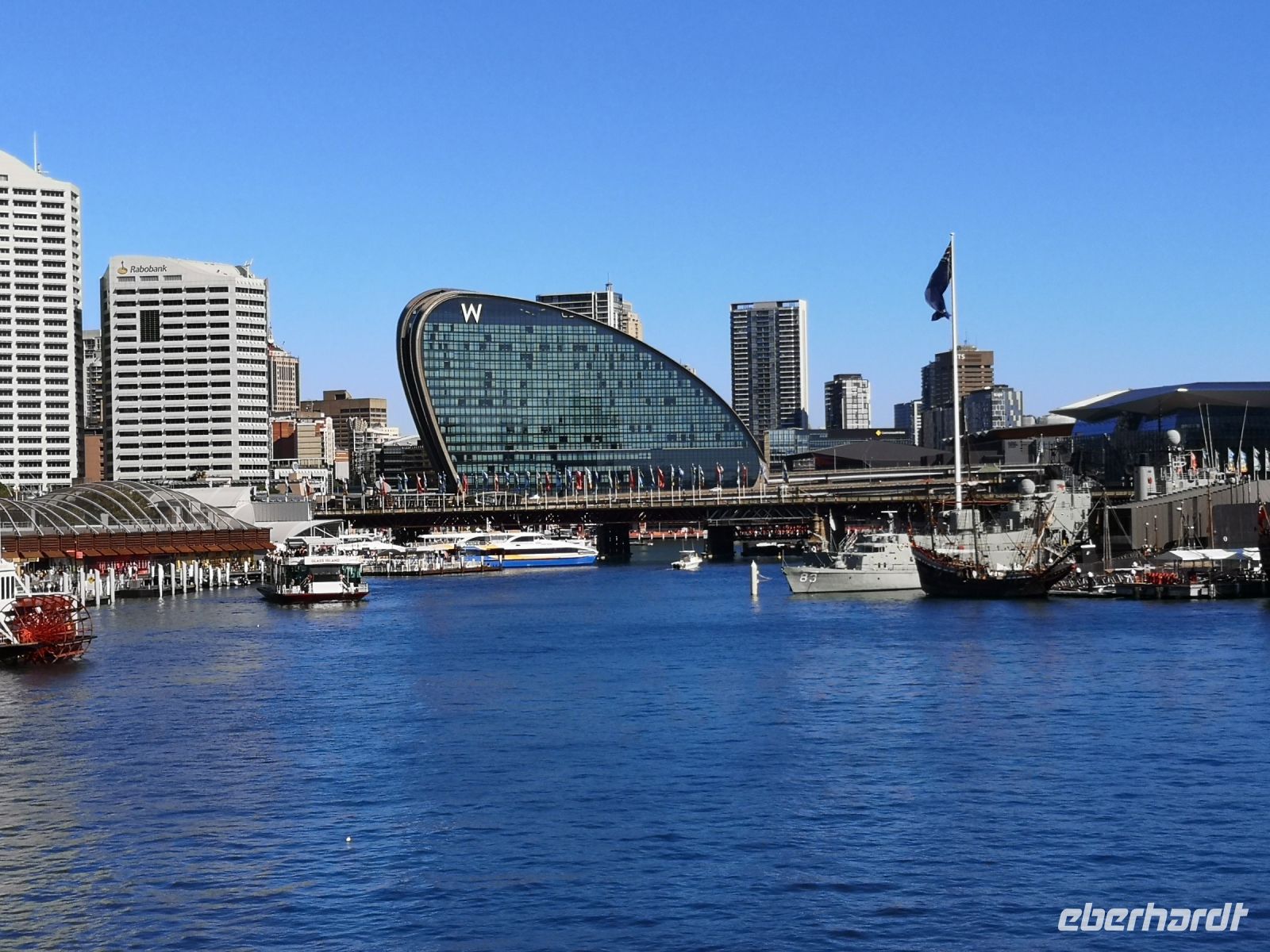 Am Ende der Führung durch das beeindruckende Gebäude, die Aulen und Konzertsäle machen wir uns auf einen gemütlichen Spaziergang durch den Botanischen Garten hoch bis zur King Street und dann rechts, immer gerade aus bis zum Darling Habour.