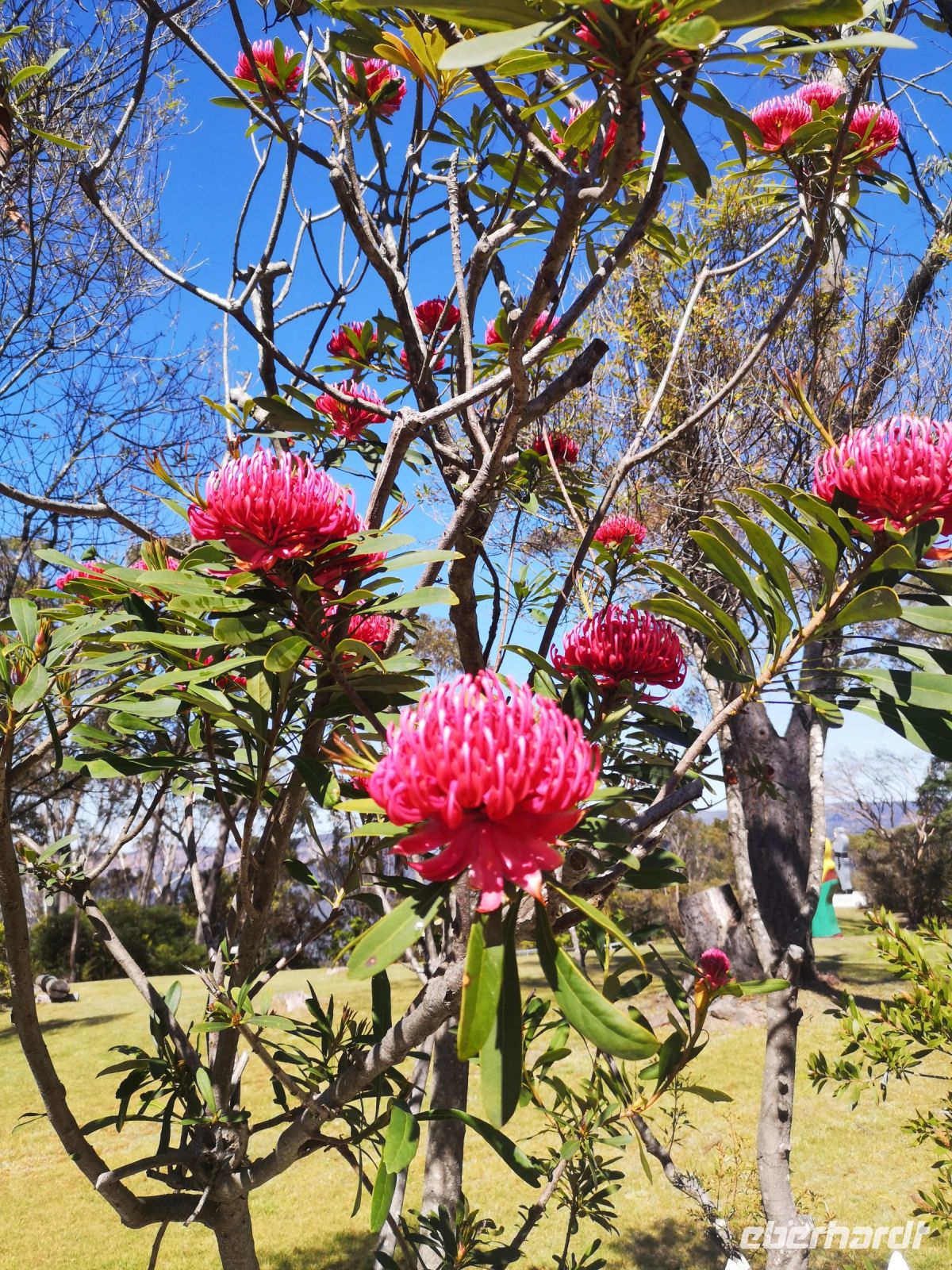 Bei einem weiteren Stopp im Nationalpark, sehen wir eine große Ansammlung von Grastrees. Bäume, die grüne Blätter treiben, die aussehen wie lange Grashalme. Hier hören wir das erste Mal von der „heilenden“ Wirkung der Buschbrände. Denn diese Grastrees bilden meist erst nach einem Buschfeuer ihre Blüten und Samen aus und sorgen damit zur Verbreitung neuer Ableger.