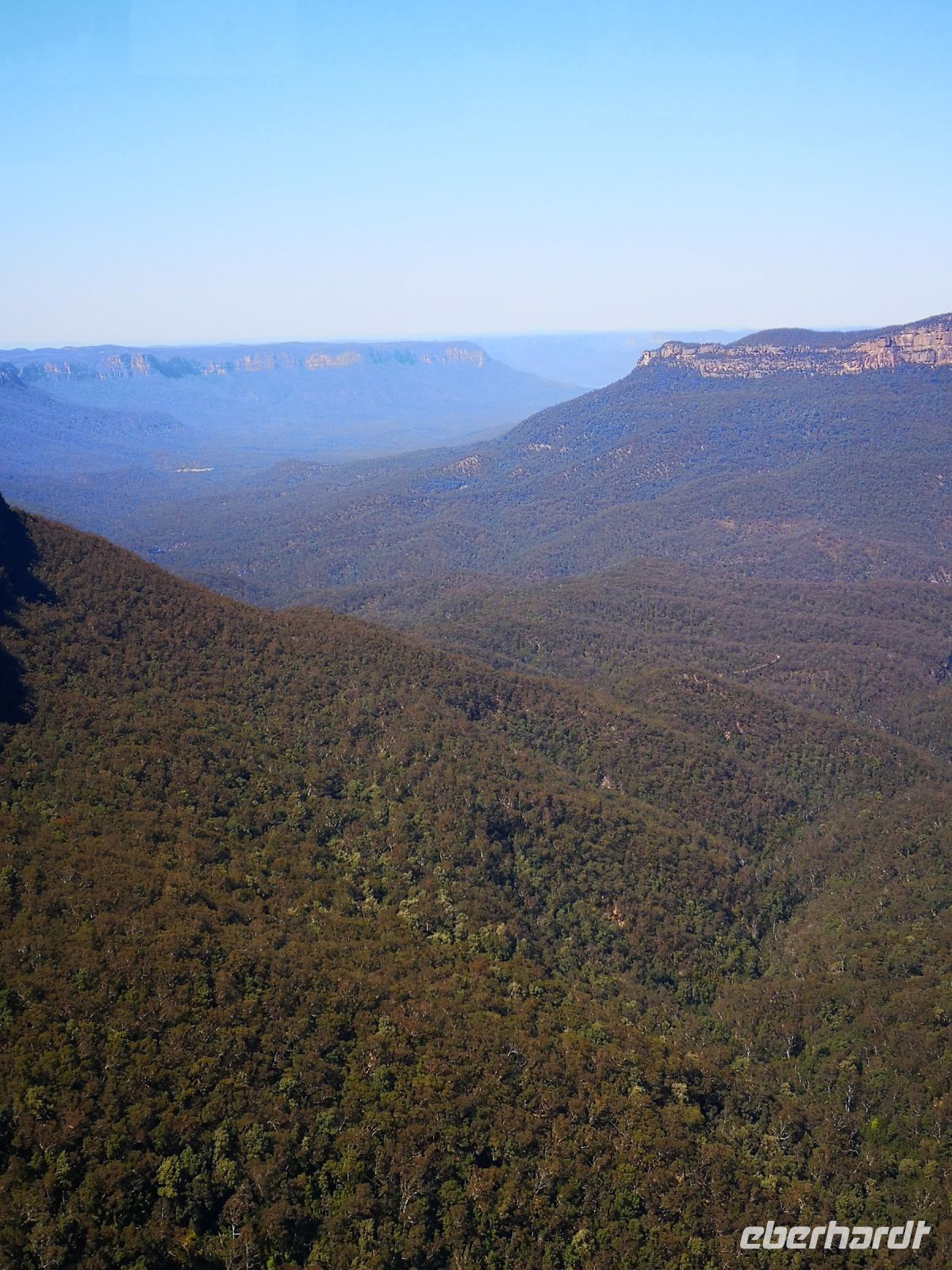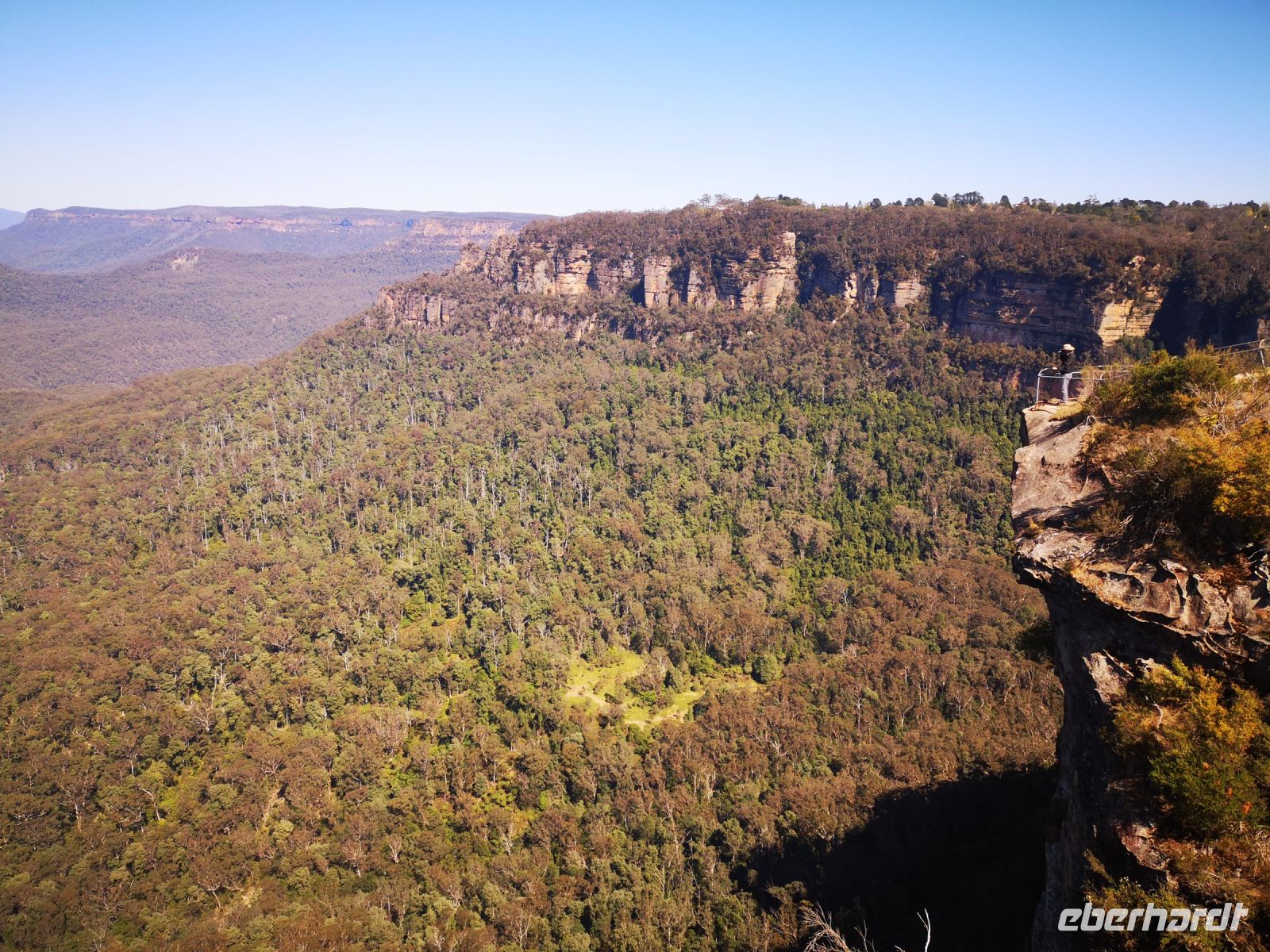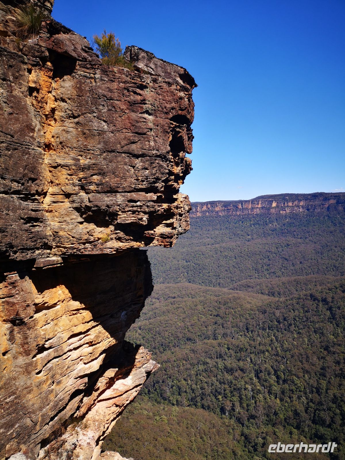 Wieder haben wir auch heute tolles Reisewetter, Sonne und klarer blauer Himmel. Perfekt um heute in die Blue Mountains zu fahren. Wir fahren von Sydney am Morgen los und entscheiden uns direkt ohne Zwischenstopp nach Katoomba zu fahren. Die Sicht in den riesengen zusammenhängenden Wald, bestehend aus überwiegend Eukalyptusbäumen ist am Morgen am schönsten. Die Bäume verdunsten über ihre Blätter einen Nebel aus Eukalyptusöl, der als blauer Dunst über den Bäumen schwebt. Durch die Morgensonne ist diese Erscheinung am besten zu beobachten. Die Blue Mountains sind ein Teil des Gebirgsmassives Great Dividing Range. Dieses Gebirge verläuft parallel zur Ostküste Australiens und teilt das Hinterland von der Küste ab. Nach der Besiedelung Sydneys hat man viele Jahre vergeblich versucht die Blue Mountains zu durchdringen um neuen Raum für weitere Siedler zu finden. Erst nach fast 20 jährigem Bemühen gelang es einer Expedition, der unter anderen auch Gregory Blaxland angehörte, das stark bewachsene Bergmassiv zu durchdringen. Sie durchquerten das Gebiet auf derselben Route wo heute der Great Western Highway verläuft. Auf diesem Highway sind wir heute Morgen mit dem Reisebus unterwegs und gelangen zeitig zu dem Aussichtsplateau „Echo Point“. Von hier hat man eine weite Sicht über die Berge, über den Dunst der des blauen Nebels. Direkt im Vordergrund befindet sich die berühmte Felsformation „three sisters“. Wer trittsicher ist kann hier über einen Pfad absteigen zum Fuß der Felsen gelangen und eine interessante Fotoperspektive auf die drei Schwestern einnehmen. Nach einem längeren Aufenthalt an diesem Plateau und Kletterexkursionen in kleinen Gruppen, versammelten wir uns zur Mittagspause im Restaurant The Lookout. Hatten dort auch weiterhin einen super Blick auf die blaue Bergkette, konnten hier entspannt sitzen und ein leckeres Mittagsessen genießen.