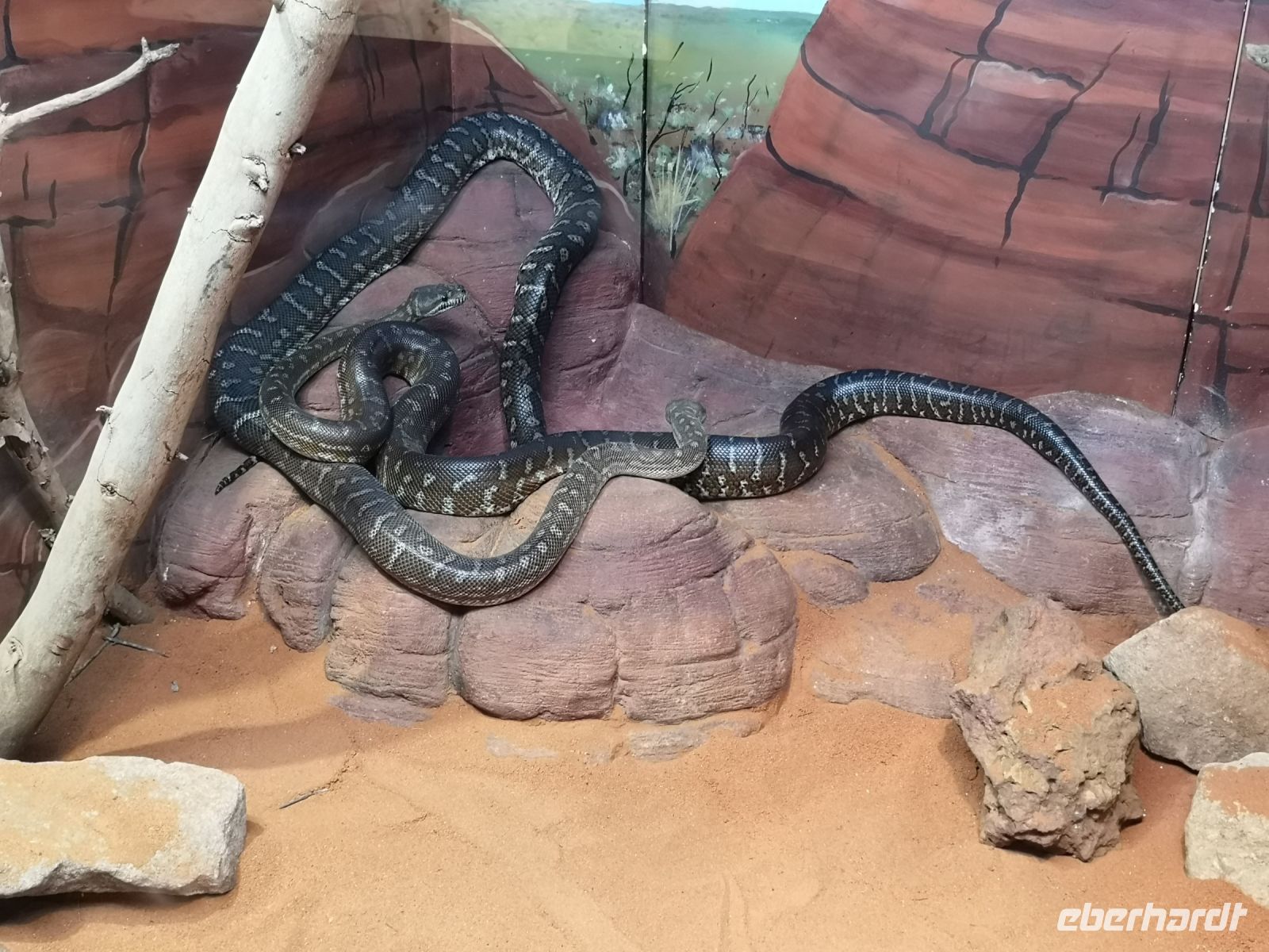Zum Abschluss dieses ereignisreichen Tages führt uns Eva noch in den Dessert Park mit einem spannenden Nachttierhaus. Hier haben wir die Möglichkeit die Tierwelt der australischen Wüste kennenzulernen, insbesondere die nachtaktiven Tiere die wir sonst nicht zu Gesicht bekommen. Eindrucksvoll ist der Dornteufel, den man wohl wegen seines stachligen Aussehens nicht berühren möchte und wegen ihrer perfekten Tarnfarbe bleiben die Echsen fast unbemerkt und somit ebenfalls verschon von der menschlichen Neugierde. Bei den großen Spinnen und Schlangen bleiben wir sowieso gerne auf Distanz. Wir sind recht froh, dass zwischen uns und den Tieren eine sichere Barriere vorhanden ist.
