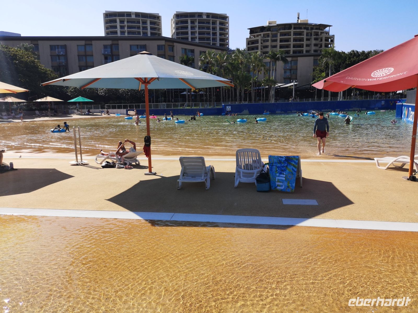 Für den Rest des Tages hatten wir kein Programm, jeder unternahm auf eigene Faust oder in Gruppen Spaziergänge durch die Stadt. Nach dem langen Aufenthalt im Outback und dann im Arnheimland, haben einige von uns Bedarf nach Einkaufen und Geschäfte schauen. Andere nützen die Zeit gleich um in der Lagune vor dem Hotel Schwimmen zu gehen.