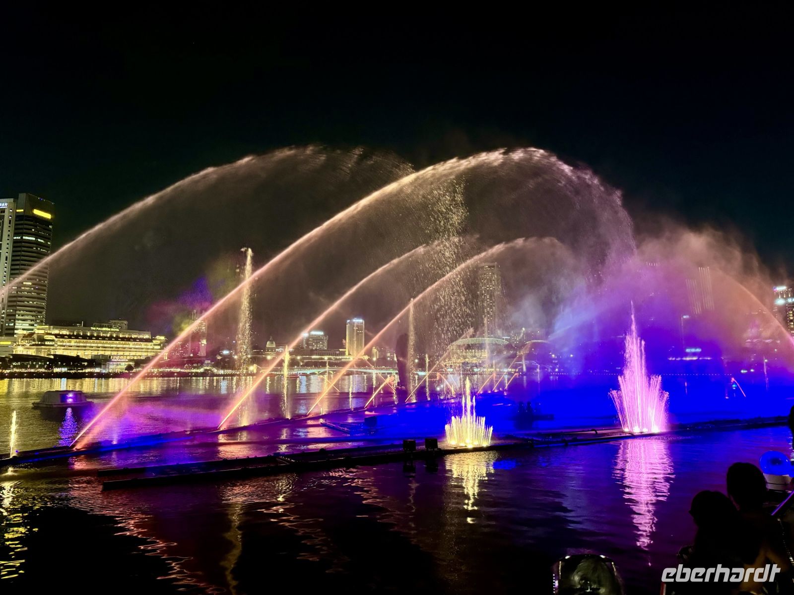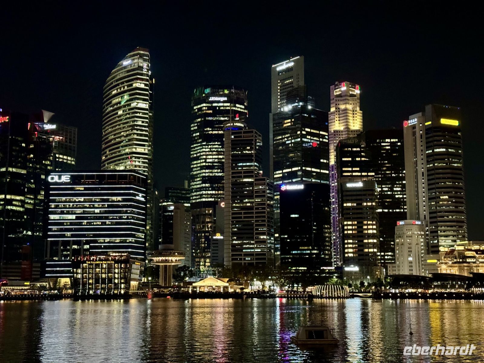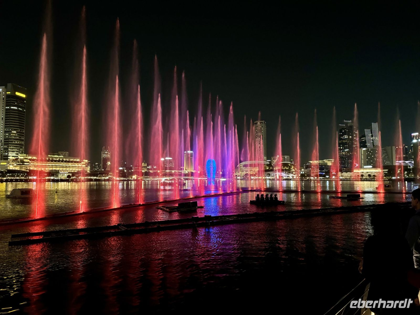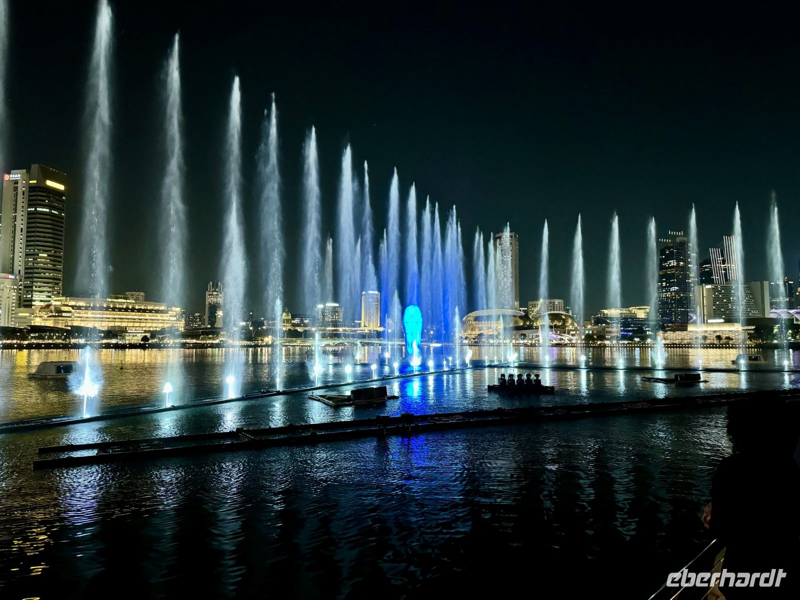 Als wir überpünktlich in Singapur landen, ist es dort aufgrund des Zeitunterschieds bereits Nachmittag. Die durchautomatisierte Einreise klappt dank Online-Voranmeldung durch Eberhardt problemlos und unsere Koffer haben wir ebenfalls schnell abgeholt. Draußen werden wir bereits von unserem sehr enthusiastischen Stadtführer Alvin erwartet, zum Bus gebracht und zum Hotel transferiert. Unterwegs gibt er uns bereits einige Informationen zur Orientierung und zur historischen Landgewinnung, denn gut 20 Prozent der Fläche wurden seit Ende des 19. Jahrhunderts dem Meer abgetrotzt. In unserem schicken Carlton Hotel gewährt uns Alvin eine Erholungspause, bevor wir mit dem öffentlichen Bus nochmal gemeinsam in Richtung Marina Bay Sands Hotel aufbrechen. Hier verabschiedet er sich für heute von uns und wünscht uns viel Spaß bei den beiden Shows, die wir uns noch anschauen wollen: der Lichtershow im Supertree Grove in den Gardens by the Bay und etwas später dann der Wasser-, Lichter, Laser-Show „Spectra“ vor dem Marina Bay Sands. Zwischendurch bietet sich die Chance auf ein schnelles Abendessen im Food Court des riesigen Nobel-Einkaufszentrums zu Füßen des Hotelkomplexes. Beide Shows sind auf unterschiedliche Weise spektakulär und bilden für meine Gäste einen stimmungsvollen Empfang in Singapur. Mit dem Bus fahren wir anschließend wieder zum Hotel zurück und versuchen dann zu schlafen, was aufgrund des Zeitunterschieds, der (positiven) Aufregung und der vielen neuen Eindrücke gar nicht so einfach ist. Es war ein schöner erster Tag in Singapur und wir sind gespannt auf die morgige Stadtrundfahrt.