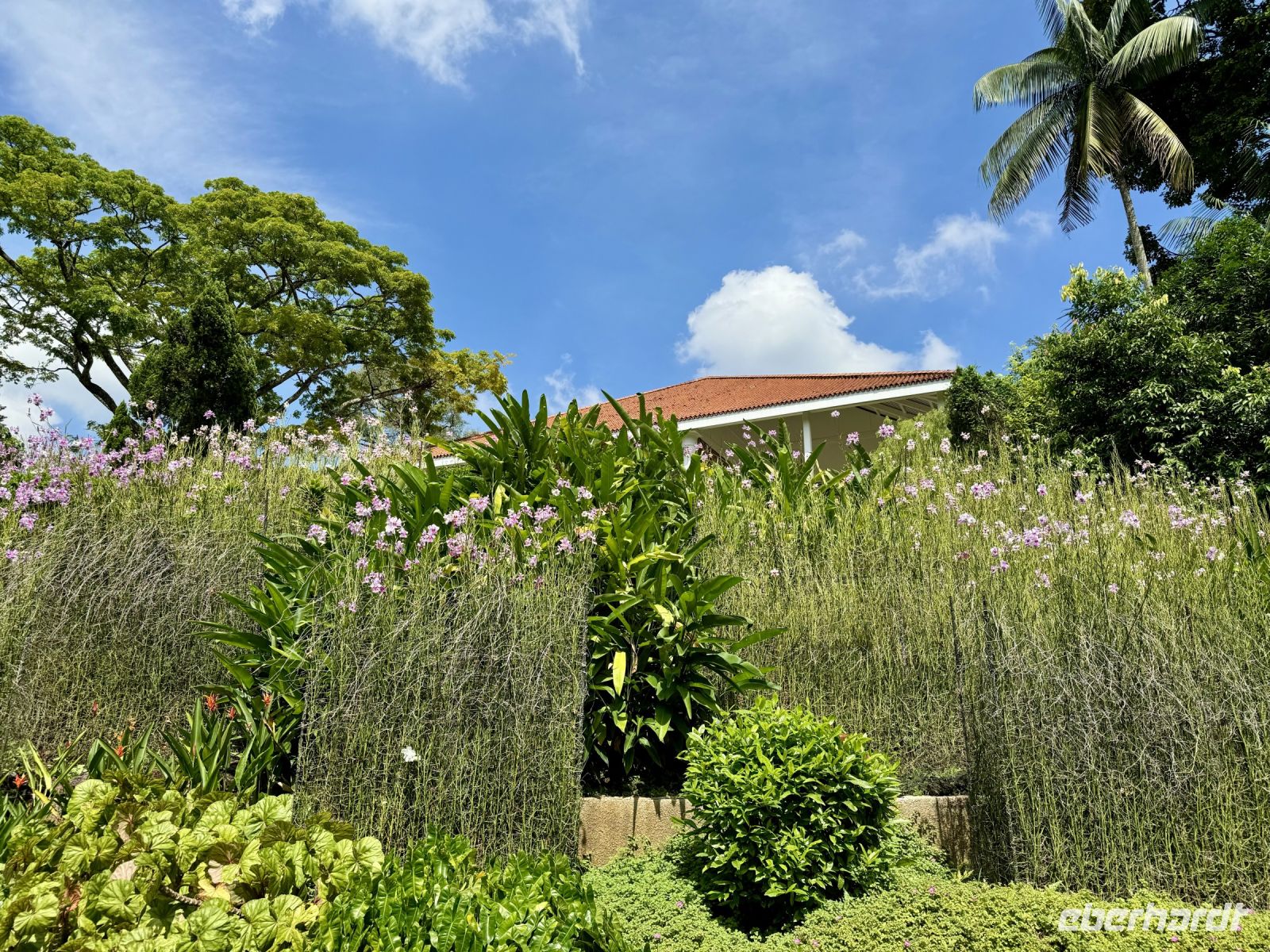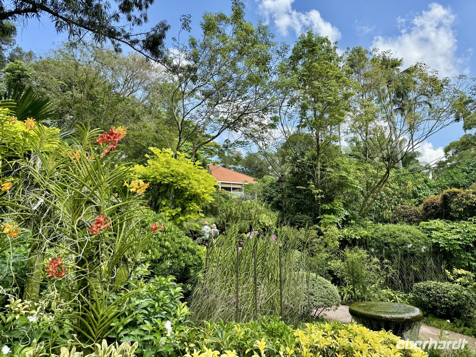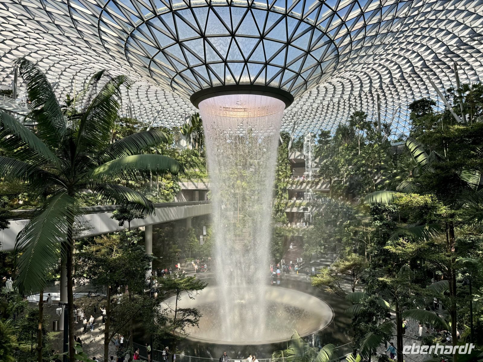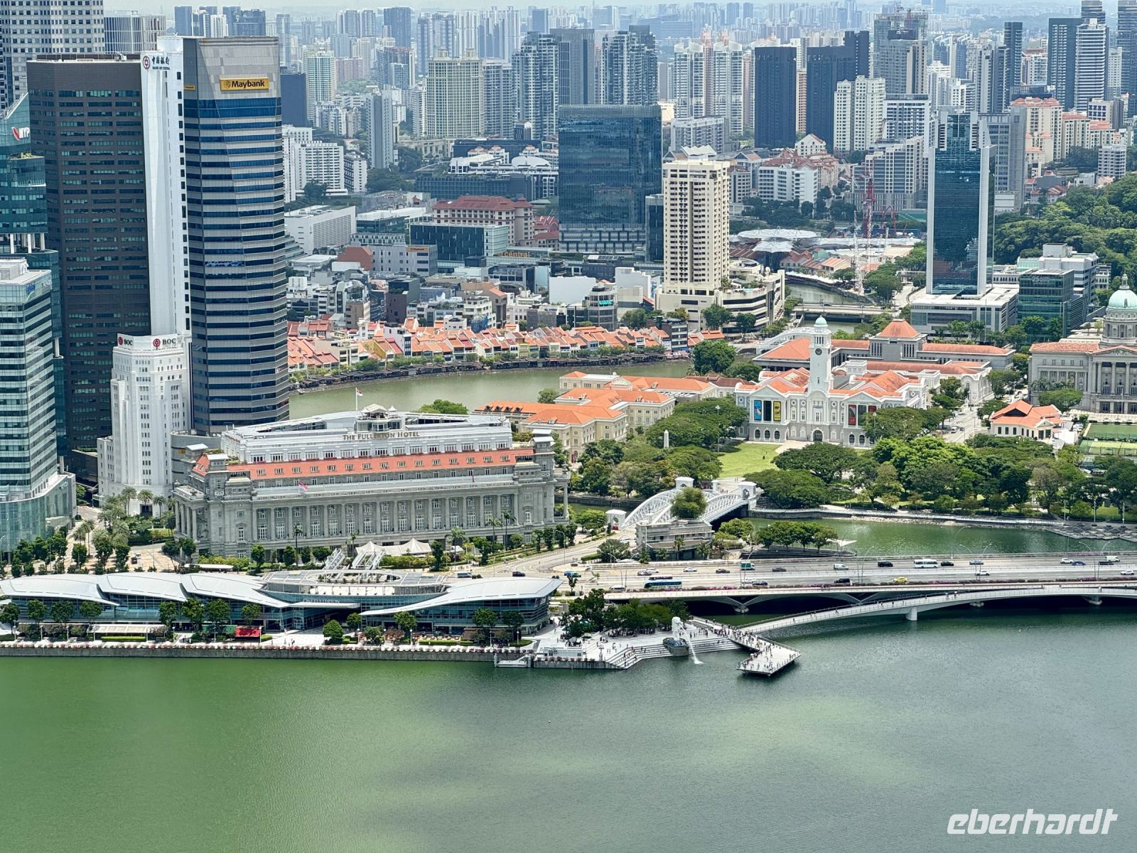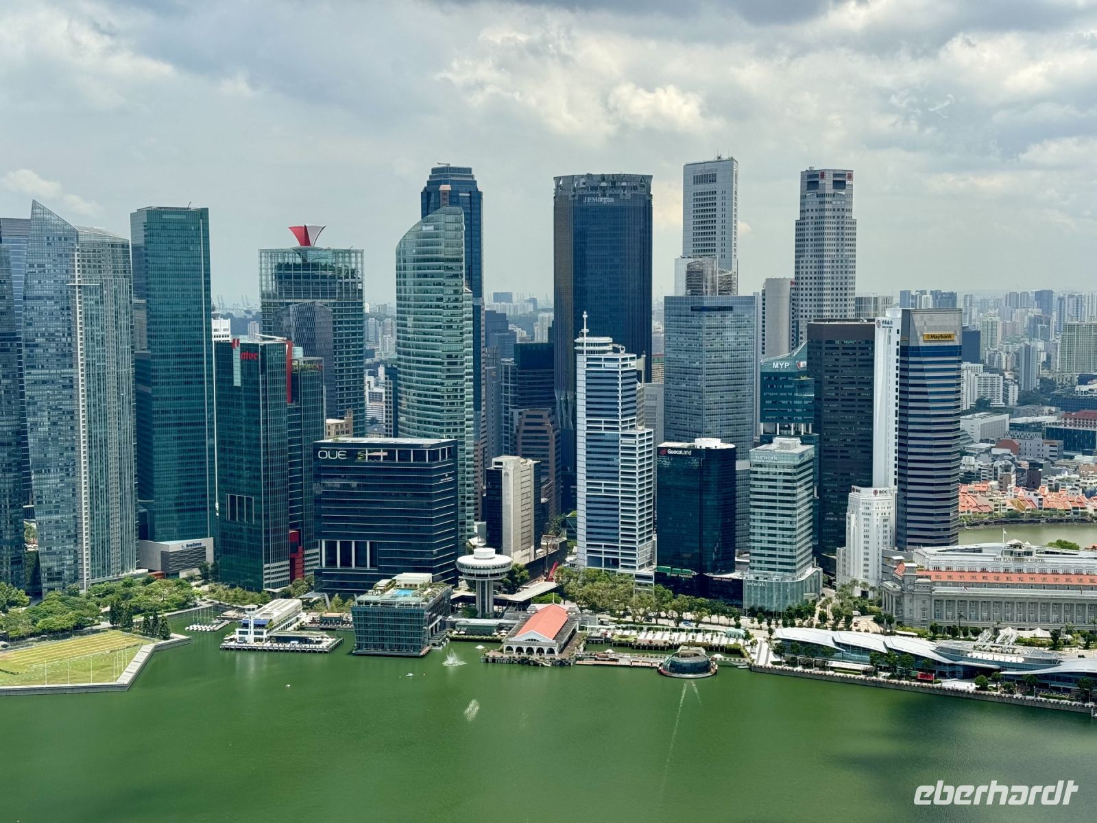 Als wir überpünktlich in Singapur landen, ist es dort aufgrund des Zeitunterschieds bereits Nachmittag. Die durchautomatisierte Einreise klappt dank Online-Voranmeldung durch Eberhardt problemlos und unsere Koffer haben wir ebenfalls schnell abgeholt. Draußen werden wir bereits von unserem sehr enthusiastischen Stadtführer Alvin erwartet, zum Bus gebracht und zum Hotel transferiert. Unterwegs gibt er uns bereits einige Informationen zur Orientierung und zur historischen Landgewinnung, denn gut 20 Prozent der Fläche wurden seit Ende des 19. Jahrhunderts dem Meer abgetrotzt. In unserem schicken Carlton Hotel gewährt uns Alvin eine Erholungspause, bevor wir mit dem öffentlichen Bus nochmal gemeinsam in Richtung Marina Bay Sands Hotel aufbrechen. Hier verabschiedet er sich für heute von uns und wünscht uns viel Spaß bei den beiden Shows, die wir uns noch anschauen wollen: der Lichtershow im Supertree Grove in den Gardens by the Bay und etwas später dann der Wasser-, Lichter, Laser-Show „Spectra“ vor dem Marina Bay Sands. Zwischendurch bietet sich die Chance auf ein schnelles Abendessen im Food Court des riesigen Nobel-Einkaufszentrums zu Füßen des Hotelkomplexes. Beide Shows sind auf unterschiedliche Weise spektakulär und bilden für meine Gäste einen stimmungsvollen Empfang in Singapur. Mit dem Bus fahren wir anschließend wieder zum Hotel zurück und versuchen dann zu schlafen, was aufgrund des Zeitunterschieds, der (positiven) Aufregung und der vielen neuen Eindrücke gar nicht so einfach ist. Es war ein schöner erster Tag in Singapur und wir sind gespannt auf die morgige Stadtrundfahrt.