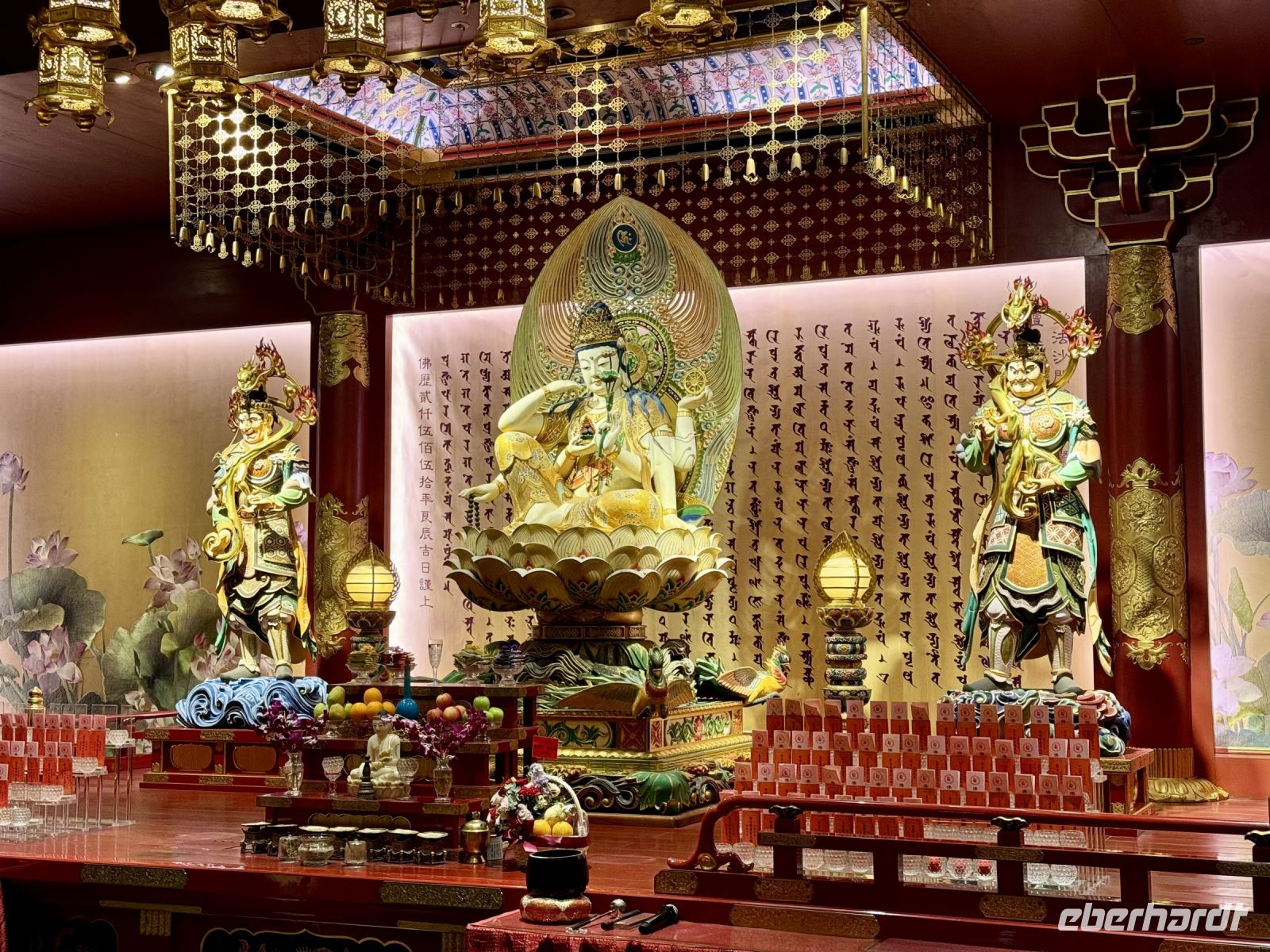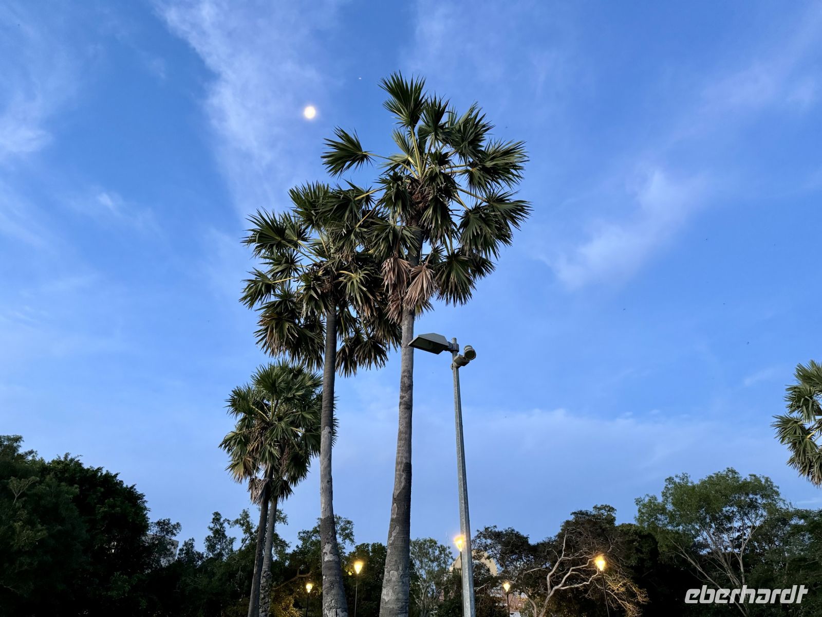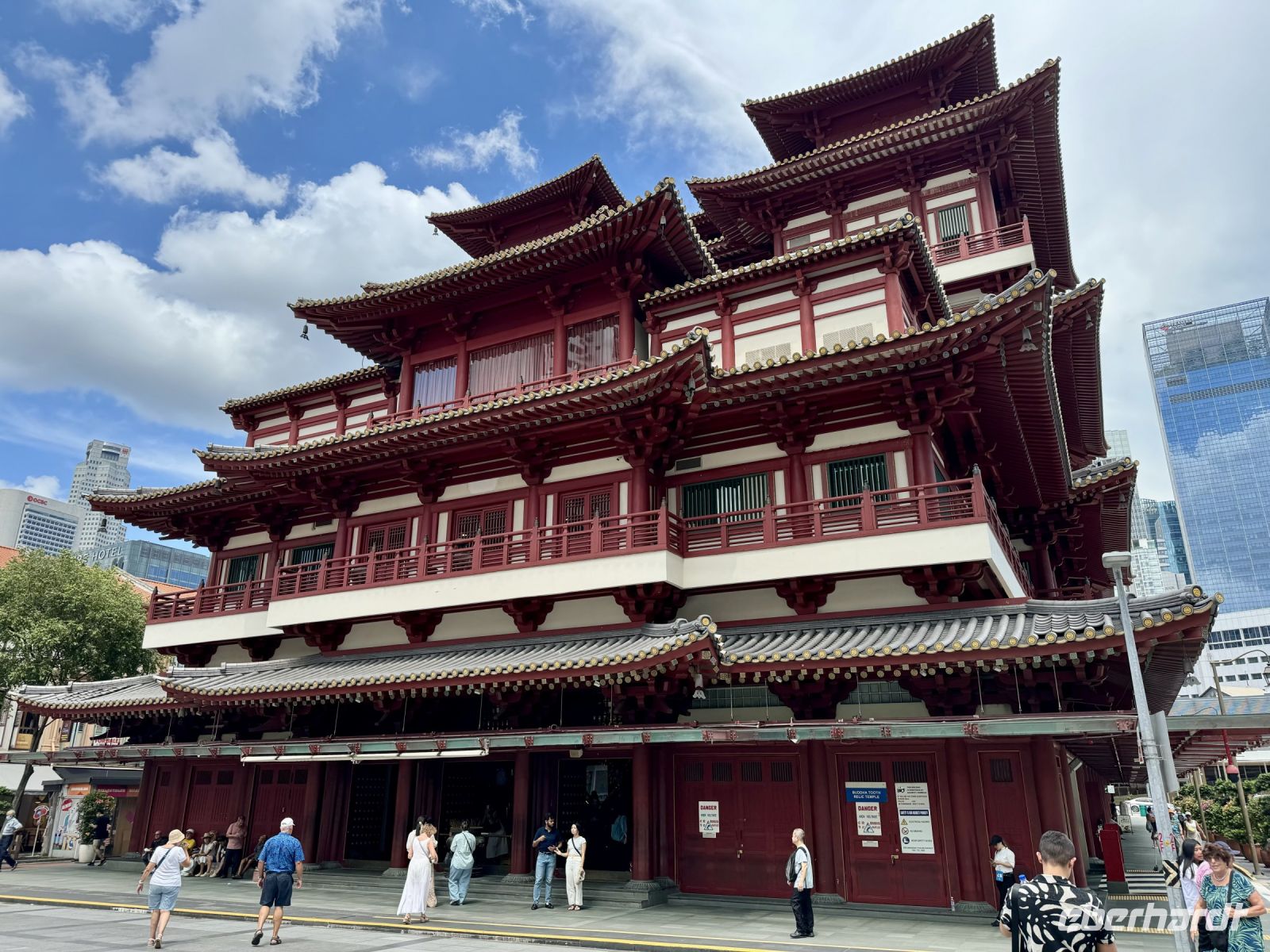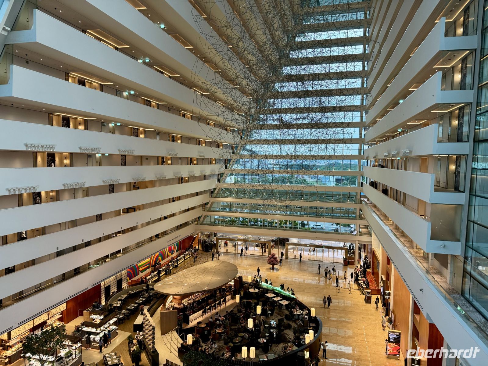 Als wir überpünktlich in Singapur landen, ist es dort aufgrund des Zeitunterschieds bereits Nachmittag. Die durchautomatisierte Einreise klappt dank Online-Voranmeldung durch Eberhardt problemlos und unsere Koffer haben wir ebenfalls schnell abgeholt. Draußen werden wir bereits von unserem sehr enthusiastischen Stadtführer Alvin erwartet, zum Bus gebracht und zum Hotel transferiert. Unterwegs gibt er uns bereits einige Informationen zur Orientierung und zur historischen Landgewinnung, denn gut 20 Prozent der Fläche wurden seit Ende des 19. Jahrhunderts dem Meer abgetrotzt. In unserem schicken Carlton Hotel gewährt uns Alvin eine Erholungspause, bevor wir mit dem öffentlichen Bus nochmal gemeinsam in Richtung Marina Bay Sands Hotel aufbrechen. Hier verabschiedet er sich für heute von uns und wünscht uns viel Spaß bei den beiden Shows, die wir uns noch anschauen wollen: der Lichtershow im Supertree Grove in den Gardens by the Bay und etwas später dann der Wasser-, Lichter, Laser-Show „Spectra“ vor dem Marina Bay Sands. Zwischendurch bietet sich die Chance auf ein schnelles Abendessen im Food Court des riesigen Nobel-Einkaufszentrums zu Füßen des Hotelkomplexes. Beide Shows sind auf unterschiedliche Weise spektakulär und bilden für meine Gäste einen stimmungsvollen Empfang in Singapur. Mit dem Bus fahren wir anschließend wieder zum Hotel zurück und versuchen dann zu schlafen, was aufgrund des Zeitunterschieds, der (positiven) Aufregung und der vielen neuen Eindrücke gar nicht so einfach ist. Es war ein schöner erster Tag in Singapur und wir sind gespannt auf die morgige Stadtrundfahrt.