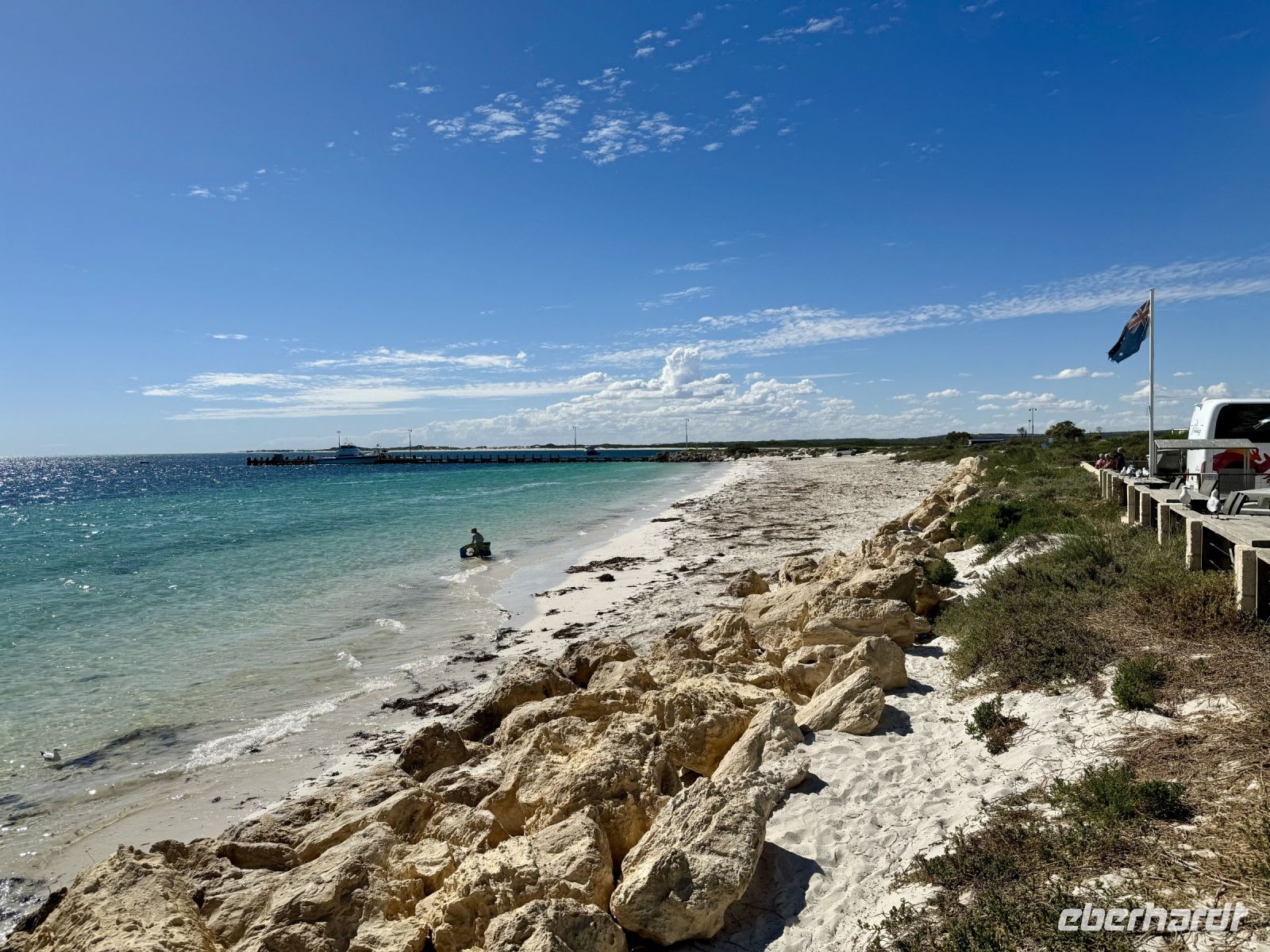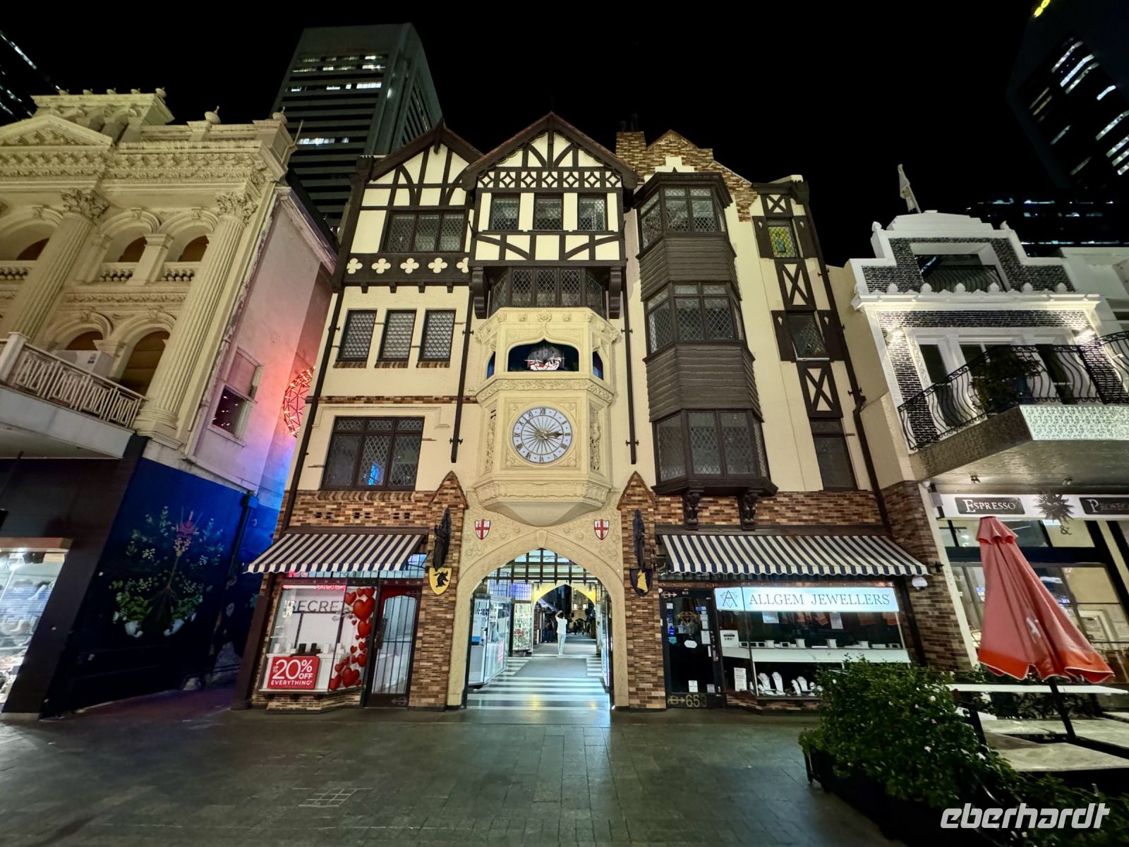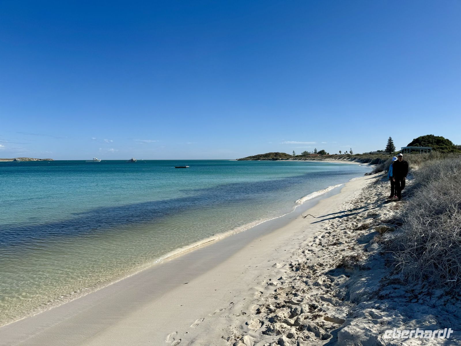 Die erste (kurze) Nacht in Australien liegt hinter uns! Natürlich müssen wir uns alle immer noch an den Zeitunterschied und ab heute auch noch an Vegemite zum Frühstück gewöhnen. Unser Stadtführer Patrick versucht, uns die Eingewöhnung an Australien mit einer umfassenden und informativen Stadtrundfahrt durch Perth zu erleichtern. Wir verlassen die Innenstadt zunächst, um von South Perth aus einen Blick auf die Skyline des CBD am gegenüberliegenden Ufer des Swan River zu werfen, und fahren dann in Richtung der großen Sportstadien weiter. Am Glockenturm bei der Anlegestelle machen wir einen weiteren Fotostopp, bevor uns Patrick auf einen kleinen Spaziergang durch den Botanischen Garten im riesigen King’s Park einlädt, auf dem er uns die wichtigsten Besonderheiten der Flora und Fauna Westaustraliens erklärt. Zuvor konnten wir am ANZAC-Denkmal im Park tolle Fotos vom Stadtzentrum machen. Entlang der Küste hat Perth auch viele schöne Strände zu bieten, wovon wir uns bei einem Abstecher zum Cottesloe Beach überzeugen können. In der alten Hafenstadt Fremantle erwartet uns dann zur Stärkung ein Mittagessen in einer Kleinbrauerei. Bis hierhin hat uns Patrick begleitet, nun verabschiedet er sich von uns und wir haben noch etwas Freizeit in Fremantle, die wir für einen Spaziergang entlang der Esplanade und durch den historischen Stadtkern des alten Hafens von Perth (samt des ersten Gefängnisses) nutzen. Mit der Fähre wollen wir später zum Sonnenuntergang auf dem Swan River zurück nach Perth fahren und warten geduldig, bis die schier endlose Zahl von Rottnest-Island-Tagesausflüglern das Schiff verlassen hat — nur um dann festzustellen, dass es (noch) gar nicht unsere Fähre ist! Die hat nämlich Verspätung, kommt aber schließlich doch und bringt uns nach Perth. Auf dem kurzen Weg zwischen Fähranleger und Hotel kann ich meinen Gästen noch den London Court zeigen, eine Ladenpassage im Tudor-Stil. So schön und entspannt das Leben in Perth auch sein mag, ein bisschen irritiert uns schon, dass die Bürgersteige um 18 Uhr hochgeklappt werden. Die Fußgängerzone wirkt kurz vor sieben wie ausgestorben. Etwas zu essen finden wir allerdings doch und auch ein bisschen Verpflegung für den morgigen Tagesausflug zu den Pinnacles bekommen wir im Supermarkt.
