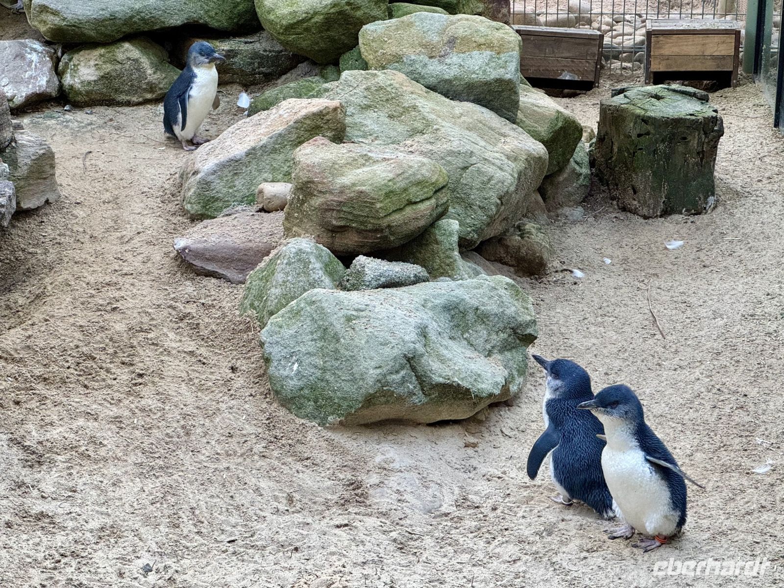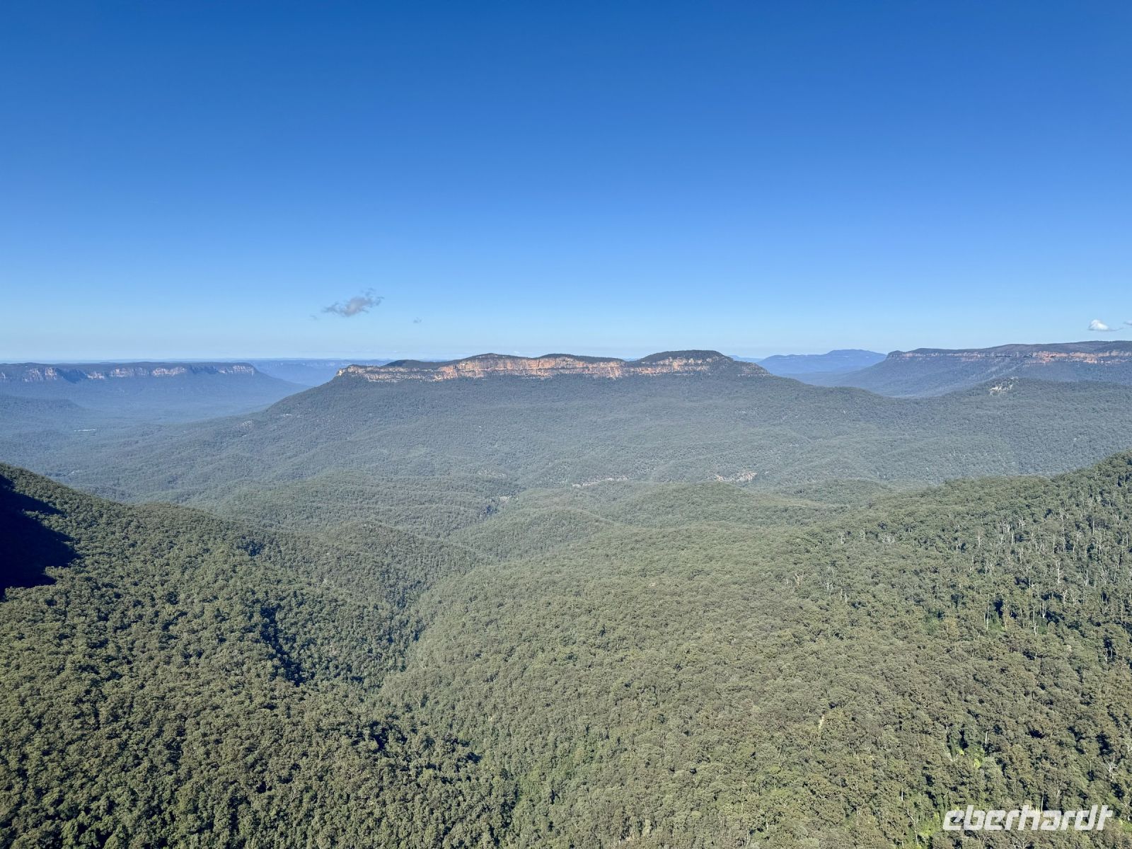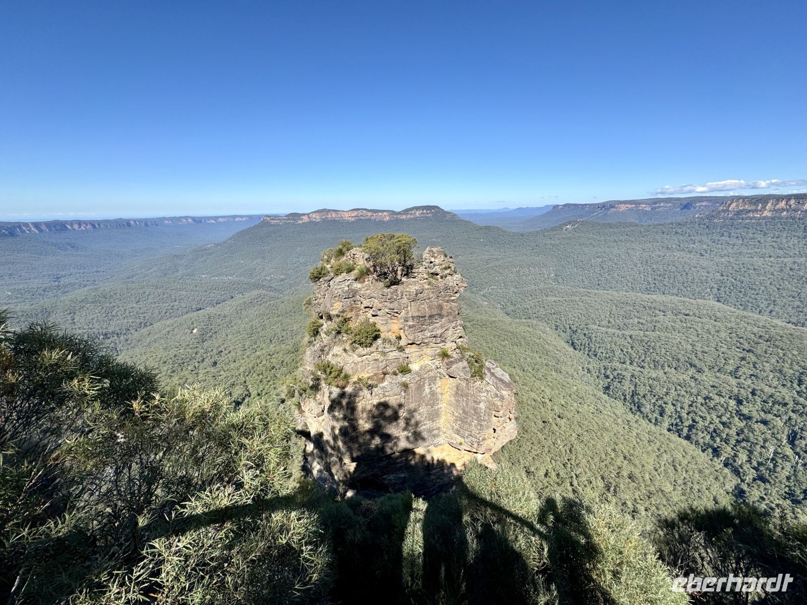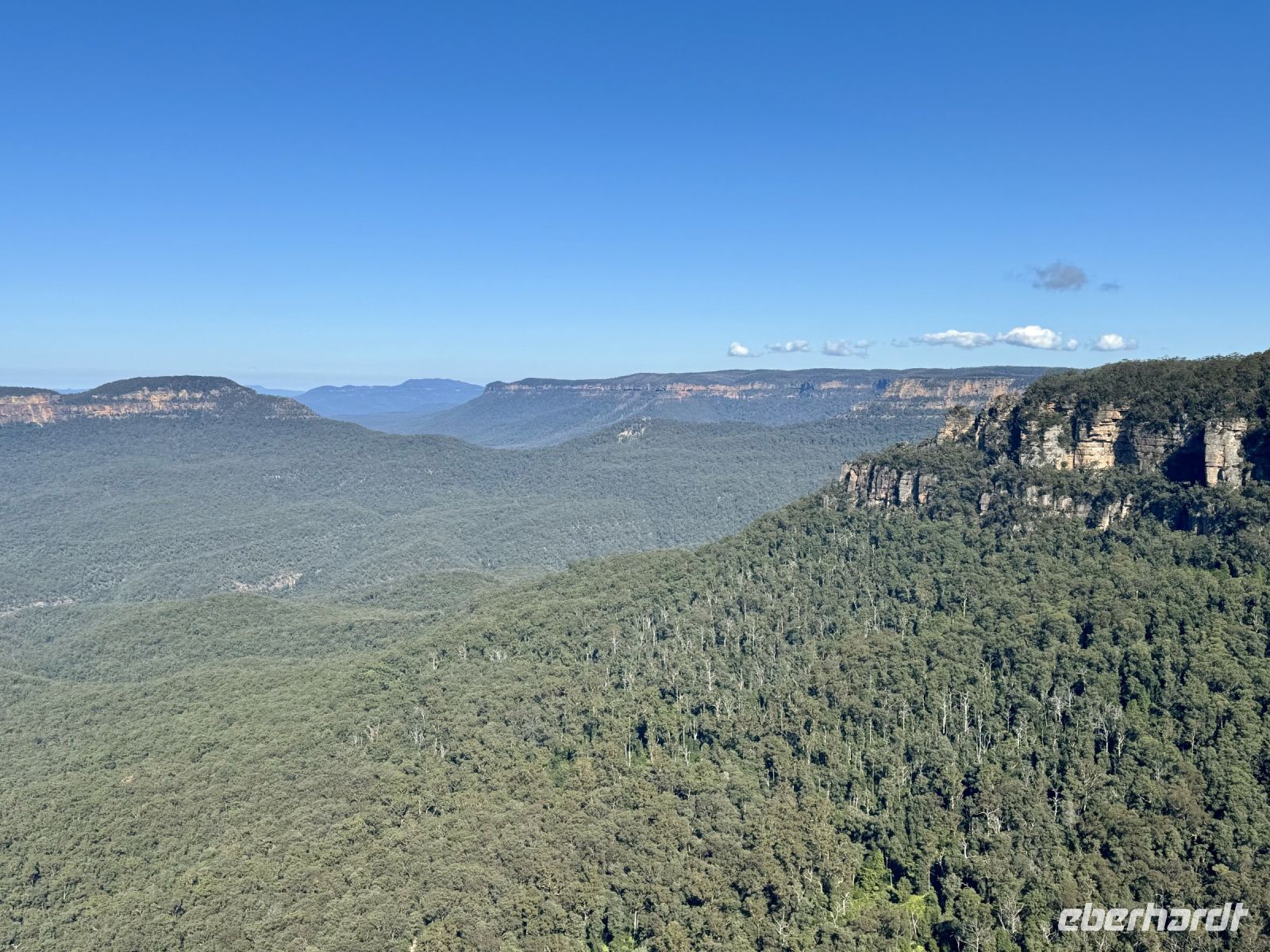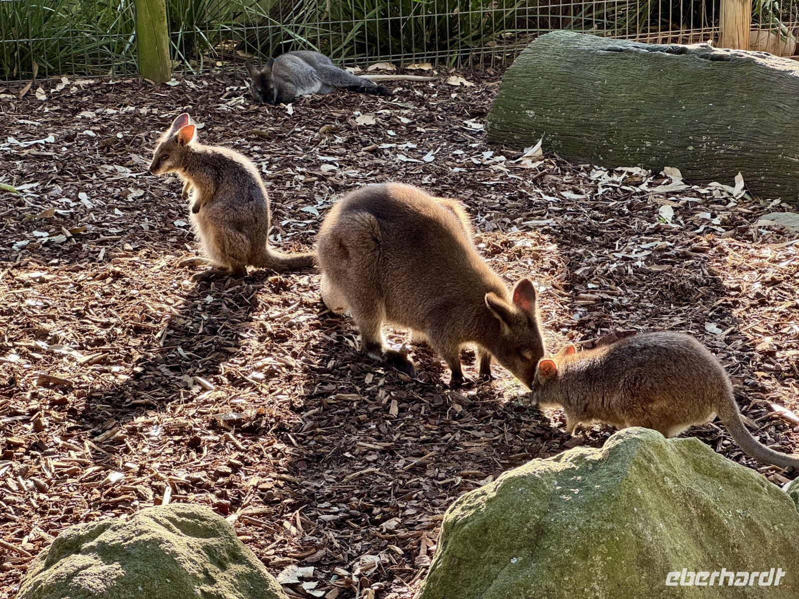 Mit unserem Tagesausflug in die Blue Mountains entfliehen wir ein letztes Mal dem Trubel der Großstadt in die Natur, in einen der vielen, vielen australischen Nationalparks. Schon die Fahrt hinaus aus der Innenstadt über die Harbour Bridge ist ein Ereignis! Bald danach kommen wir auch an den olympischen Sportstätten vorbei, die tatsächlich ein gutes Stück außerhalb des Stadtzentrums liegen. Gestern war ja ANZAC Day in Australien, weshalb uns Uli mit einer großen Packung ANZAC Biscuits die Fahrt in die „Blauen Berge“ versüßt. Nach einem kurzen Stopp in Glenbrook erreichen wir das Örtchen Leura, die „Perle der Blue Mountains“, wie es Uli so schön poetisch ausdrückt. Hier wartet der erste kurze Spaziergang auf uns, der uns zum Elysian Rock Lookout führt. Vor uns öffnet sich ein riesiges Tal, bedeckt vom blauen Dunst der Eukalyptusbäume, in dessen Mitte sich mehrere Kilometer von uns entfernt der Mount Solitary erhebt. Eine Wahnsinnsaussicht. Auch das Wetter spielt wieder mit. Die berühmten Felsen der Three Sisters sehen wir von hier aus bereits von hinten, kommen ihnen aber dann beim zweiten Spaziergang, nun schon in Katoomba, ganz nahe. Das reichhaltige Mittagessen im Restaurant „The Lookout“ stellt gleichzeitig unser gemeinsames Abschiedsessen dar, weshalb ich im Namen von Eberhardt TRAVEL drei Flaschen Sekt für meine Gäste spendiere, um auf die gelungene Reise anzustoßen. Was ich noch nie in meinem Reiseleiterleben erlebt habe, ist ein „Indian Summer” in Australien. In Katoomba und Leura hat der Herbst in Australien schon Einzug gehalten und die angepflanzten (nicht-einheimischen) Bäume erstrahlen in den schönsten Gold- und Rottönen – für mich ein kleiner Vorgeschmack auf meine jährliche Kanadareise im Oktober zum echten „Indian Summer“. Nach dem Mittagsschmaus kehren wir für einen Bummel entlang der Hauptstraße mit ihren vielen kleinen Geschäften nach Leura zurück, bevor wir uns auf den Weg zurück nach Sydney machen. Allerdings steht noch ein Besuch im Featherdale Wildlife Park an. Er stellt für uns die letzte Möglichkeit auf dieser Reise dar, die australische Tierwelt zu bestaunen. Zwar hatten wir schon Begegnungen mit Koalas und Kängurus, doch Wombats, Quokkas und Dingos haben wir noch gar nicht bzw. nicht aus dieser Nähe sehen können. Die meiste Zeit verbringen wir jedoch bei den putzigen Koalas, die mal nicht alle schlafen, sondern sich tatsächlich bewegen und/oder gerade fressen. Wir sehen sogar ein Jungtier mit seiner Mutter und ich nutze die Gelegenheit für mein erstes eigenes Koala-Foto mit der süßen kleinen Calliope. Ein schönes Erlebnis, das uns strahlend nach Hause trägt. Am Hotel in Sydney endet Ulis Einsatz auf dieser Reise. Wir danken ihr sehr und ich freue mich schon auf die nächste Begegnung mit ihr. Vorfreude ist ein gutes Stichwort: Mit ca. der Hälfte der Gruppe besuche ich am Abend tatsächlich ein Konzert im weltberühmten Opernhaus – Sibelius, klassische Musik! Wie schön, dass sich diese Möglichkeit für uns geboten hat, vielleicht einmal im Leben ein Konzert in diesem schönen Saal, an diesem speziellen Ort zu erleben. Ein richtiges Highlight zum Abschluss dieser großartigen Reise!