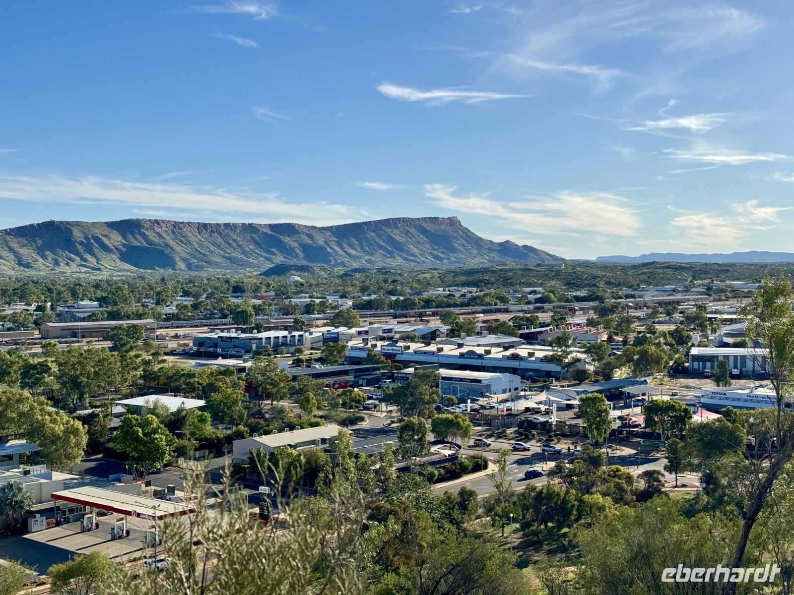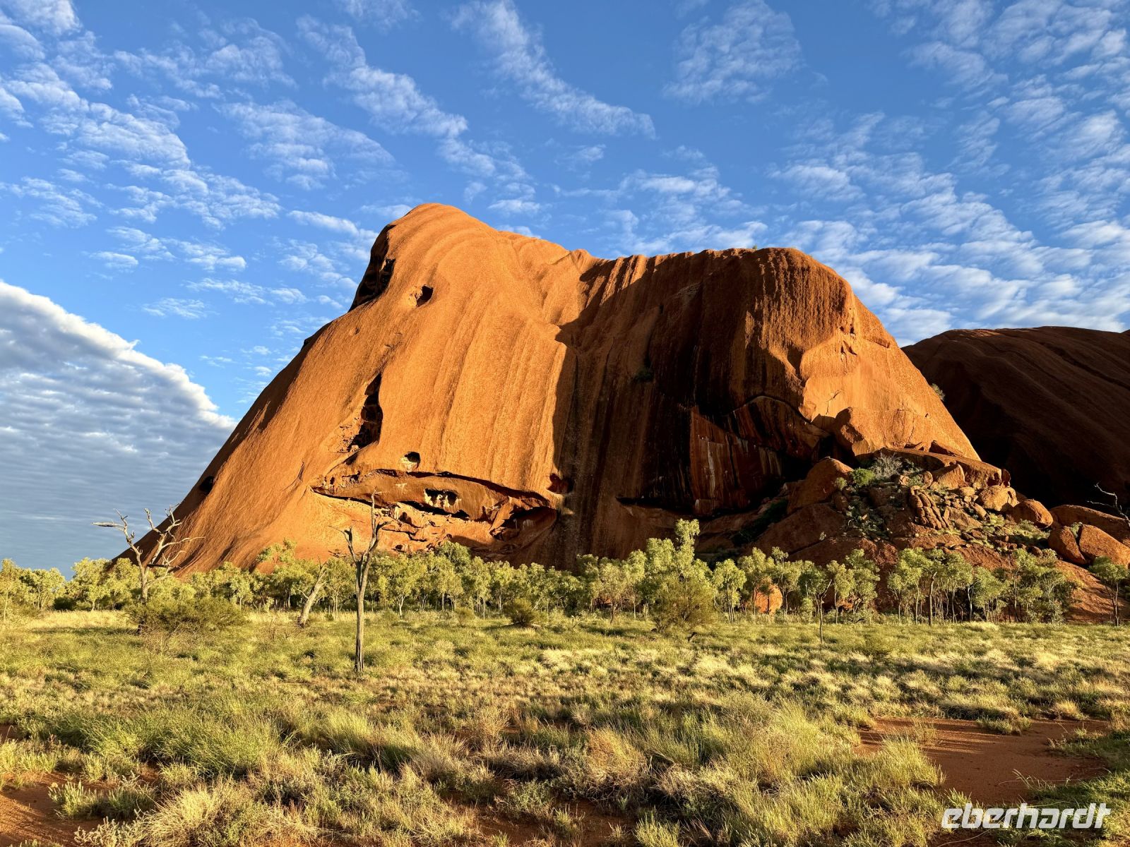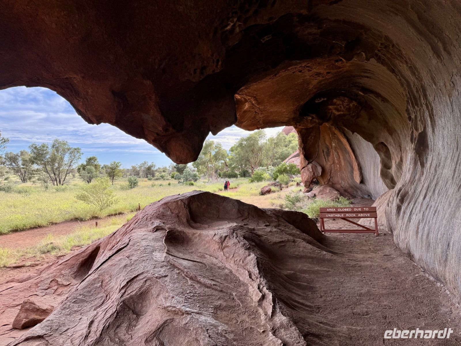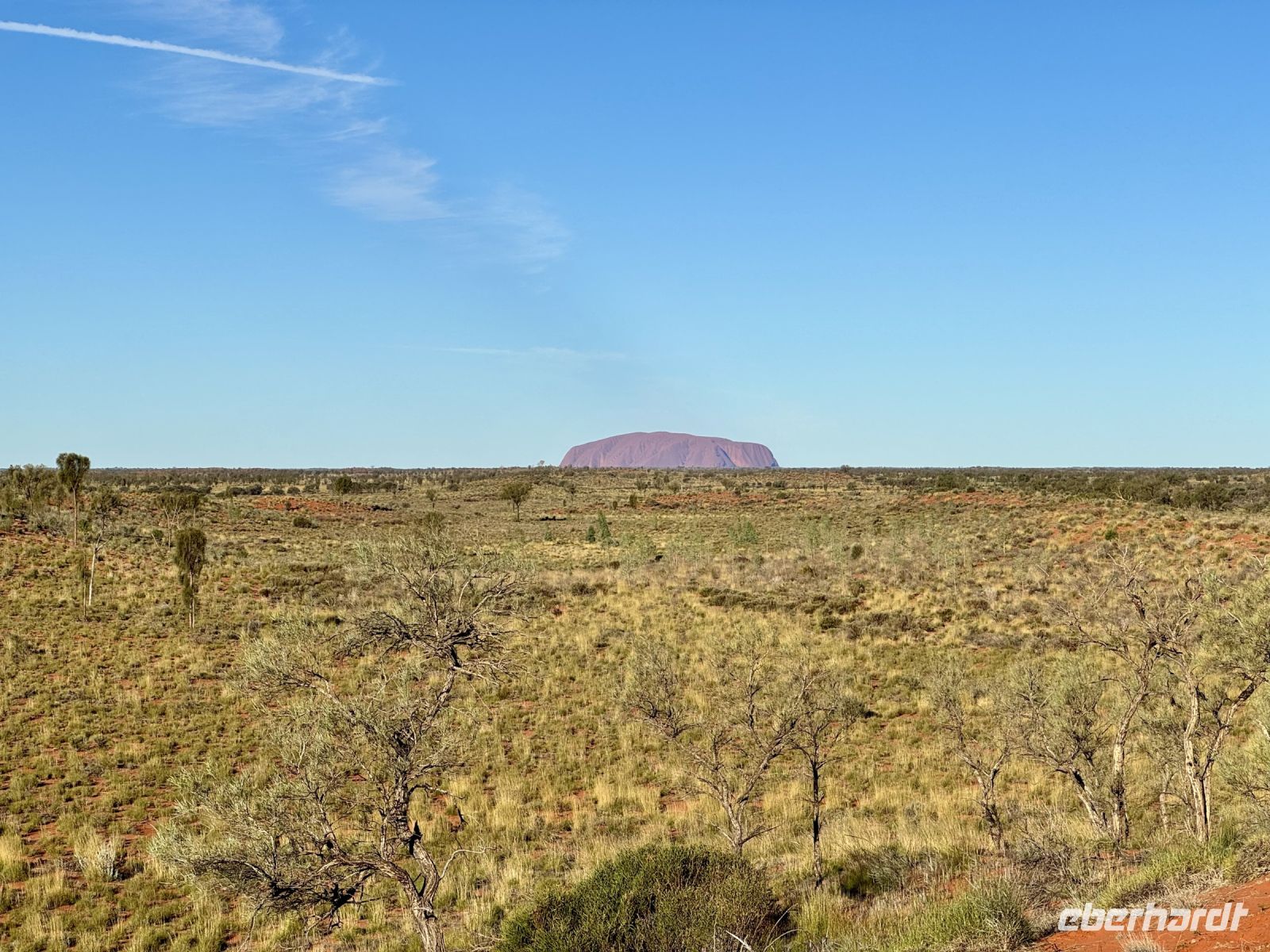 Heute ist wohl der einzige Tag auf der Reise, an dem wir freiwillig und mit großer Vorfreude und Begeisterung ganz zeitig aufstehen, denn wir wollen uns den Sonnenaufgang am Uluru anschauen! Schon allein für die Farbenspiele am Himmel hat sich das frühe Aufstehen gelohnt. Dann treffen die Strahlen der Morgensonne auf den Uluru und lassen ihn rot-orange aufleuchten. Herrlich! Warum der Uluru für die Aborigines ein heiliger Ort ist, können wir nach diesem Morgen gut verstehen. Eve entführt uns beim nachfolgenden Spaziergang zum Wasserloch auch in die Traumzeit und lässt die alten Sagen und Legenden, z. B. die Geschichte der Kunja-Schlange, auferstehen. Doch der Uluru war und ist nicht nur ein Heiligtum, sondern auch ein ritueller Ort, an dem Menschen wirklich lebten und ihren Glauben praktizierten. Die wellenförmige „Höhle“ der Frauen dürfen wir betreten; andere Stätten sind nur den Einheimischen vorbehalten. Und den Aufstieg können wir zwar noch erkennen, aber er ist seit einigen Jahren endgültig verboten, nachdem höfliches Bitten nicht geholfen hat. Inzwischen macht sich aber doch ein leichtes Hungergefühl im Bauch bemerkbar, weshalb wir zum Frühstück in unser Hotel zurückkehren. Dann starten wir auf die lange Fahrt nach Alice Springs, erst auf dem Lasseter Highway nach Westen, dann auf dem Stuart Highway nach Norden. Am Mount Conner Lookout machen wir unterwegs den ersten kleinen Fotostopp, gefolgt von einer Mittagspause am Erldunda Roadhouse, wo es auch ein paar Emus zu fotografieren gibt. In Alice Springs angekommen, besuchen wir gleich den Geburtsort der größten Stadt im Outback, die historische Telegrafenstation mit ihrer ambivalenten Geschichte. Heute ein sehr friedliches Fleckchen Erde, das uns Einblicke in das Leben der weißen Siedler/Pioniere von vor rund 150 Jahren gewährt. Vom Anzac Hill haben wir dann eine schöne Aussicht auf Alice Springs. Heute ist der Luxuszug „The Ghan“ im Ort; wir können die lange silberne Linie am Bahnhof von hier oben deutlich sehen. Schließlich beziehen wir für die nächsten beiden Nächte unsere Zimmer im Hotel und lassen den zweiten Abend im „Roten Zentrum“ ganz gemütlich ausklingen – morgen dürfen wir mal wieder etwas länger schlafen!