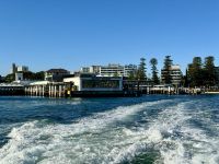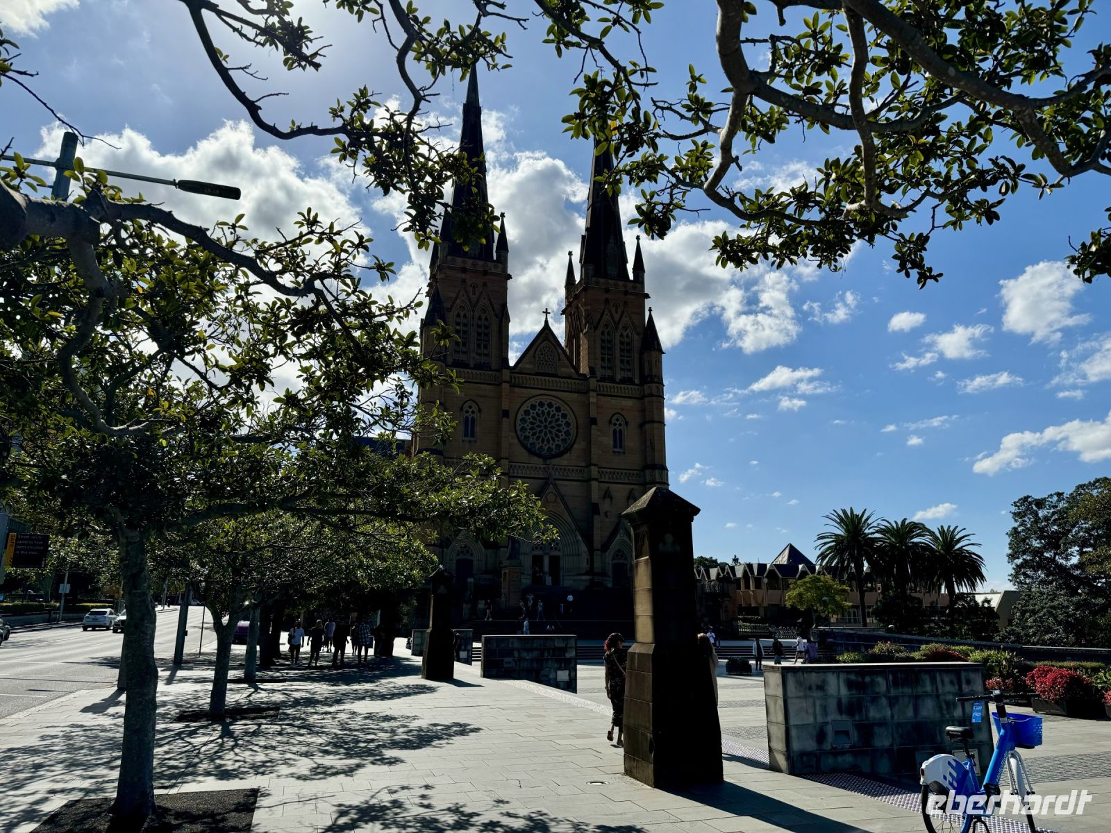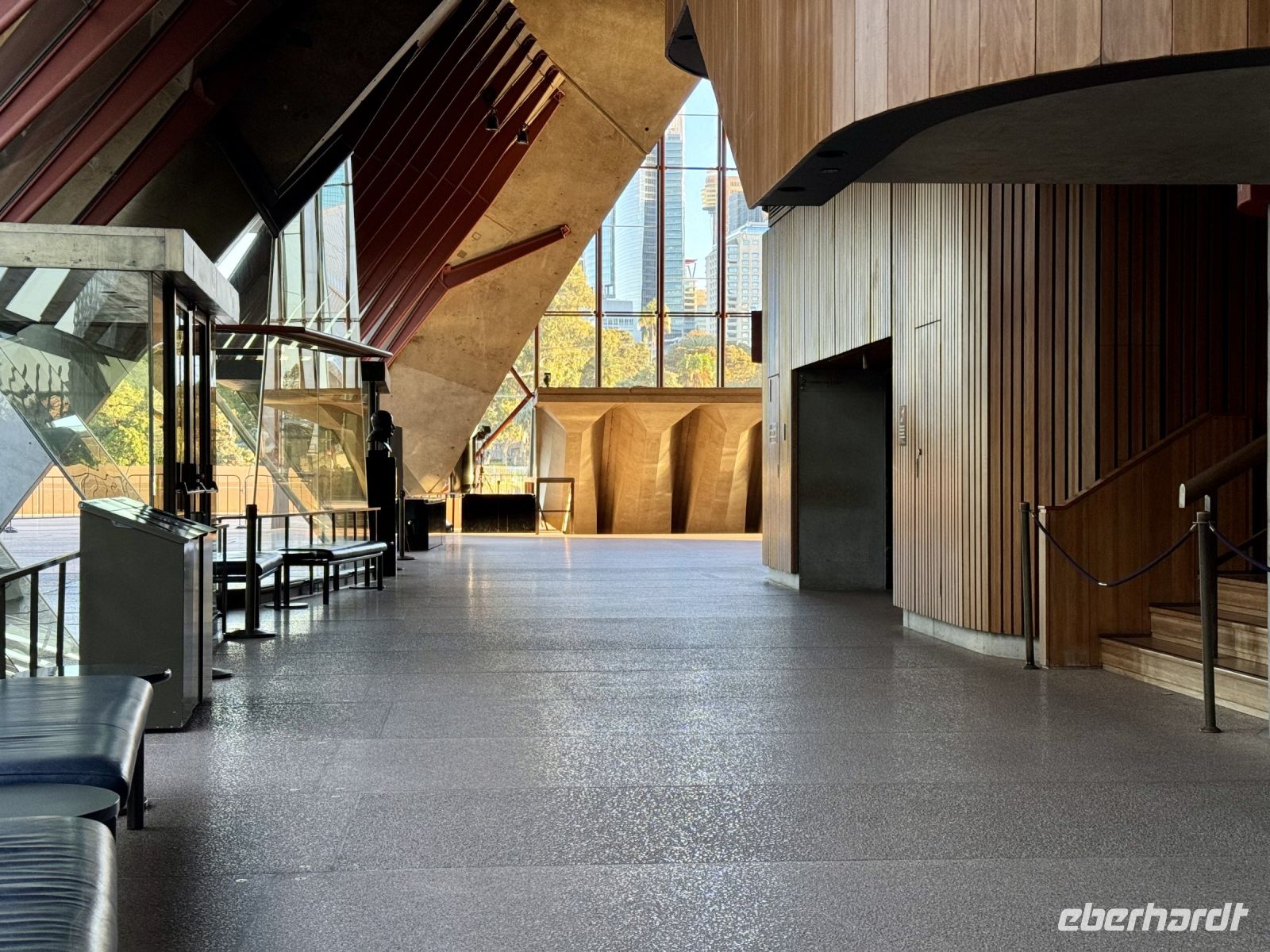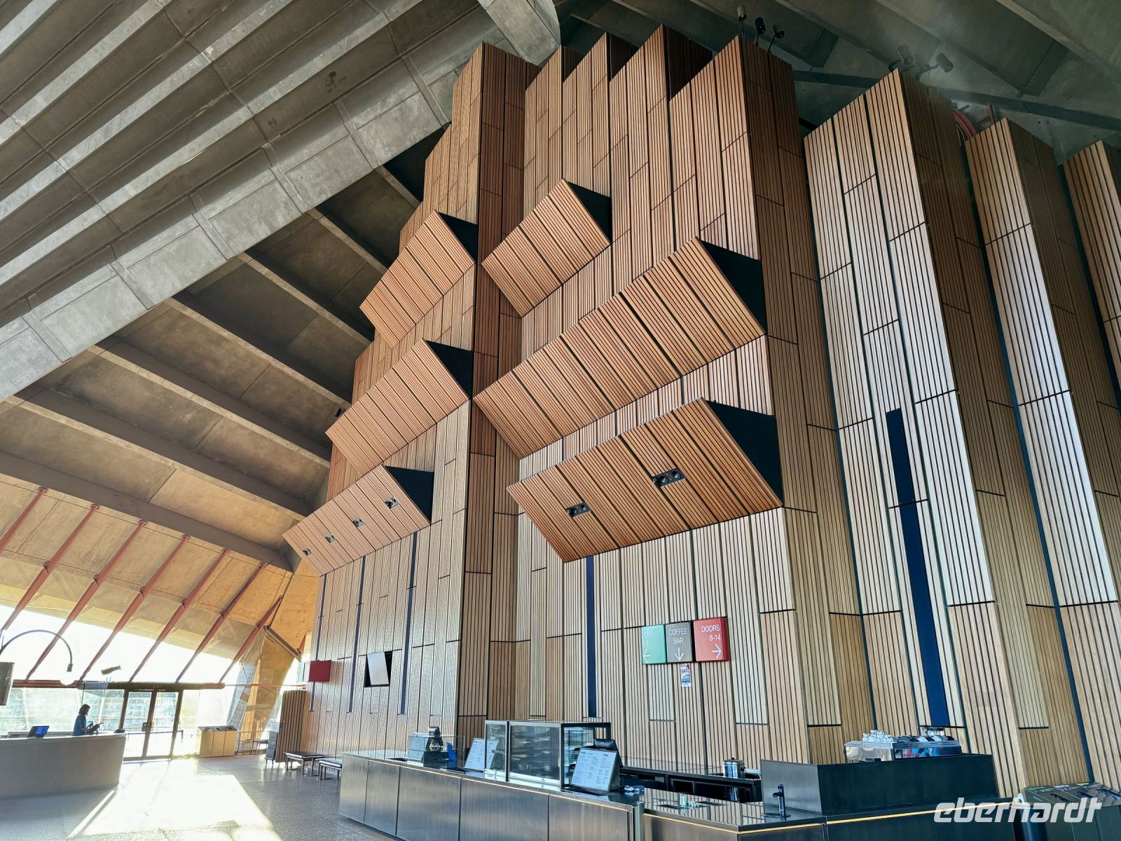 Während ich unseren einzelreisenden Unglücksraben vormittags im Krankenhaus besuche, unternimmt die Gruppe in der sicheren Obhut und Fürsorge von Uli eine halbtägige Stadtrundfahrt durch verschiedene Viertel von Sydney, beginnend mit dem ältesten Gebiet der jetzigen Millionenstadt, The Rocks. Dabei darf auch ein Fotostopp unter der Hafenbrücke nicht fehlen. Über den Botanischen Garten und die Rose Bay geht es hinaus bis zur Hafeneinfahrt, wo die Gruppe ebenfalls aussteigt und einen kleinen Spaziergang unternimmt. Am weltberühmten Bondi Beach dürfen meine Gäste dann ihre Füße ins Meer stecken (soll wohl recht frisch gewesen sein) und am Sandstrand entlangflanieren. Zur Mittagspause treffen wir uns alle wieder am Circular Quay. Statt Erholung nach dem Fußmarsch vom Krankenhaus steht allerdings ein großer Aufstieg auf dem Programm, denn ein Teil der Gruppe möchte gern auf den Pylon Lookout auf der Hafenbrücke. Na gut, dann los, zum Glück habe ich mich unterwegs schon stärken können! Gerade im Kneipenviertel unterhalb der Brücke herrscht heute zum ANZAC-Feiertag Hochbetrieb. Alle feiern ausgelassen und mit viel Alkohol. Wir schlängeln uns zur Hafenbrücke durch und erklimmen die Stufen bis zur Aussichtsplattform. Es lohnt sich immer wieder: Opernhaus, Innenstadt, Darling Harbour, Hafenbrücke. Zumal das Wetter heute auch ideal ist — Sonne satt, aber nicht zu warm. Während der anschließenden Hafenrundfahrt mit Captain Cook Cruises bis Manly und zurück erhalten wir wieder ganz andere Perspektiven auf Sydney. Der Kapitän steuert unseren Katamaran durch die Hafeneinfahrt sogar fast bis hinaus auf das offene Meer, bevor er in Richtung Manly abdreht. Da hat es schon ein bisschen mehr geschaukelt als im geschützten Bereich des riesigen natürlichen Hafens, der das Panorama von Sydney und das Leben in der Stadt bestimmt. Den Abschluss des Tagesprogramms — wir könnten es gut und gerne „Sydney intensiv“ nennen — bildet eine deutschsprachige Führung durch das weltberühmte Opernhaus nach den Plänen des dänischen Architekten Utzon. Dabei dürfen wir sowohl kurz im Konzertsaal als auch im Operntheater Platz nehmen und die beiden völlig unterschiedlichen Räume auf uns wirken lassen. Wir verabschieden uns für heute von Uli, kehren auf eigene Faust zum Hotel zurück und freuen uns auf das HP-Abendessen im Nick’s Seafood Restaurant am Darling Harbour. Um uns herum tobt das Nachtleben; die Fußgängerzone und die angrenzenden Pubs sind gefüllt mit vielen jungen Menschen, die ausgelassen feiern.