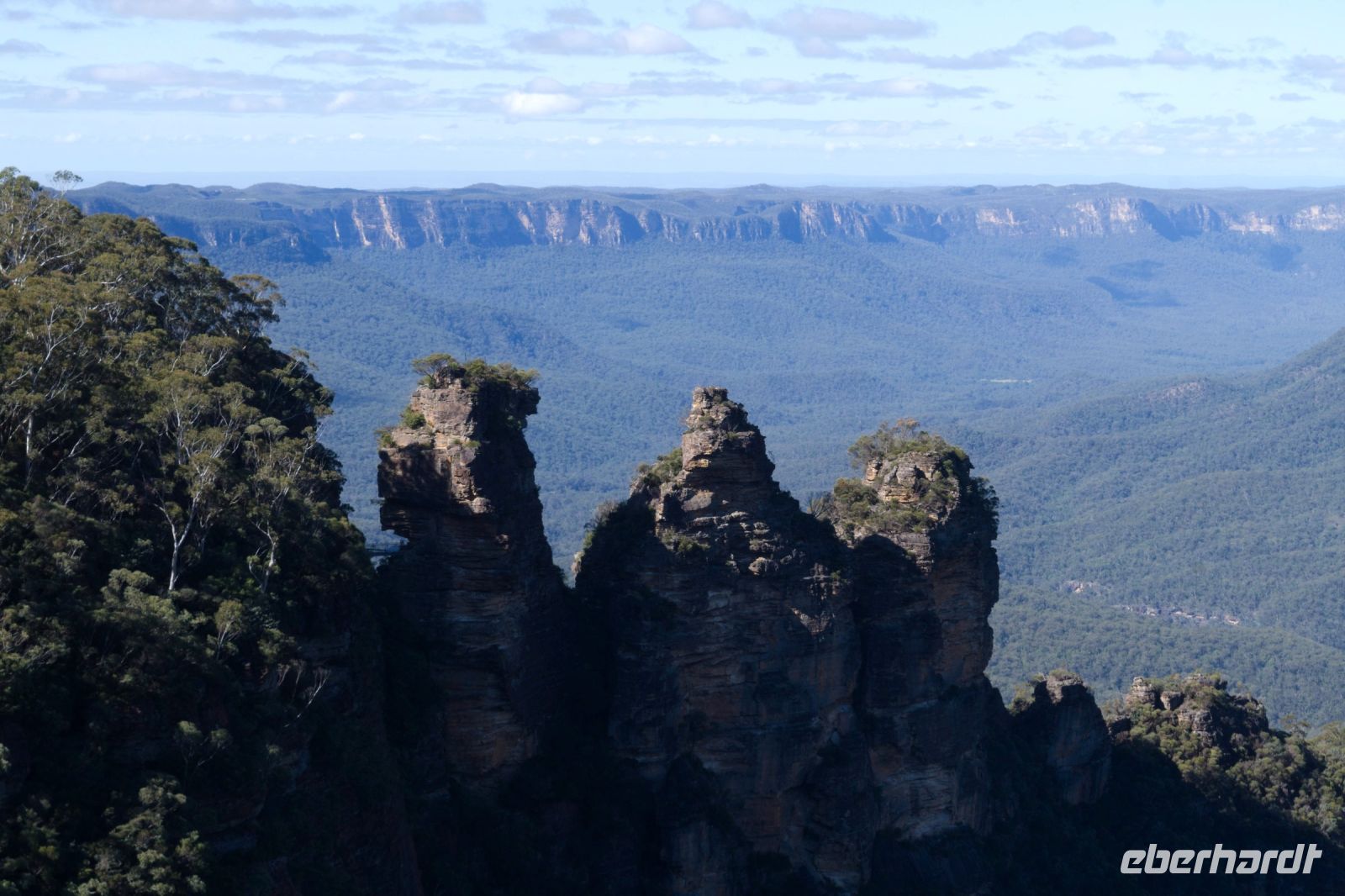 Nachdem wir am Vortag gemütlich ausgeschlafen haben, geht es heute wieder etwas früher los – eine spontane Planänderung, um den anderen Gruppen einen Schritt voraus zu sein. Und er hat sich gelohnt! Als wir den Featherdale Wildlife Park erreichten, gehörte er uns quasi allein. In aller Ruhe begegnen wir einer Vielzahl australischer Tierarten – von süßen Quokkas über neugierige Wombats bis hin zu Koalas, die in den Baumwipfeln dösen. Besonders beliebt sind die freilaufenden Kängurus und Wallabys, die sich füttern und sogar streicheln lassen. Anschließend machen wir uns auf den Weg zu unserem eigentlichen Tagesziel, den Blue Mountains. Sie verdanken ihren Namen dem bläulichen Dunst, der durch die ätherischen Öle der Eukalyptusbäume entsteht. Oftmals sind die Blue Mountains auch leider sehr wolkenverhangen und vernebelt, doch heute ist alles anders, denn wir haben Kaiserwetter! Bei strahlendem Sonnenschein und blauem Himmel haben wir eine klare Sicht auf die spektakulären Felsformationen und endlosen Wälder. Außerdem taucht der australische Herbst die Bäume in kräftige Rottöne, die einen wunderbaren Kontrast zur Landschaft bilden. Wir unternehmen kleinere Wanderungen zu Aussichtspunkten, von denen aus wir atemberaubende Ausblicke auf die berühmten „Three Sisters” genießen.