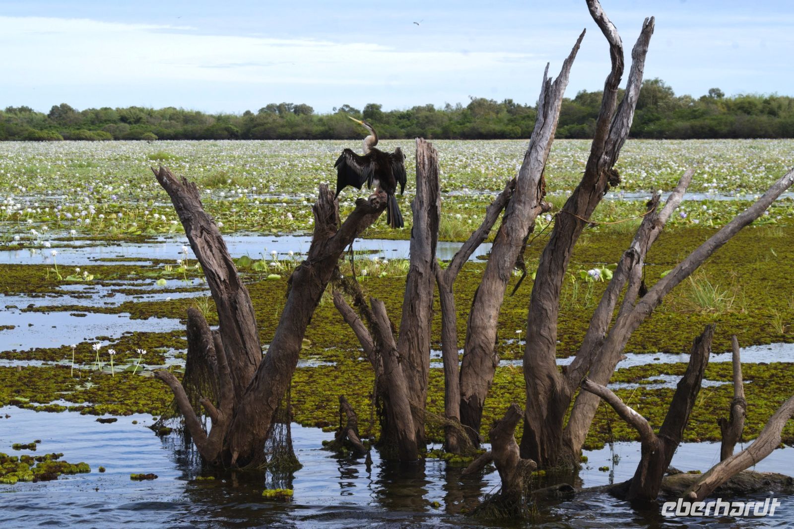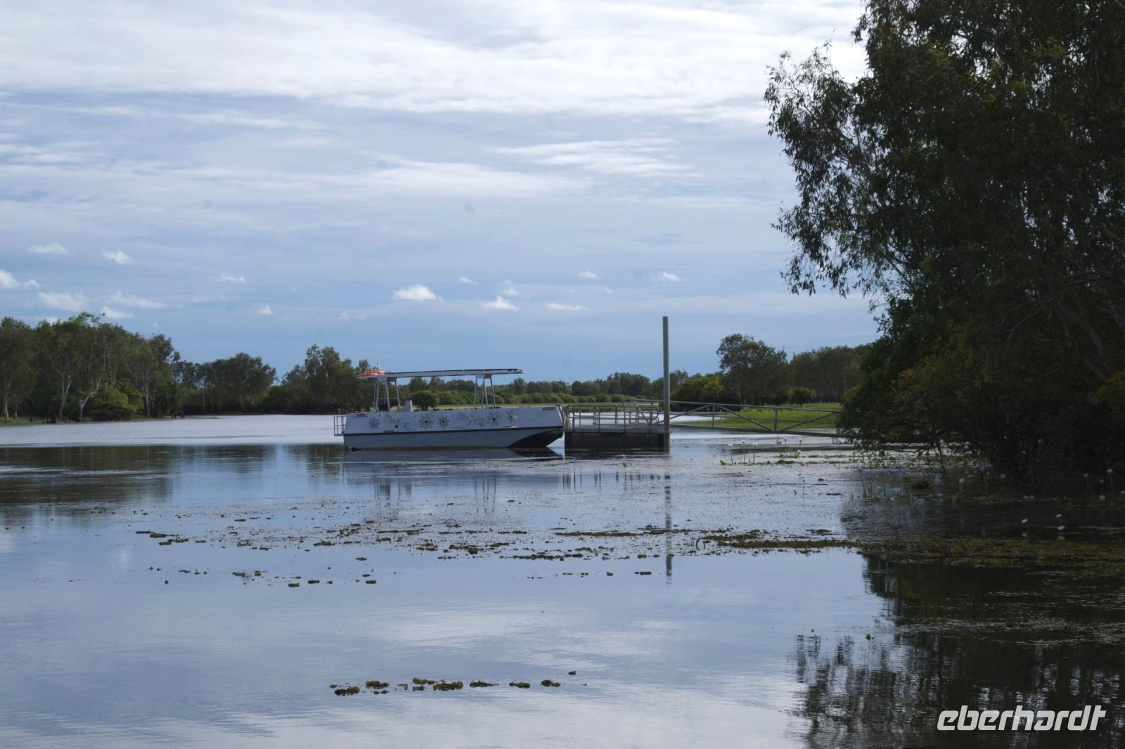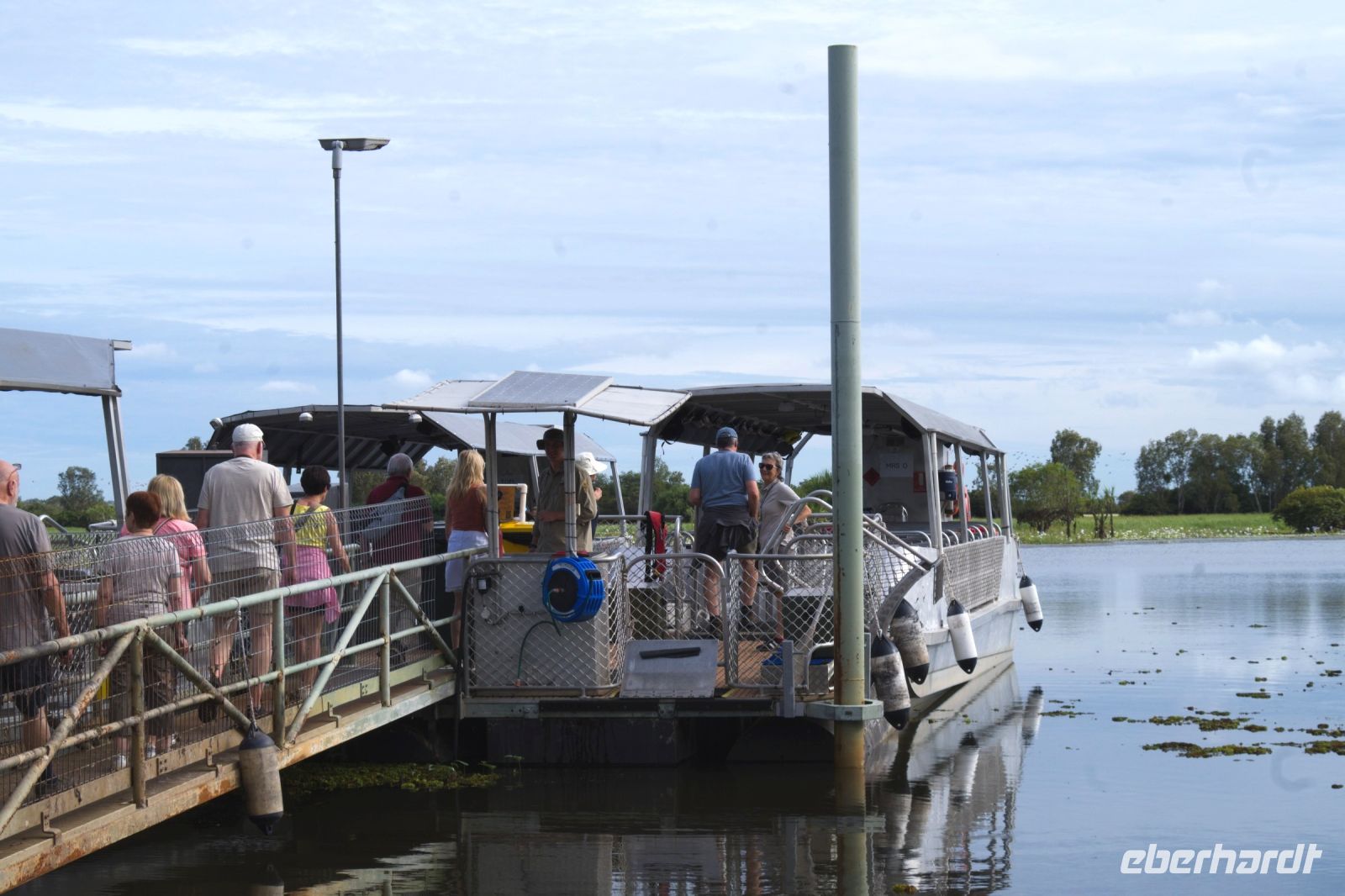 Heute fahren wir nach Cooinda, wo wir mit einem 4WD-Shuttlebus zur Anlegestelle für unsere Bootsfahrt auf den Yellow Waters gebracht werden. Da wir am Ende der Regenzeit durch das tropische Top End fahren, sind viele Straßen noch überflutet und für normale Fahrzeuge und unseren Reisebus gesperrt. Wir haben Glück und bekommen ein eigenes Boot, das uns die nächsten zwei Stunden gemütlich über die weiten Wasserflächen des Yellow Water Billabong trägt. Schon kurz nach dem Start entdecken wir Spaltfußgänse, australische Kraniche und ein Salzwasserkrokodil, das regungslos am Ufer lauert. Überall wachsen riesige Seerosenfelder, dazwischen flattern Eisvögel, Ibisse und Jacanas, die über die Wasseroberfläche zu „laufen“ scheinen. In den überschwemmten Mangroven und Papierbäumen verstecken sich bunte Kingfisher und Reiher. Am Himmel beobachten wir den einen oder anderen Seeadler. Die Vegetation ist üppig, grün und voller Leben - ein wahres Naturparadies. Nach der eindrucksvollen Bootsfahrt auf den Yellow Waters kehren wir an Land zurück und genießen unser Mittagessen in der Cooinda Lodge. Danach geht es weiter zum Nourlangie-Felsen, einer der wichtigsten kulturellen Stätten im Kakadu National Park. Hier unternehmen wir mit Esther einen Rundgang zu den berühmten Felsmalereien, die teilweise über 20.000 Jahre alt sind. Die Malereien gelten als eines der bedeutendsten Beispiele der Felskunst der Aboriginals in Australien und erzählen Geschichten aus der „Traumzeit“ - der Schöpfungszeit der Ureinwohner. Wir sehen verschiedene Tierdarstellungen wie Kängurus, Fische und Schildkröten und Geister - oft gemalt in der sogenannten Röntgentechnik, bei der die inneren Organe sichtbar gemacht werden. Bei tropischen Temperaturen und einem kurzen, leichten Regenschauer lauschen wir den Erklärungen und genießen den spektakulären Blick vom Aussichtspunkt auf die umliegende Landschaft. Dann geht es zurück in die Zivilisation, nach Darwin. Kurz nach Sonnenuntergang erreichen wir unser Hotel - gerade rechtzeitig, um den violett gefärbten Abendhimmel über der Stadt zu bewundern.