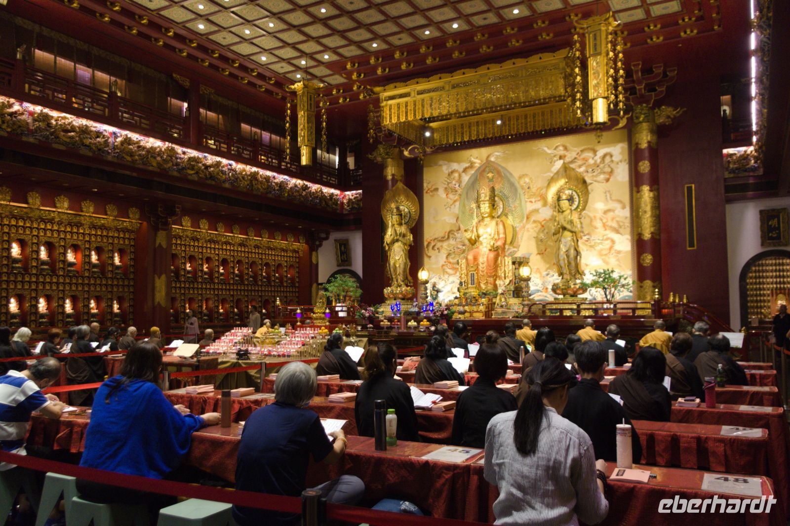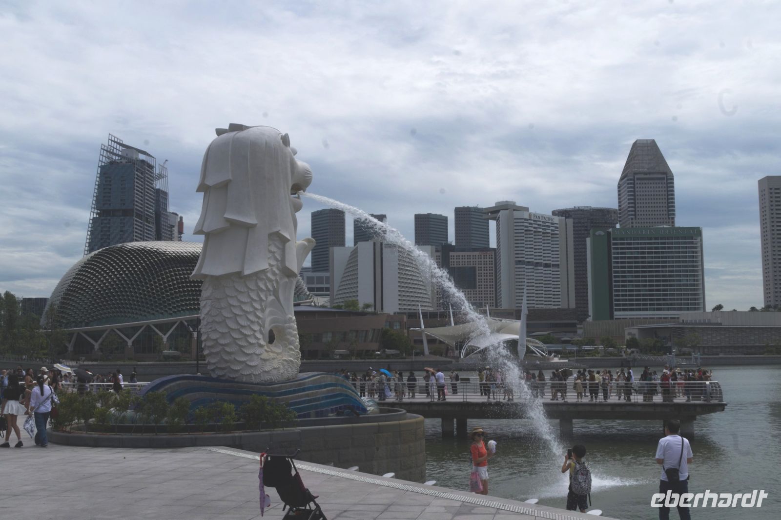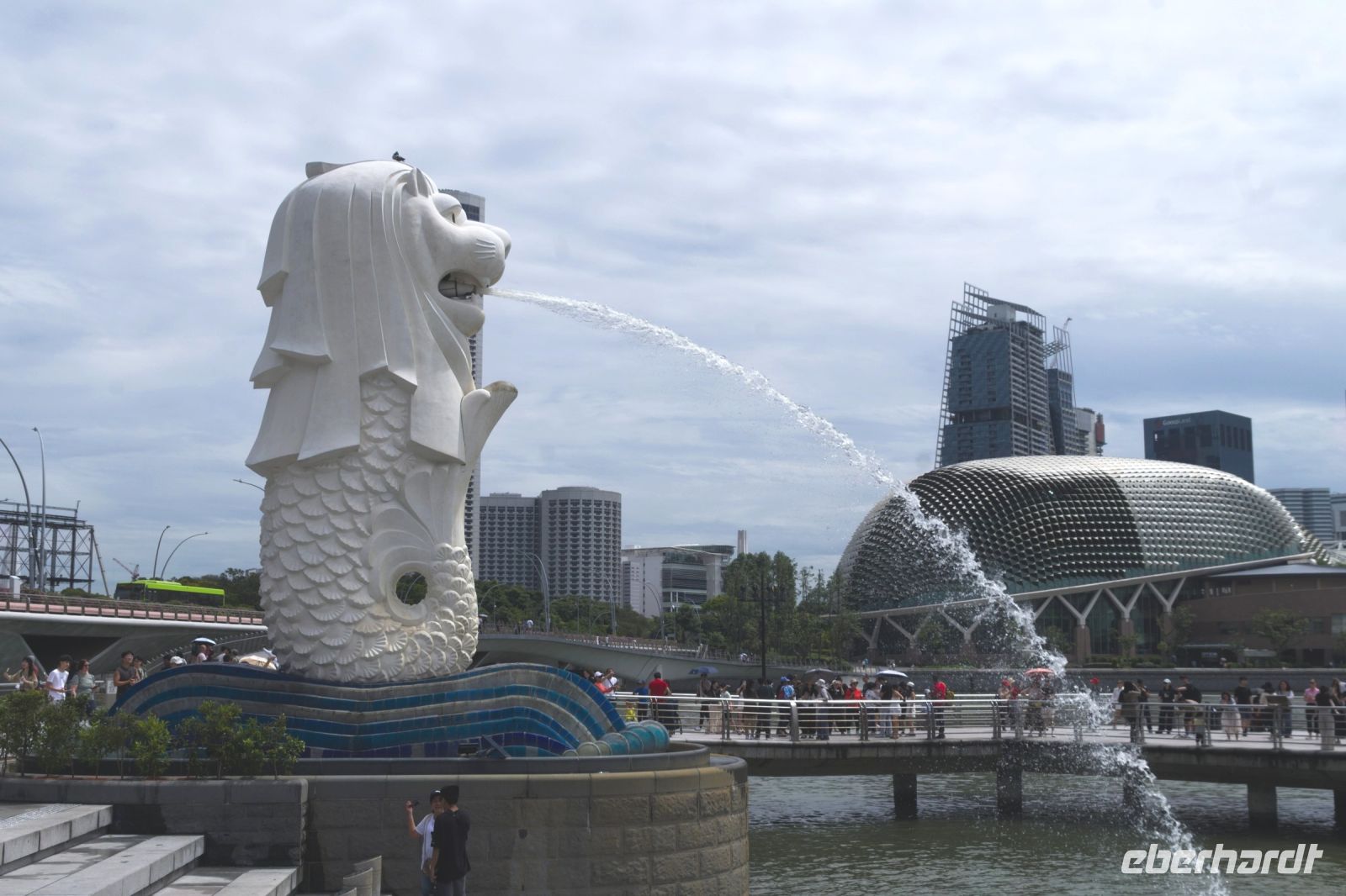 Am späten Nachmittag erreichen wir mit etwas Verspätung den Changi Flughafen in Singapur. Nach der Einreisekontrolle und der Gepäckausgabe werden wir in der Ankunftshalle bereits von unserem freundlichen Reiseleiter Alvin erwartet. Nachdem wir uns alle mit Singapore Dollars eingedeckt haben, fahren wir direkt zu unserem zentral gelegenen Hotel - dem eleganten „Grand Park City Hall“. Am Abend treffen wir uns zum fakultativen Abendprogramm wieder. Zuerst besuchen wir die Lichtershow „Spectra“ vor dem ikonischen Marina Bay Sands Hotel. Da wir gut in der Zeit liegen, finden wir hervorragende Plätze an der Marina Waterfront. Pünktlich um 20.00 Uhr beginnt die Wassershow und verzaubert uns für die nächsten 15 Minuten mit einer spektakulären Mischung aus Licht, Wasser und Musik. Anschließend geht es weiter zur Garden Rhapsody Show in den Gardens by the Bay, wo die futuristischen Supertrees in verschiedenen Farben erstrahlen und von Musik begleitet werden. Ein ebenso beeindruckender Anblick, der die Gruppe fasziniert. Nach diesen wunderbaren Eindrücken ist es Zeit für eine Stärkung. Wir machen uns auf den Weg zum nahe gelegenen Food Court Raspura Masters in der Marina Bay Sands Mall, wo es eine große Auswahl an asiatischen Gerichten gibt - für jeden Geschmack ist etwas dabei. Ein Teil der Gruppe fährt mit dem Taxi zurück zum Hotel, ich gehe mit den anderen zu Fuß. Wir spazieren entlang der Marina Bay, vorbei am Fullerton Hotel und dem berühmten Merlion. Es ist Vollmond und wir haben einen sensationellen Blick auf die nächtliche Skyline von Singapur. Außerdem tut der Abendspaziergang noch einmal richtig gut nach dem langen Flug. Es war ein wunderschöner Abend und perfekter Einstieg für unsere Reise.