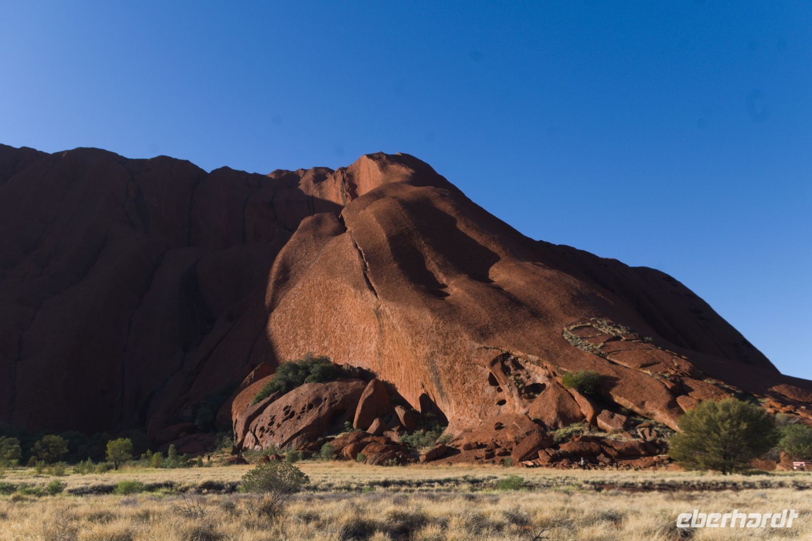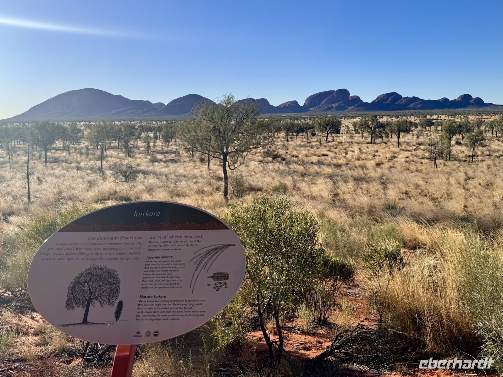 Heute heißt es wieder früh aufstehen, denn den Sonnenaufgang am Uluru wollen wir uns natürlich nicht entgehen lassen. Zum Glück ist dieser dank der Jahreszeit nicht ganz so früh wie sonst: Erst gegen 7:00 Uhr beginnt das Farbenspiel. Wir steuern einen anderen Aussichtspunkt als am Vortag an und erleben erneut dieses besondere Naturschauspiel. Am Morgen zeigt sich der Uluru noch einmal in ganz anderen Farben als bei Sonnenuntergang - sanfte Rosé- und Orangetöne tauchen den Felsen in ein faszinierendes Licht, während die Sonne langsam am Horizont erscheint. Ein wunderbarer Moment, der uns wiederholt beeindruckt. Anschließend fahren wir näher an den Uluru heran und unternehmen einen Spaziergang zum Mutitjulu-Wasserloch, einem Ort von großer kultureller Bedeutung. Unsere Reiseleiterin Eva erzählt uns Geschichten aus der Traumzeit, der Schöpfungsmythologie der Anangu-Aboriginals, den traditionellen Besitzern des Landes. Wir halten auch an der Stelle, an der früher der Aufstieg zum Uluru begann. Seit 2019 ist dieser Aufstieg offiziell verboten - eine Entscheidung, die von den Anangu sehr begrüßt wurde und einen wichtigen Schritt zum Schutz ihrer heiligen Stätte darstellt. Im Anschluss setzen wir die Rundfahrt um den Uluru fort und besuchen das Kultur- und Besucherzentrum der Anangu. Zurück im Hotel, erwartet uns ein reichhaltiges und wohlverdientes Frühstück. Danach starten wir unsere Überlandfahrt nach Alice Springs. Nach ca. 1,5 Stunden erreichen wir den Aussichtspunkt am Mount Connor, auch „Fooluru“ genannt, da er oft mit dem Uluru verwechselt wird. Direkt daneben liegt ein beeindruckender Salzsee - die Kontraste zwischen rotem Sand, weißen Salzflächen und tiefblauem Himmel sind spektakulär. Weiter geht es zum Eldunda Roadhouse, wo wir eine kleine Pause einlegen. Hier gibt es die Möglichkeit zu einem Imbiss und zur Begegnung mit neugierigen Emus, die auf dem dazugehörigen Farmgelände herumlaufen. Am Nachmittag erreichen wir Alice Springs. Es bleibt noch etwas Zeit zur freien Verfügung und einige Gäste nutzen die Gelegenheit, sich im Pool des Hotels abzukühlen.