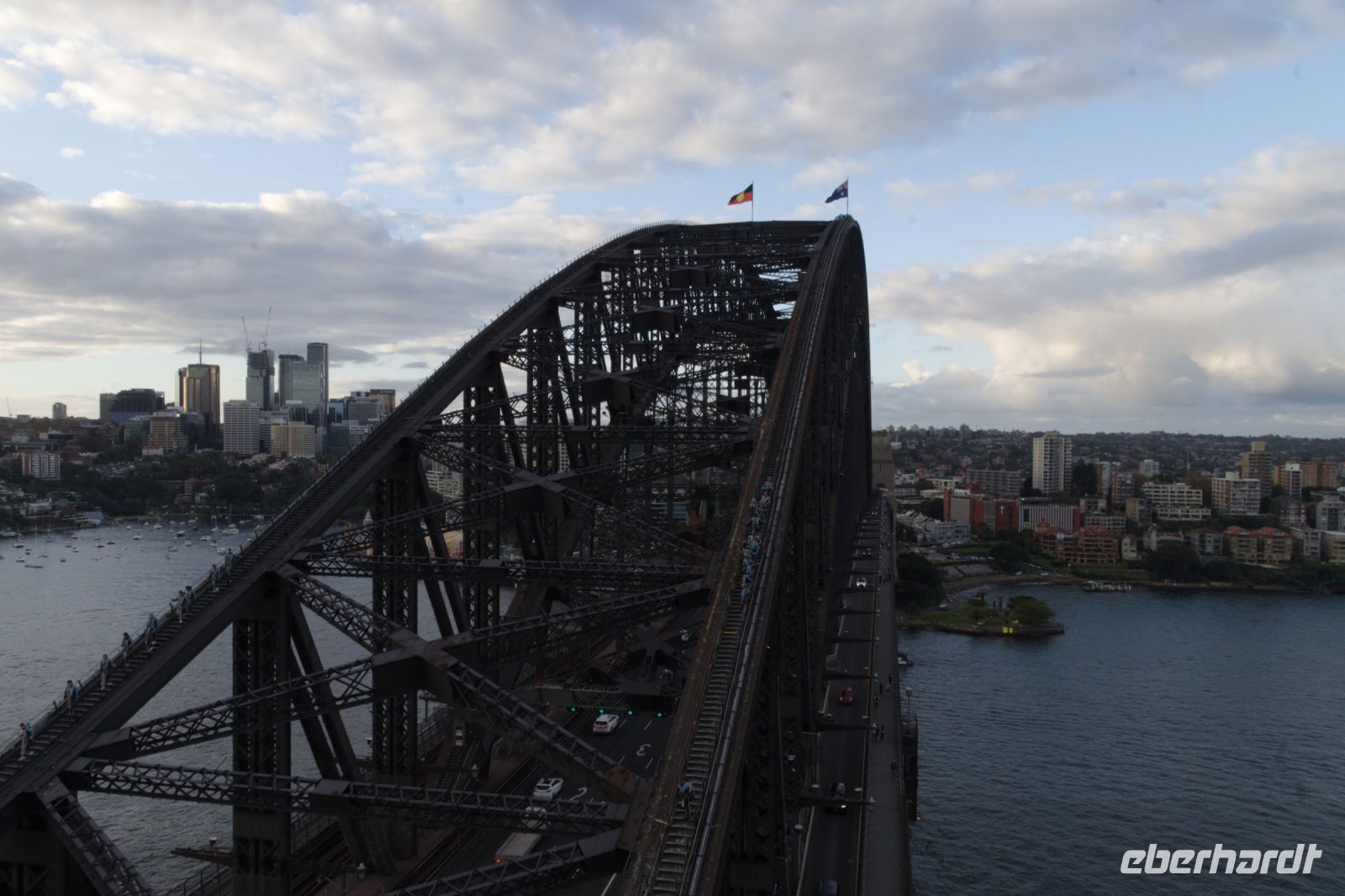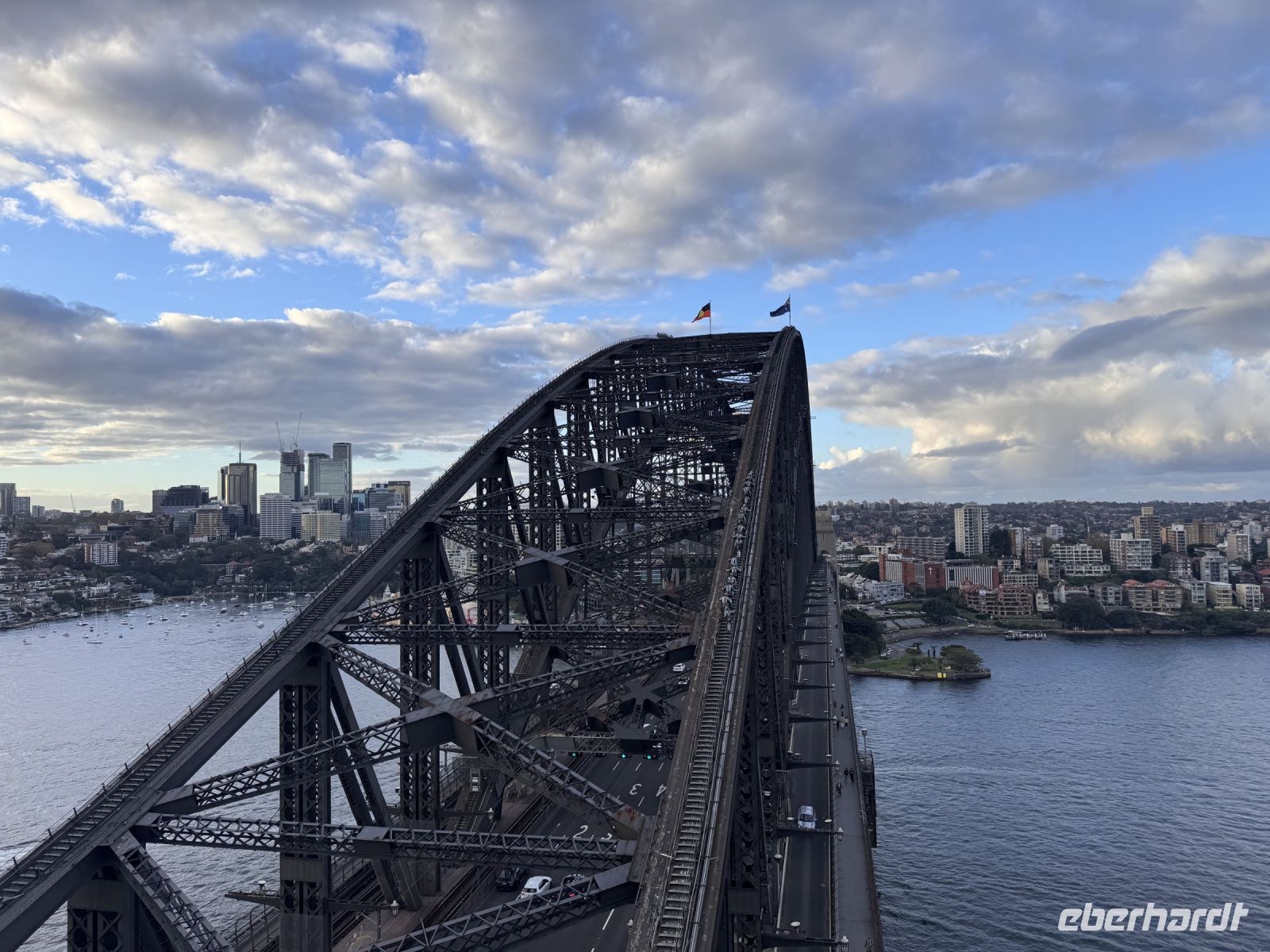 Nach ein paar etwas ruhigeren Tagen heißt es heute wieder: volles Programm! Unsere große Stadtrundfahrt beginnt mit einer Fahrt durch das Herz der Stadt: Wir fahren entlang des Hyde Parks, vorbei an beeindruckenden Bauwerken und weiter Richtung Darling Harbour, wo der neue, markante Crowne-Komplex inzwischen die Skyline prägt. Danach steuern wir den Aussichtspunkt Mrs Macquarie’s Chair an, von wo aus Sie ein traumhaftes Panorama auf die Harbour Bridge und das weltberühmte Opernhaus genießen können. Anschließend verlassen wir das Stadtzentrum und fahren zu den östlichen Stränden. In Watsons Bay unternehmen wir einen kleinen Spaziergang mit Blick auf das offene Meer, bevor wir den legendären Bondi Beach erreichen. Hier bleibt Zeit, um Surfer zu beobachten, barfuß durch den Sand zu laufen oder einfach die besondere Atmosphäre aufzusaugen. Der Rückweg führt durch das charmante Viertel Paddington mit seinen typischen viktorianischen Häusern und schmiedeeisernen Balkonen. Ein kleiner Zwischenfall – Unser fast neuer Reisebus wird beim Einparken von einer Autofahrerin gestreift. Zum Glück bleibt es bei einem harmlosen Blechschaden, der unseren Zeitplan nicht beeinflusst, sodass wir den Circular Quay pünktlich erreichen. Im historischen Customs House bewundern wir das detailgetreue Stadtmodell von Sydney, das unter einer Glasplatte im Boden eingelassen ist. Wer möchte, erkundet anschließend mit Monika noch das historische Viertel The Rocks, bevor wir uns alle zur Hafenrundfahrt wiedertreffen. Bei strahlendem Sonnenschein lassen wir uns auf dem Schiff den Wind um die Nase wehen und genießen die wunderbare Aussicht auf die Skyline der Stadt. Als ich meine Gruppe so zufrieden, lachend und entspannt an Deck sitzen sehe, gibt es für mich nur eine angemessene Reaktion: Ich bestelle eine Runde Prosecco für alle, um auf unsere wunderschöne Reise und die letzten gemeinsamen Tage anzustoßen. Zum Abschluss des Tages steht noch ein ganz besonderer Programmpunkt auf dem Plan: eine Führung durch das weltberühmte Opernhaus von Sydney, das vom dänischen Architekten Jørn Utzon entworfen wurde. Tragischerweise hat er sein architektonisches Meisterwerk nie vollendet gesehen. Umso beeindruckender ist es, heute durch seine ikonischen Räume zu gehen. Den Abend lassen wir bei einem köstlichen Abendessen in einem Fischrestaurant am Darling Harbour ausklingen. Als kleines, abendliches Highlight haben wir natürlich extra ein Feuerwerk für unsere Gruppe bestellt, an dem sich auch die anderen Gäste am Darling Harbour erfreuen (Zwinker).