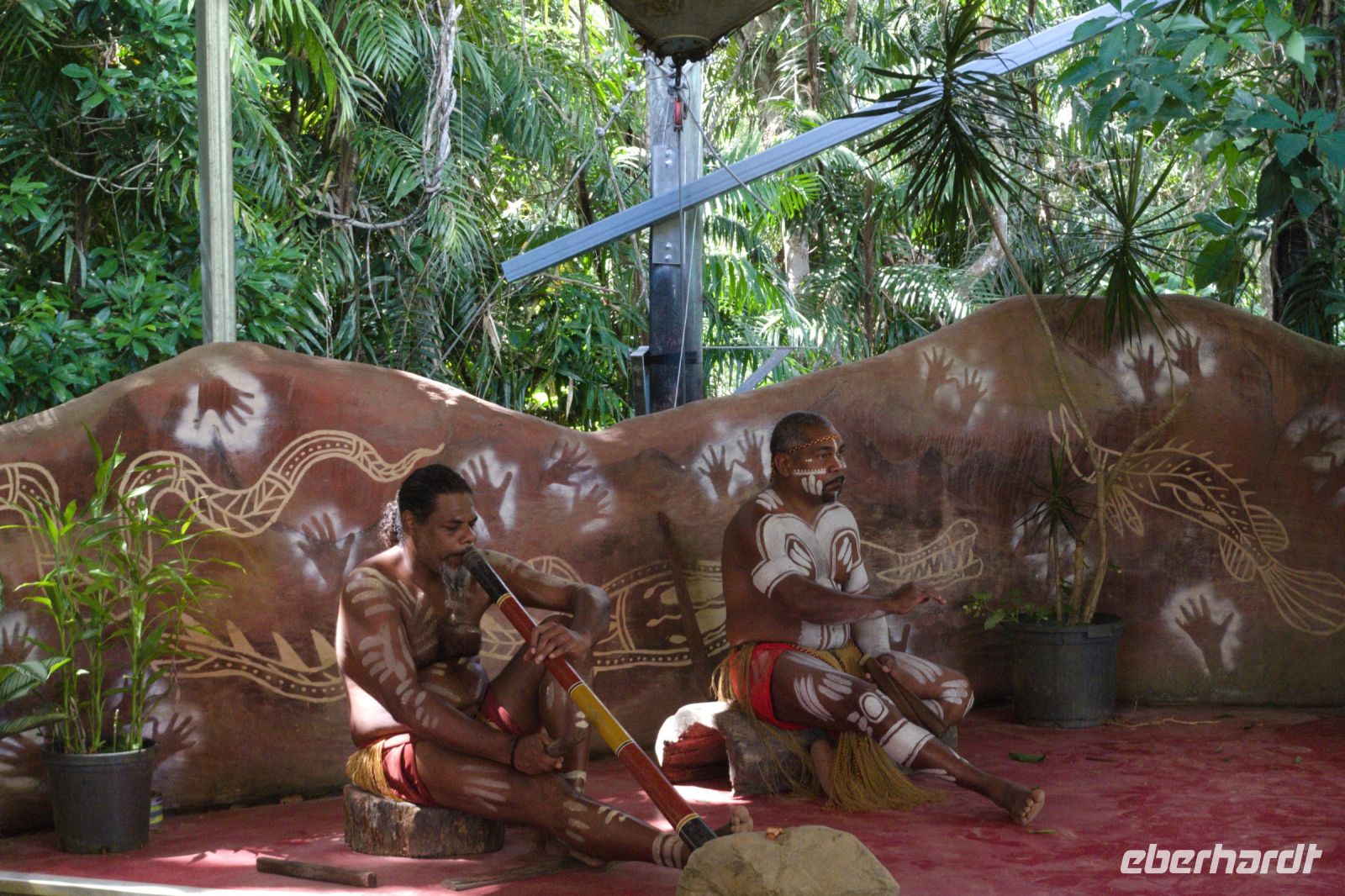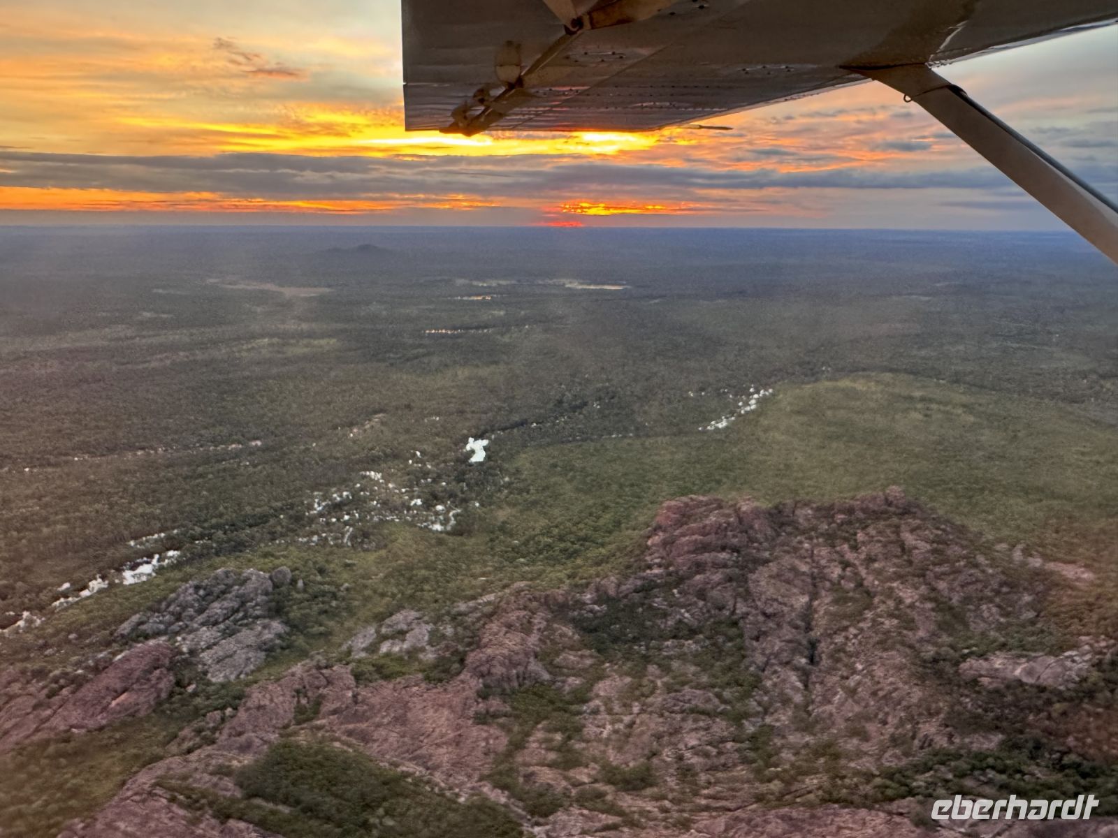 Heute starten wir in ein neues Abenteuer. Wir fahren in den berühmten Kakadu Nationalpark, UNESCO Weltnaturerbe und größtes Schutzgebiet Australiens. Die Fahrt führt uns durch das Feuchtgebiet entlang des Adelaide River - mitten durch eine Landschaft, die sich gerade von der Regenzeit erholt. Alles ist saftig grün, durchtränkt von den letzten Regenfällen und schon unterwegs entdecken wir unzählige Vögel in der üppigen Natur. Unser erster Programmpunkt ist die Pudakul Aboriginal Tour, mitten im Land der Limilngan-Wulna Aboriginals. Wir treffen unsere Aboriginal Guides, ein Familienbetrieb, der uns tiefer in seine Kultur eintauchen lässt. Bei einem geführten Buschspaziergang erfahren wir, wie vielfältig die Pflanzen hier genutzt werden - gegen Erkältungen, zur Wundheilung oder als Schutz vor Moskitos. Unglaublich spannend, wie viel Wissen hier über Generationen weitergegeben wurde! Dann erzählt uns der Vater der Familie etwas über das Didgeridoo. Wir erfahren auch spannende soziale Regeln der Aboriginals - zum Beispiel, dass man sich immer mit dem Stamm und nicht mit dem Namen vorstellt und dass man den Mitgliedern des eigenen Stammes beim Sprechen üblicherweise nicht in die Augen schaut, um zu vermeiden, dass man sich in jemanden „verbotenen“ verliebt. Dann zeigt uns die Tochter, wie Speerwerfen funktioniert und wie geschickt die Ureinwohner traditionell jagen und fischen. Außerdem demonstriert sie uns, wie aufwendig Körbe und Taschen aus den Blättern der Pandanus-Pflanze geflochten werden, was sich als echte Handwerkskunst herausstellt! Zum Abschluss gibt es eine kleine Stärkung mit Sandwiches und Damper, dem traditionellen australischen Buschbrot. Dieses Brot wird aus einfachen Zutaten, die man in der Natur findet, gebacken und ist für uns tatsächlich das erste richtige Brot (ein bisschen vergleichbar mit deutschem Brot), seit wir in Australien sind. Danach geht es weiter in Richtung Kakadu National Park, wo wir die nächste Nacht mitten im Nationalpark in einem Hotel mit einem Grundriss in Form eines Krokodils verbringen werden. Zum krönenden Abschluss des Tages unternehmen viele Gäste einen einstündigen Rundflug über den Kakadu-Nationalpark zum Sonnenuntergang. Aus der Vogelperspektive eröffnet sich ein ganz neuer Blick auf die imposanten Wasserfälle, die gewaltigen Felsplateaus und die endlose Weite dieser einzigartigen Landschaft. Als die Sonne hinter dem Horizont verschwindet und den Himmel in leuchtende Farben taucht, landen wir wieder auf dem kleinen Flugplatz und fahren glücklich und voller Eindrücke zurück ins Hotel.