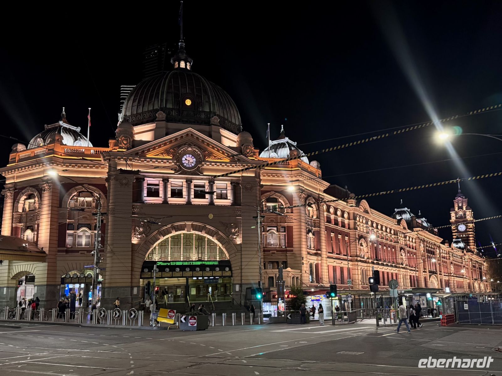 Bereits um 4:30 Uhr klingeln heute die Wecker, denn wir brechen auf zu unserem Flug nach Melbourne – und das am Ostersonntag. Ganz nach dem Motto „Der frühe Vogel fängt den Wurm“ treffen wir uns in der Hotellobby, wo ein kleines Frühstücksbuffet sowie vorgepackte Boxen bereitstehen. Damit das Osterfest nicht ganz untergeht, gibt es von mir für alle noch einen kleinen Oster-Glückskeks. Virgin Australia befördert uns in rund 3,5 Stunden nach Melbourne, wo uns unsere örtliche Reiseleiterin Andrea bereits erwartet und sofort zu einer kleinen Stadtrundfahrt entführt. Erste Station ist der Queen Victoria Market, ein Wahrzeichen Melbournes und der größte Freiluftmarkt der südlichen Hemisphäre. Von frischem Obst und Gemüse über Fisch, Fleisch und Käse bis hin zu Kleidung, Kunsthandwerk und Souvenirs gibt es hier fast alles. Manch einer gönnt sich auf Andreas Empfehlung hin eine australische Bratwurst oder leckere Donuts. Natürlich könnten wir hier noch stundenlang verweilen, aber Melbourne hat noch viel mehr zu bieten. Weiter geht es durch den Melbourne Sports Park, das Herz des australischen Sports. Neben dem weltberühmten Melbourne Cricket Ground - mit über 100.000 Plätzen eines der größten Stadien der Welt - sehen wir auch die Tennisanlage der Australian Open sowie die beeindruckenden Stadien für Rugby, Fußball und Australian Football. Letzterer ist der absolute Lieblingssport vieler Australier und hat in Melbourne eine besondere Bedeutung, da er hier erfunden wurde. Der Sports Park war auch Austragungsort der Olympischen Sommerspiele 1956. Wir halten am Federation Square, bevor wir zu den berühmten Graffiti Lanes schlendern. Die Hosier Lane und die ACDC Lane begeistern uns mit ihren bunten, ständig wechselnden Wandbildern. Hier entdecken wir sogar ein Werk von Banksy. Zum Abschluss fahren wir nach St. Kilda und schlendern gemütlich an der Strandpromenade entlang, während die Sonne langsam untergeht und die Promenade in goldenes Licht taucht. Nach dem Abendessen im hervorragenden „Meat & Wine“ Restraurant (Teil des Essenspaketes) unternehmen wir in kleiner Gruppe noch ein zusätzliches Abendprogramm. Zuerst geht es auf das Eureka Skydeck, mit 297 Metern das höchste Aussichtsdeck der südlichen Hemisphäre. Von hier oben haben wir einen atemberaubenden Blick auf die Stadt bei Nacht. Danach spazieren wir am Yarra River entlang, vorbei am beleuchteten Federation Square zur historischen Flinders Street Station, die abends besonders schön ist.