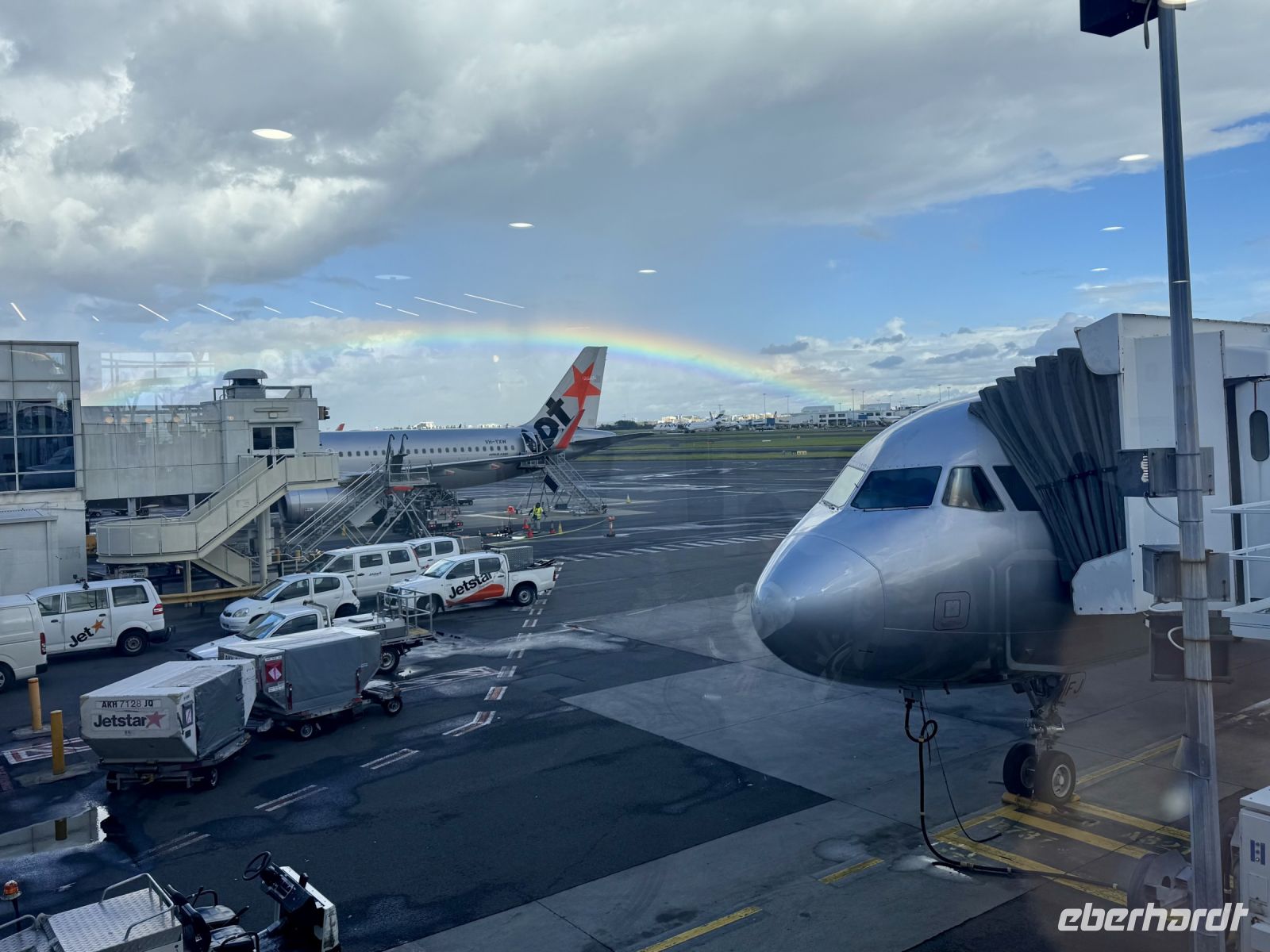 Endlich hat das lange Warten ein Ende und voller Vorfreude treffen wir uns am Frankfurter Flughafen. Heute beginnt unsere große Reise nach Australien! Mit einem Airbus A380 der renommierten Singapore Airlines fliegen wir durch die Nacht nach Singapur, wo wir eine Zwischenübernachtung einlegen, um die Anreise nach Australien etwas entspannter zu gestalten. An Bord werden wir von den Flugbegleiterinnen in ihren traditionellen, farbenfrohen Seidenkleidern herzlich begrüßt. Der Flug selbst verläuft für die meisten recht angenehm. Wir werden mit leckerem, asiatisch angehauchtem Essen und einer guten Getränkeauswahl verwöhnt und können uns die Zeit mit dem umfangreichen Bordunterhaltungsprogramm vertreiben. Da wir über Nacht fliegen, finden die meisten von uns tatsächlich etwas Schlaf, während wir uns Singapur nähern.