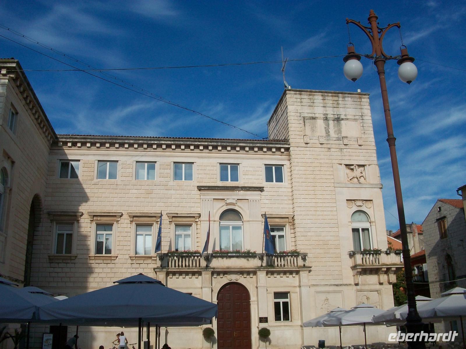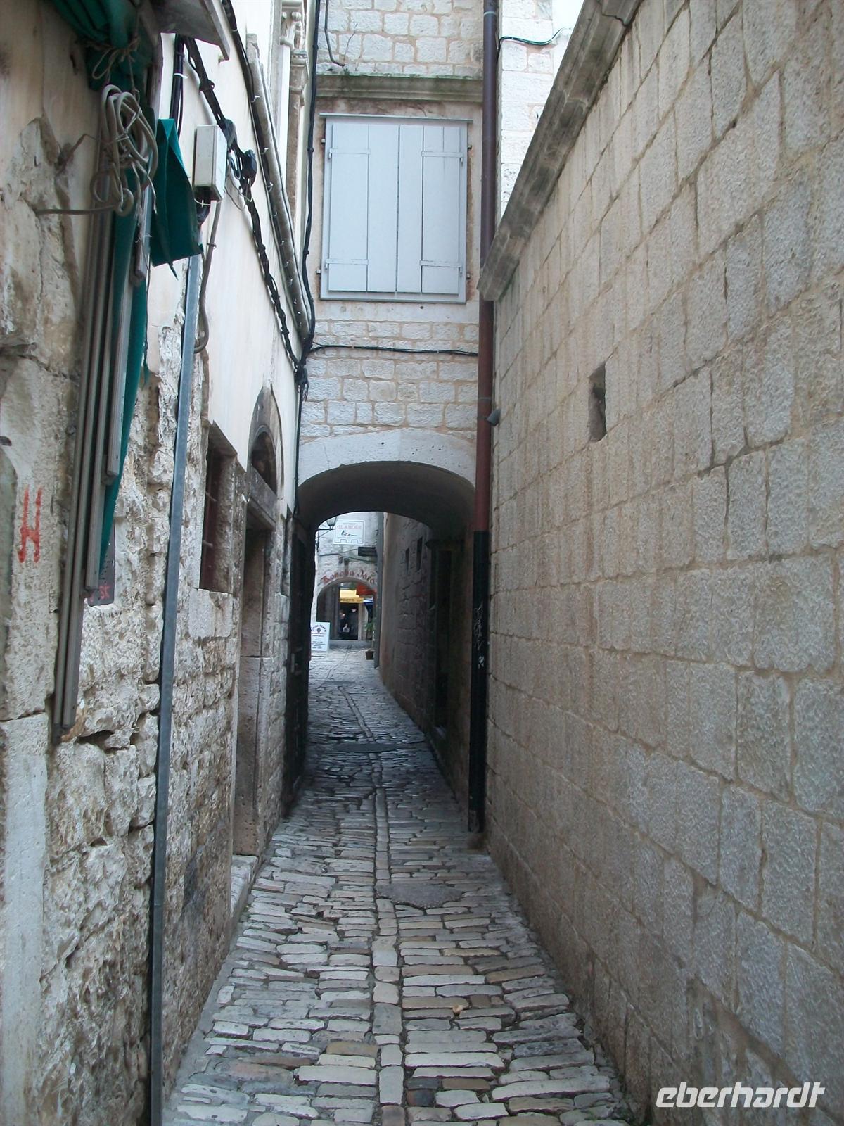 Wir sehen den Hauptplatz mit Kathedrale, Stadtloggia und den schönen Bürgerhäusern im venezianischen Stil. Es geht durch schmale und enge Gässchen wie durch ein großes Freiluftmuseum. Aber Trogir ist eine bewohnte Stadt, in ihr leben ganz normale Menschen, die ihre Wohnungen in diesen geschichtsträchtigen Mauern haben.