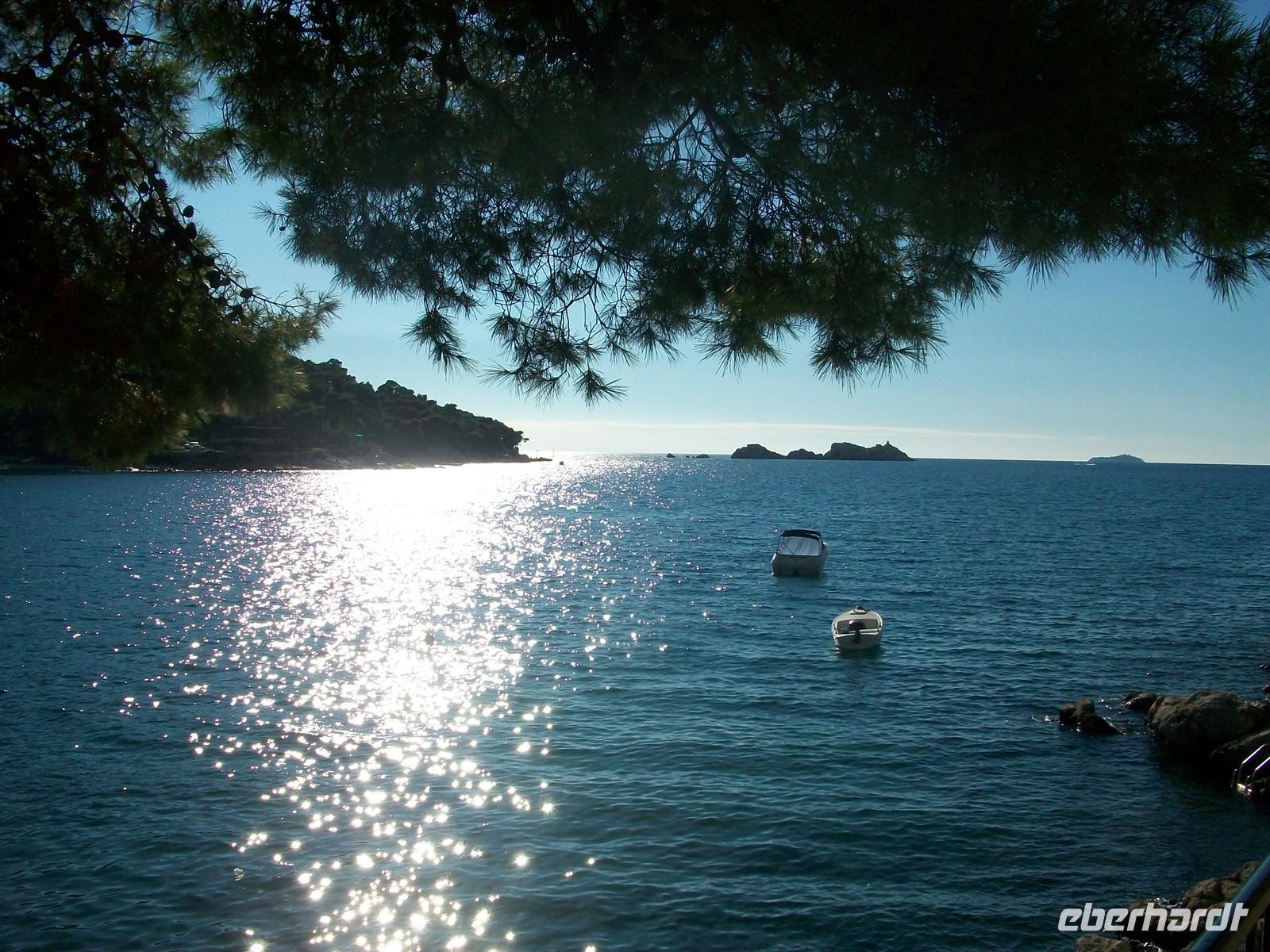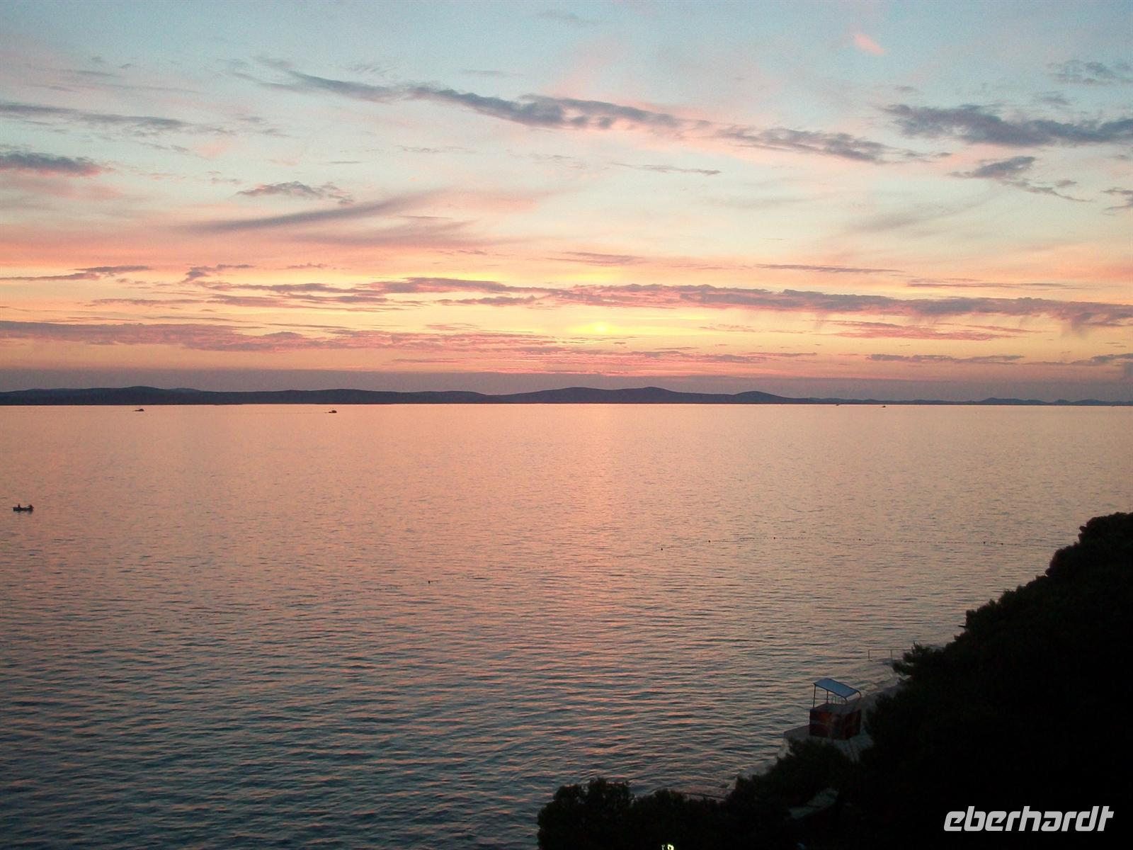 Ich gehe hinunter zu der wirklich schönen Strandpromenade und genieße die warmen Sonnenstrahlen. Der Promenade gegenüber befindet sich die Insel Ugljan, viele Einwohner und Touristen lassen sich dorthin übersetzen und verbringen da eine angenehme Zeit. Aber auch hier ist es sehr schön, der leichte Wellengang lässt die Stahlen der Sonne in einem silbrigen Licht im Wasser glitzern, die sich in tausenden von Reflexen brechen und vor meinen Augen einen munteren Tanz vollführen. Es ist ein wirklich prächtiger Nachmittag!
