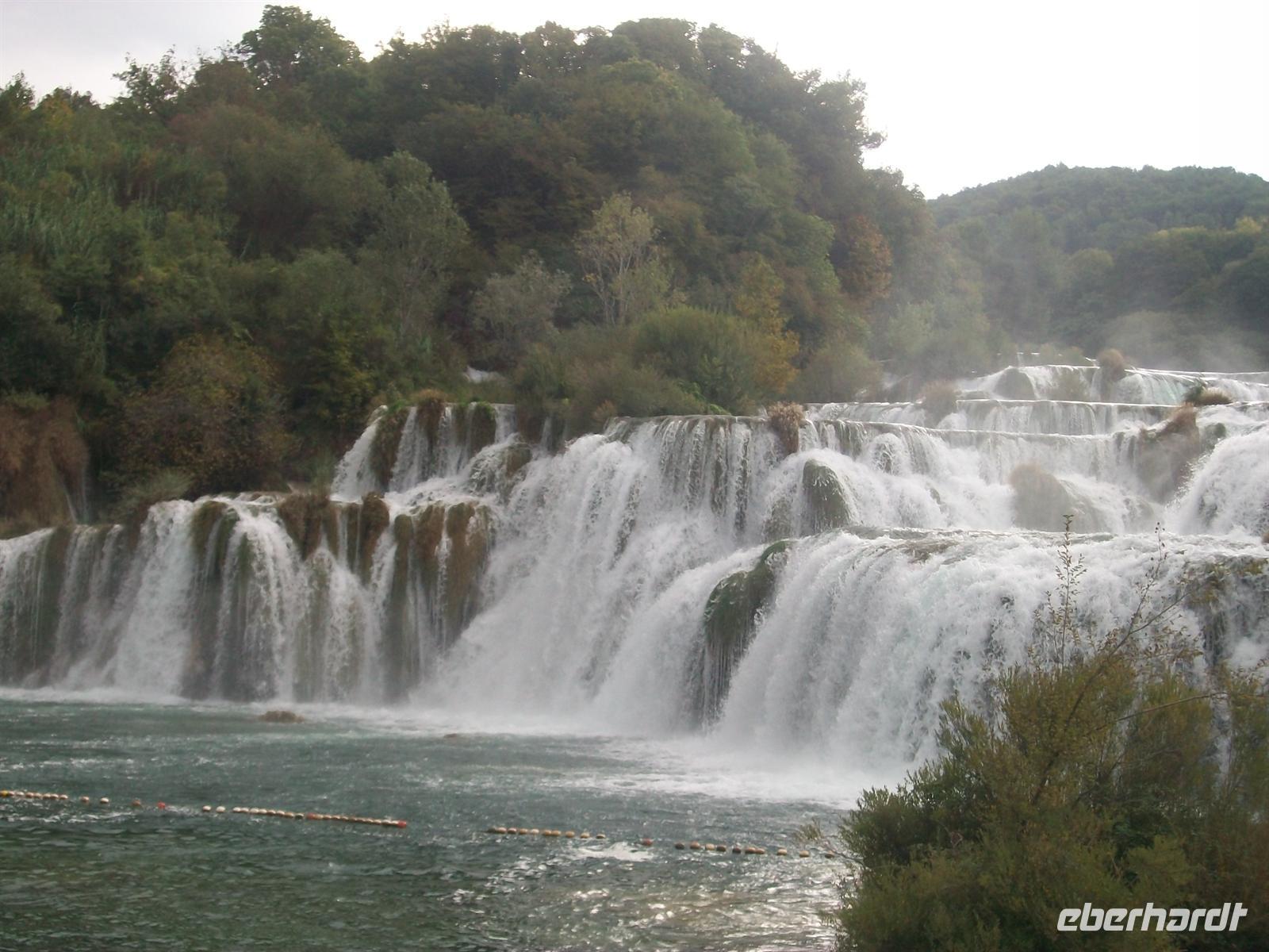Bei wiederholt sonnigen und warmen Wetter erreichen wir den Park gegen 10.45 Uhr. Unser Bus fährt uns direkt hinunter und von hier sind es nur wenige Gehminuten zum Skradinski Buk, dem gigantischen Wasserfall den wir in der nächsten guten Stunde umrunden werden.