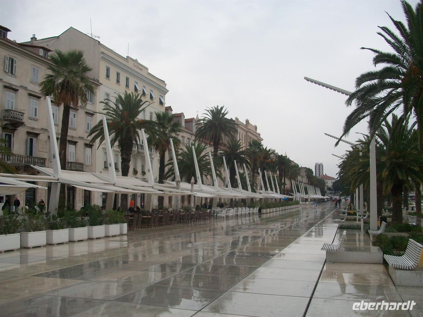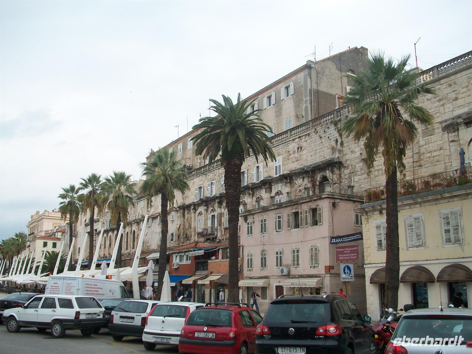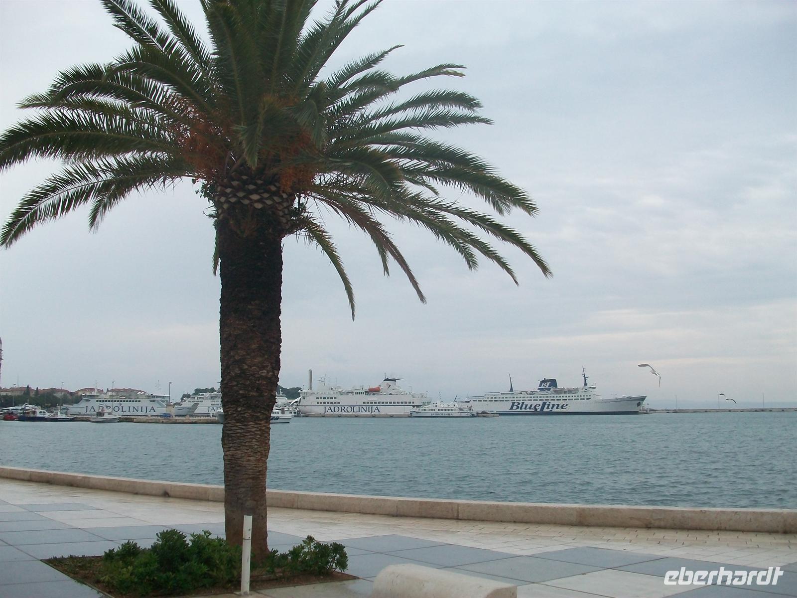5.10.2010. 9.10 Uhr. Der Tag beginnt mit etwas wechselhaftem Wetter. Unsere Reisegruppe befindet sich auf der Riva unter Palmen, so heißt die Strandpromenade von Split.