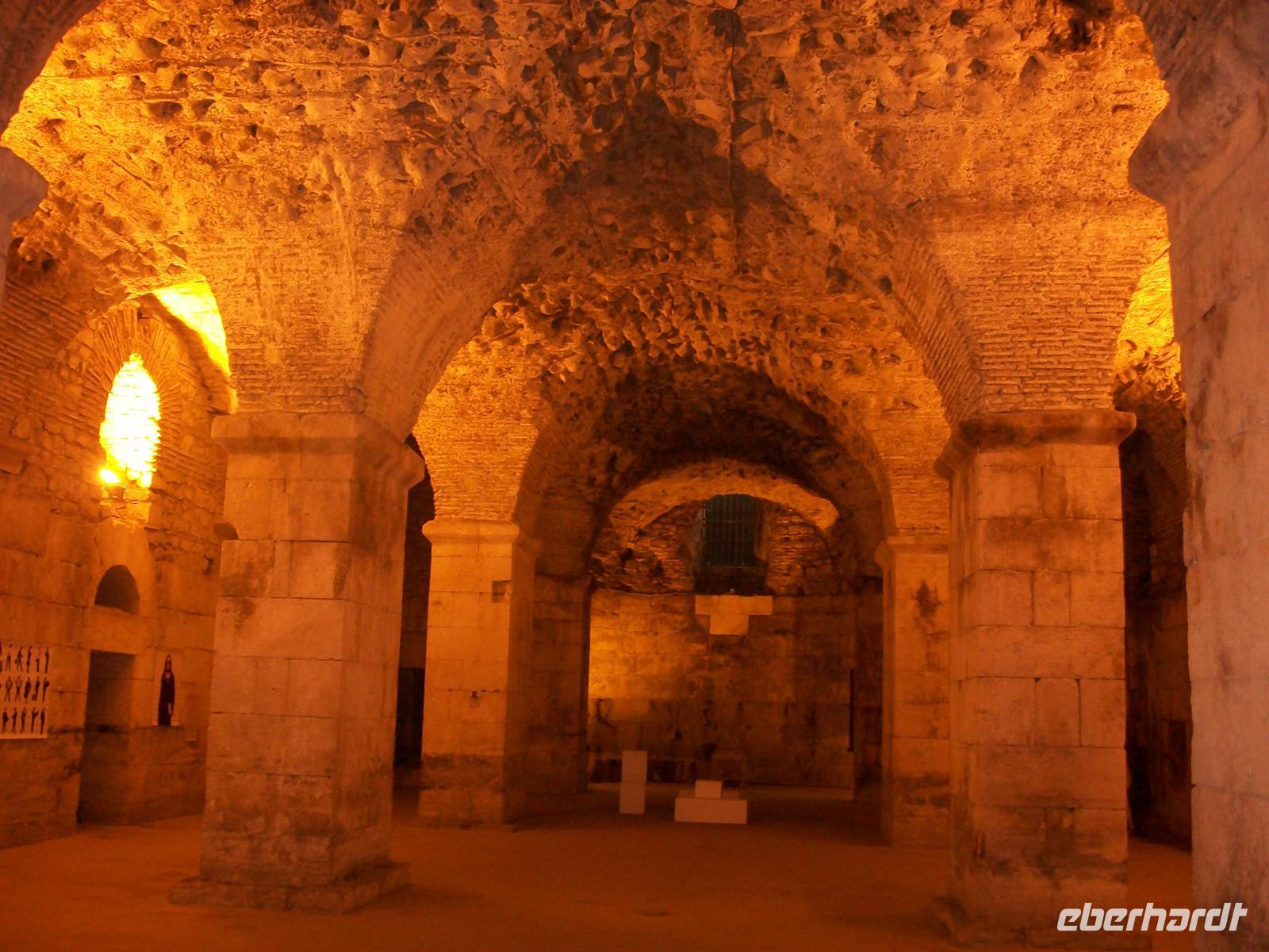 Mit unserer Stadtführerin Vesna werden wir uns nun etwa 1 700 Jahre in der Zeit zurück bewegen. Wir gehen von der Riva direkt in den ehemaligen Palast, hinunter in die Kellerräume die uns hier ein Abbild der einstmals oben liegenden Räume vermitteln.