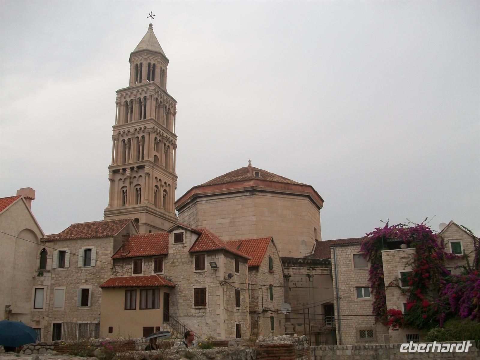 Uns direkt gegenüber zieht sich die Südfassade des Palastes entlang, den sich der Römische Kaiser Diokletian erbauen ließ.