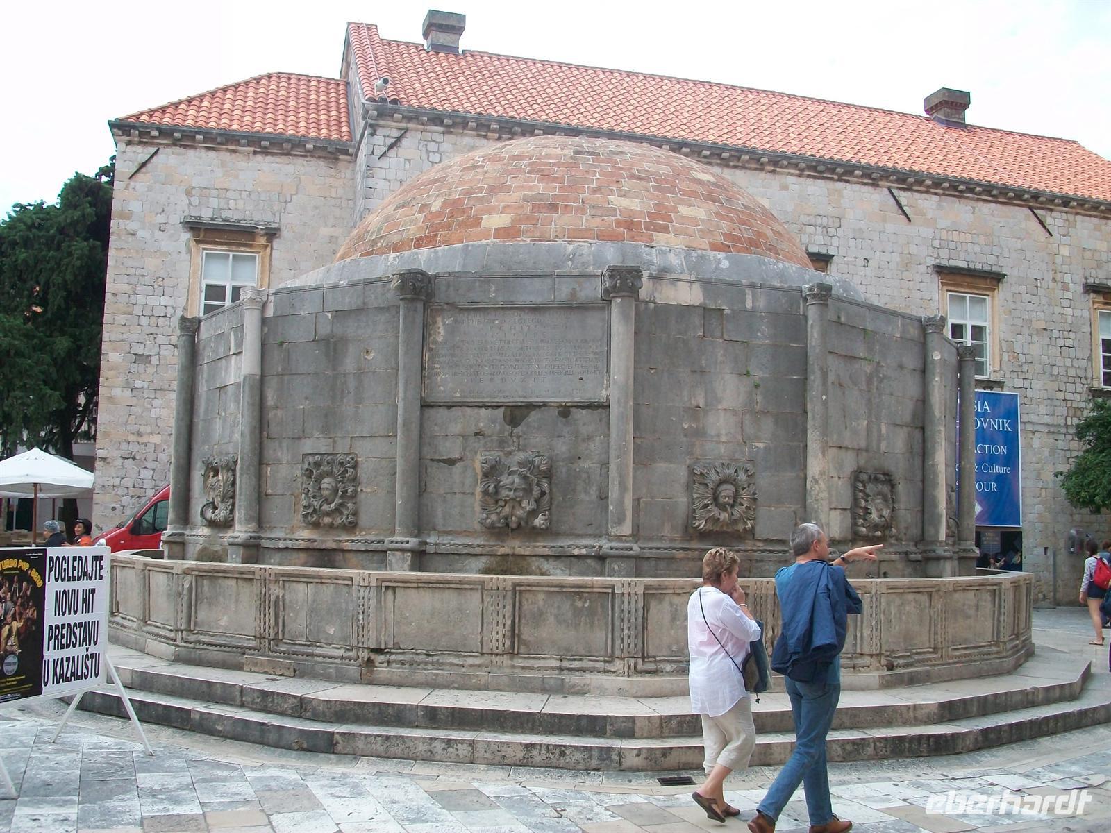 Dann bummeln wir noch zum Hauptplatz wo sich viel junges Volk eingefunden hat und diesen Sommertag bei einem Kaffee in den zahlreichen Restaurants genießt. Sehenswert ist auch hier die Architektur, unser Weg führt uns dann noch an der Simonskirche vorbei zum Platz der fünf Brunnen. Der Name ist etwas irreführend, denn es sind Zisternen, die zur venezianischen Zeit als Wasserspeicher angelegt wurden. Es bestand immer die Möglichkeit der Belagerung durch die Türken und so hatte man innerhalb der Stadtmauern ständig Wasser vorrätig.