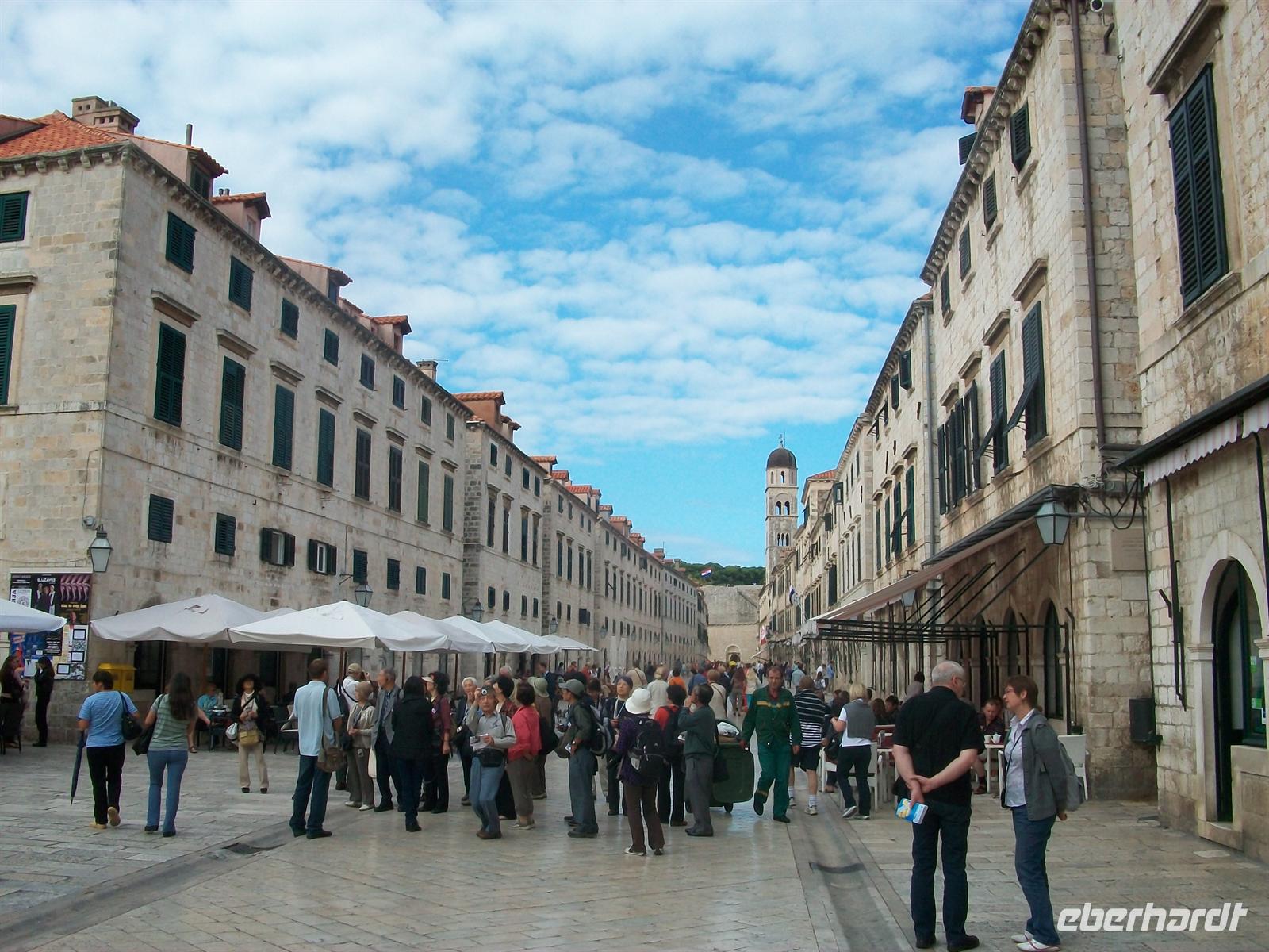 Bis Dubrovnik werden unsere Gäste in den vollen Genuss dieser Ausblicke kommen. Die Fahrt führt an bekannten Badeorten vorbei, am Strand liegen zahlreiche Badegäste die bei durchaus noch angenehmen Luft- und Wassertemperaturen die Sonne genießen.