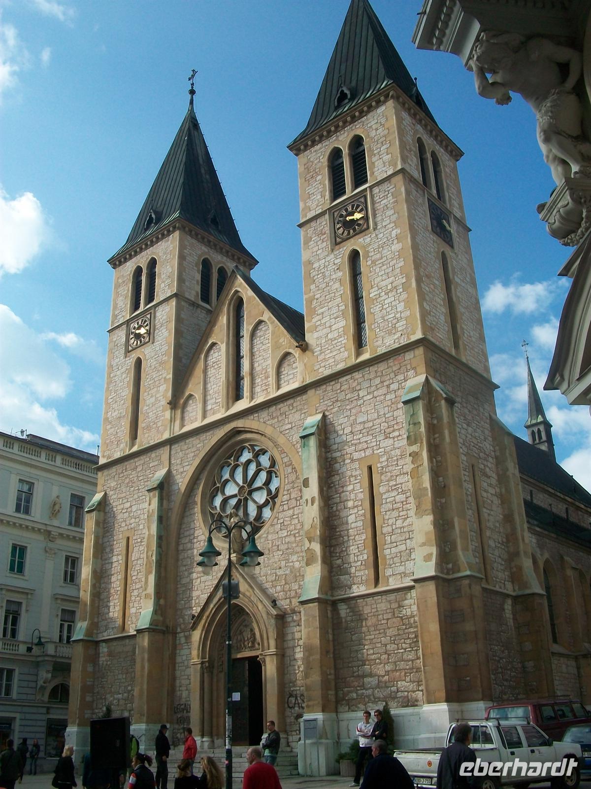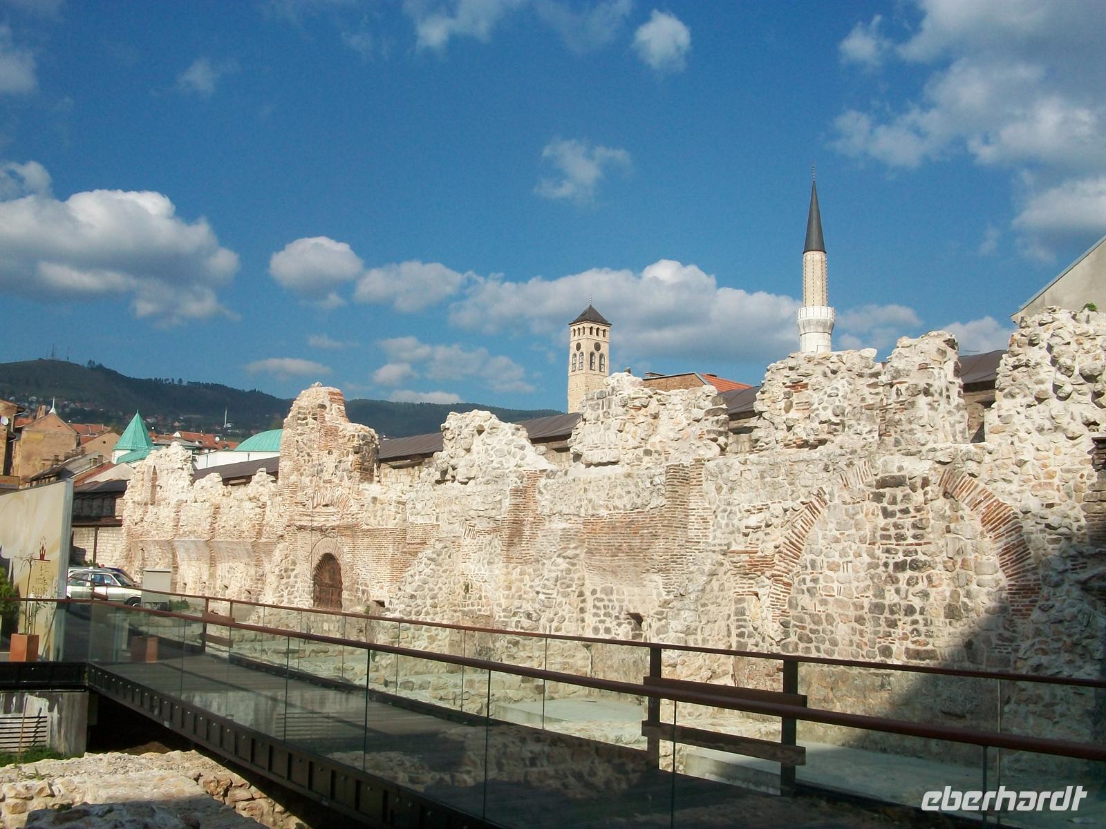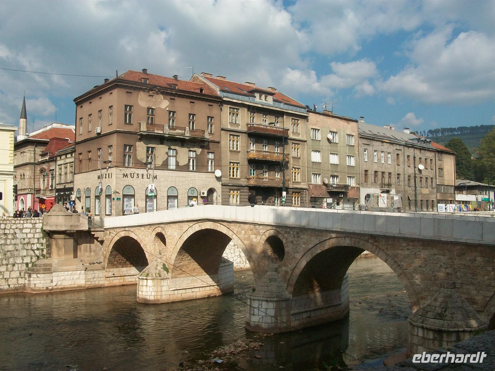 Die bosnische Hauptstadt hat in den letzten Jahren eine rasante Entwicklung hinter sich. Auf unserer Fahrt aus westlicher Richtung kommend, durchqueren wir die Vororte in denen die Gewerbegebiete wie die Pilze aus dem Boden schießen. Spätestens das ist ein Zeichen dass hier die Normalität wieder Einzug gehalten hat. Im letzten Krieg über drei Jahre blockiert, mit mehr als 10 000 Opfern, fast alles Zivilisten, war die Stadt Symbol für die Sinnlosigkeit und Grausamkeit dieses Bürgerkrieges. Aber- wie man sagt- das Leben muss weiter gehen und das kann man mit Fug und Recht von Sarajevo sagen, trotz aller noch zu lösenden Probleme: Sarajevo ist auf dem Weg eine moderne europäische Hauptstadt zu werden, in ihrem historischen Teil war sie immer schon sehenswert und den werden wir uns nun anschauen.