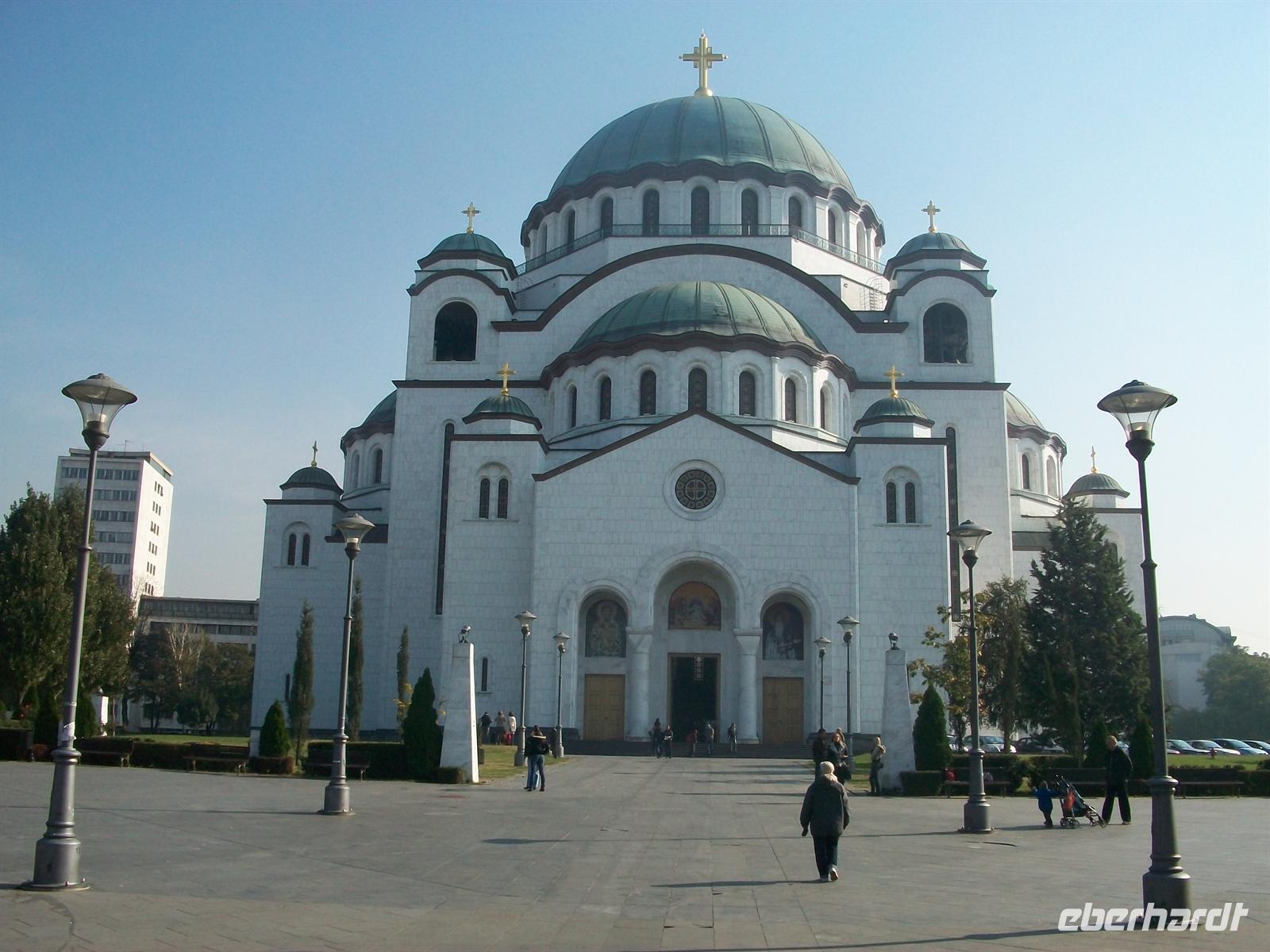 Allerdings eine ewige Baustelle, schon in den 30ern des 20. Jahrhunderts begonnen, mit vielen Bauunterbrechungen, wird sie nun heute langsam vollendet. Von außen ist alles fertig nur im Innern dauern die Arbeiten noch an. Trotzdem lohnt ein Besuch, von innen hat man einen Überblick über die Größe und es sind auch schon viele schöne Ikonen ausgestellt, die die orthodoxen Serben zur Gebetsverrichtung nutzen.