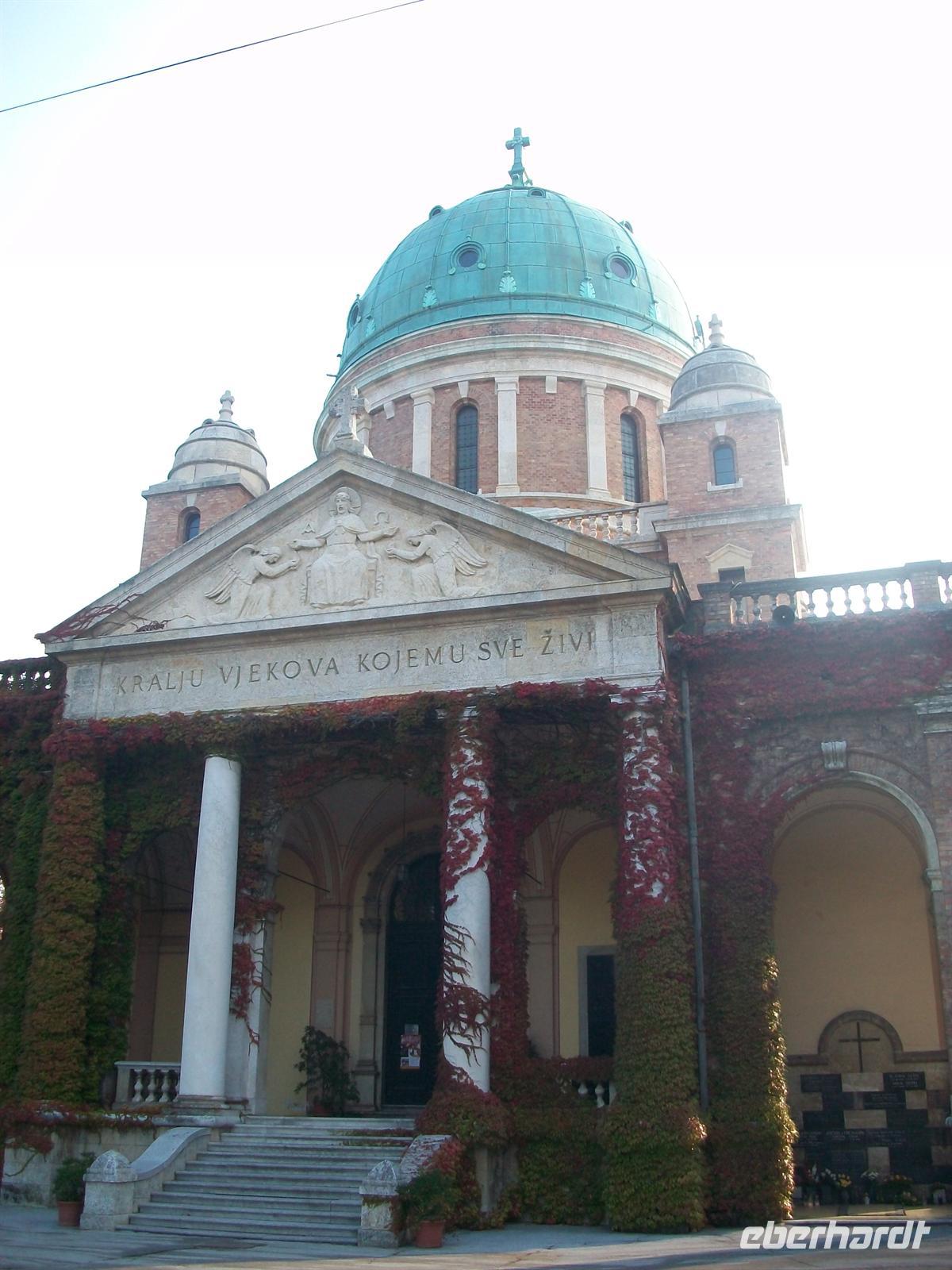 Dann führt uns der Weg in Richtung Bahnhof, auf der linken Seite erscheint das Reiterdenkmal des ersten Kroatischen Königs Tomislav, der im Jahre 925 die Königswürde bekam. Interessant ist auch der runde Bau des Kunstpavillons, der zur Moderne zu rechnen ist. Dann führt uns der Weg bergan, wir besuchen den Mirogoj- Friedhof, der eine sehenswerte Fassade aufweißt die im Neorenaissancestil entstand und fast einen Kilometer lang ist. Auf diesem Gottesacker haben alle Menschen ihre Ruhe gefunden unabhängig von Religion und Weltanschauung.