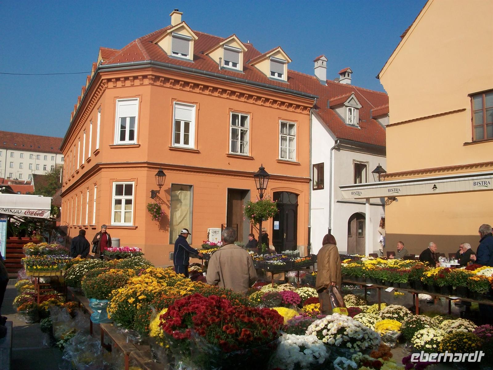 Dann gehen wir noch hinunter zum Jelacic- Platz, der als das eigentliche Zentrum der Stadt bezeichnet werden kann. Auch schon zu dieser Zeit gibt es hier ein munteres Treiben. An dieser Stelle endet nun unsere Stadtführung und an diesem sonnenscheinreichen Tag haben unsere Gäste genügend Freizeit sich alles in Ruhe anzuschauen. Es sind die letzten Stunden in Kroatien, die letzten Stunden in einem Balkanland und etwas wehmütig denken wir daran, dass wir morgen schon nach Hause fahren müssen. Doch wir haben heute noch eine schöne Fahrt vor uns und die Freizeit hier in Zagreb wird von allen gut genutzt.
