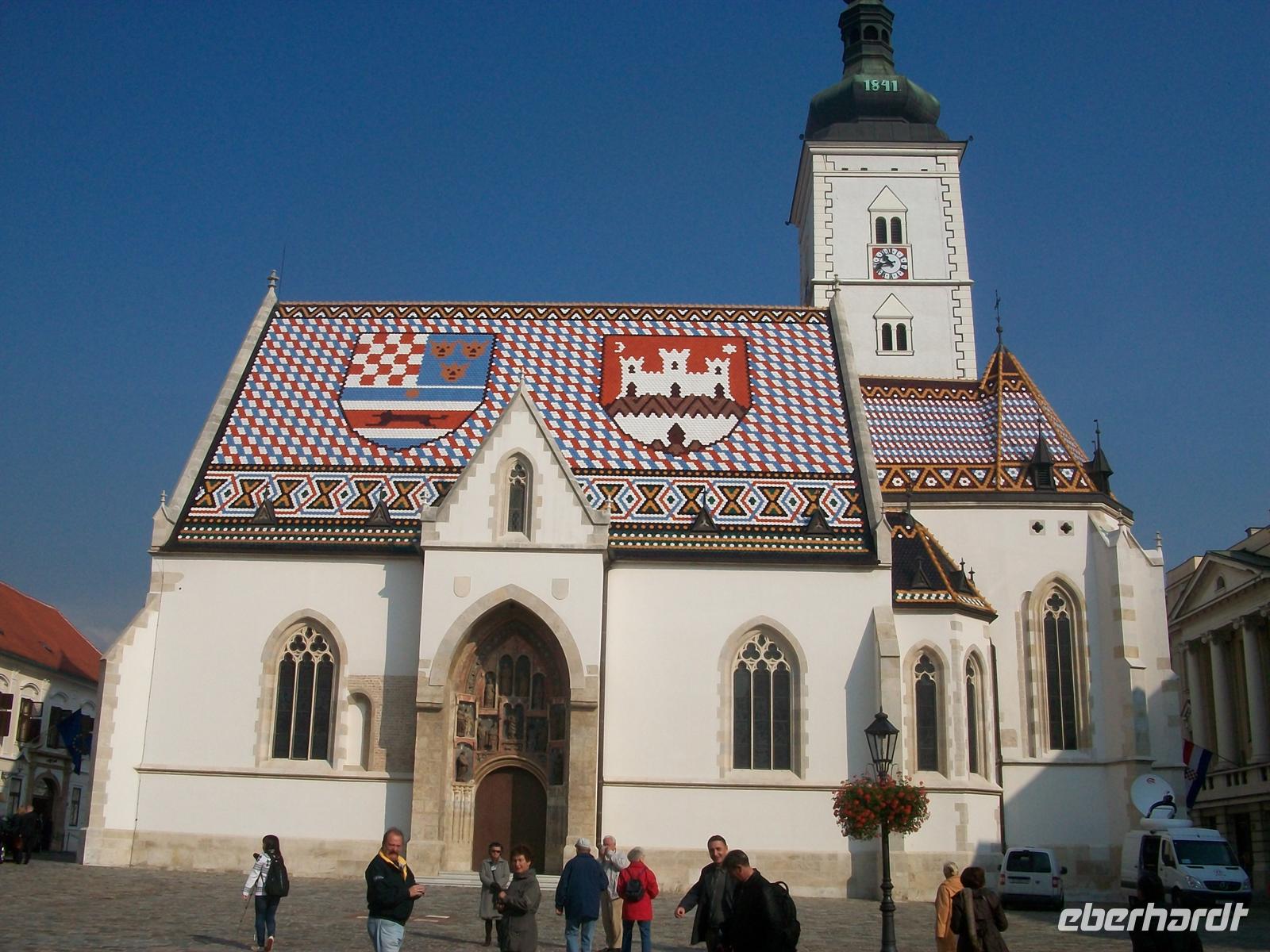 Oben, auf dem weiten Platz angelangt, haben wir einen schönen Blick auf die Markuskirche mit den schönen bunten Dachziegeln. Hier oben befindet sich auch das Machtzentrum von Staat und Stadt. Parlament, Regierungs- und Präsidentensitz und auch das Rathaus stehen hier auf engstem Raum. An der oberen Station der kleinen Standseilbahn haben wir ein schönes Stadtpanorama. Sehr reizvoll ist der Blick hinunter auf eine sehenswerte Stadt die in der vormittäglichen Sonne erstrahlt.