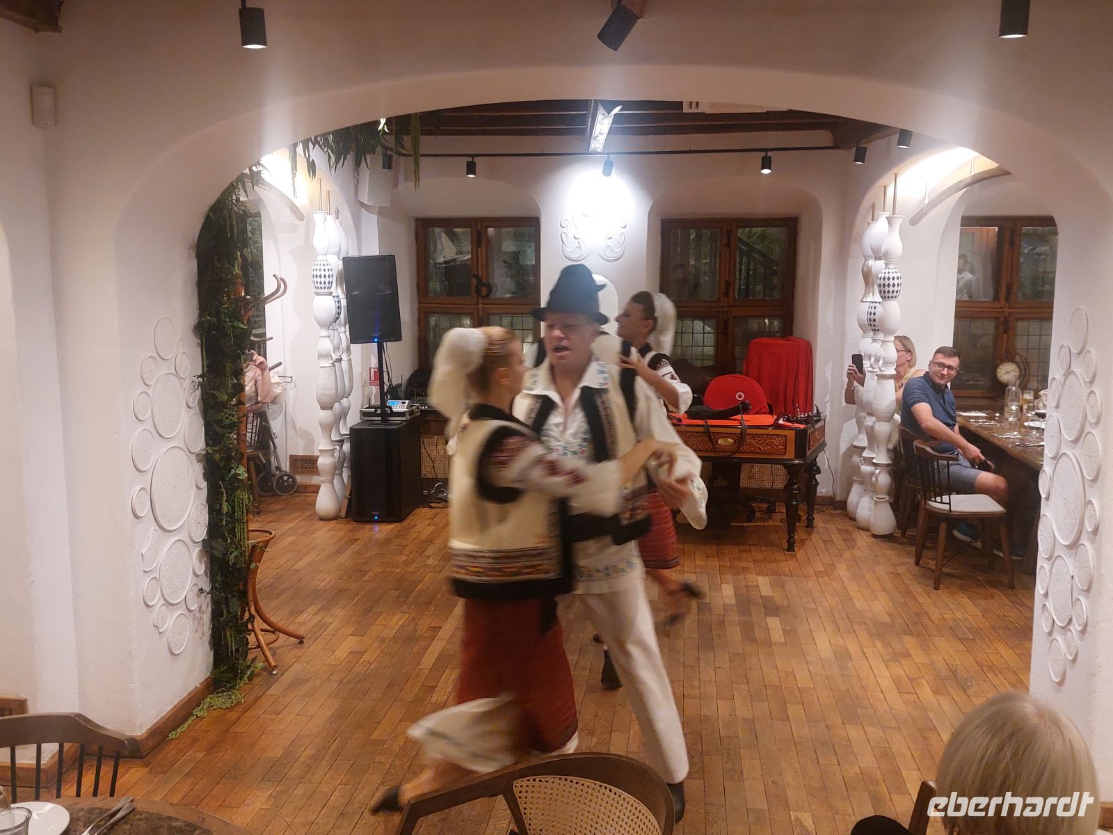 Unsere rumänische Reiseleiterin Corina empfing alle Teilgruppen einzeln am Bukarester Flughafen und unternahm mit den "pünktlichen" einen Stadtrundgang durch die rumänische Hauptstadt. Die Dresdner Gruppe fuhr nach der Ankunft direkt zum Abendessen in eine alte Karawanserei. Auf dem Wege dorthin wurden noch die bereits im Hotel eingecheckten Mitreisenden eingesammelt. Unter Begleitung rumänischer Folklore erholten wir uns von den Strapazen des langen Anreisetages.