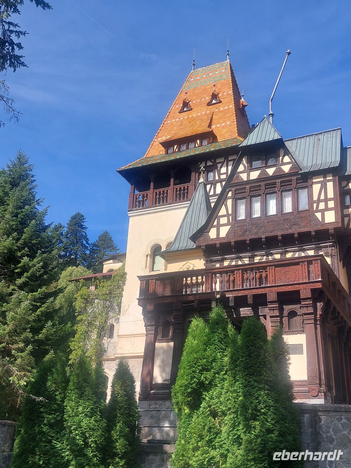 Unser erstes Ziel war das Schloss Peles, das der erste Rumänische König Carol I., aus dem Hause "Hohenzollern Sigmaringen" stammend, 1883 am Rande von Sinaia, in den Südkarpaten, errichten ließ. Es diente, bis zum Tod Carol I., als Sommersitz des rumänischen Königshauses.