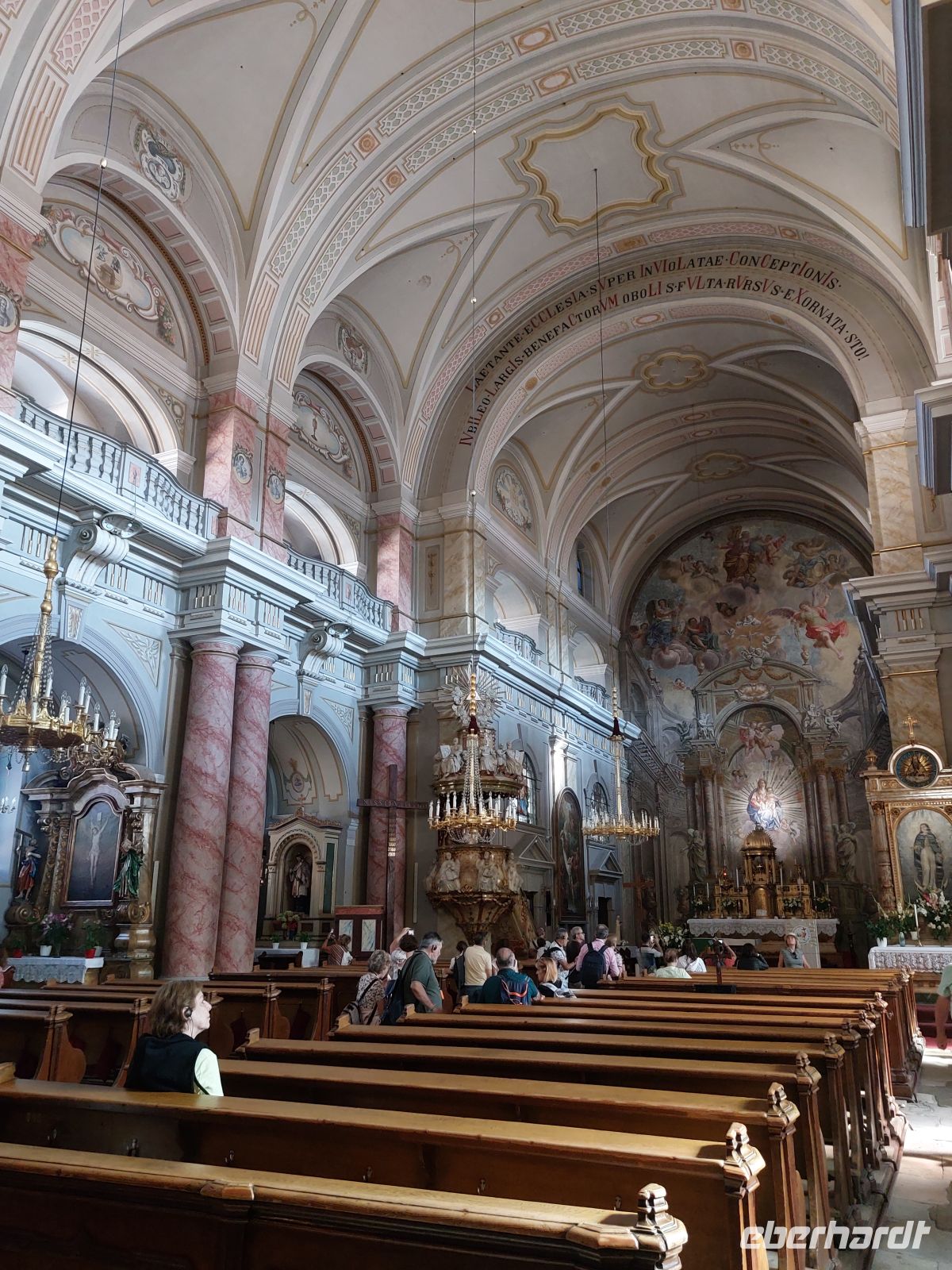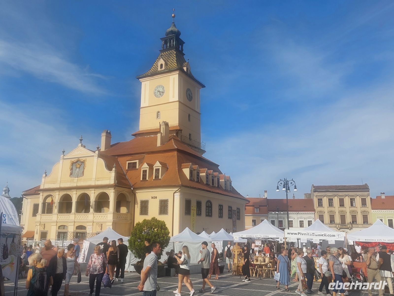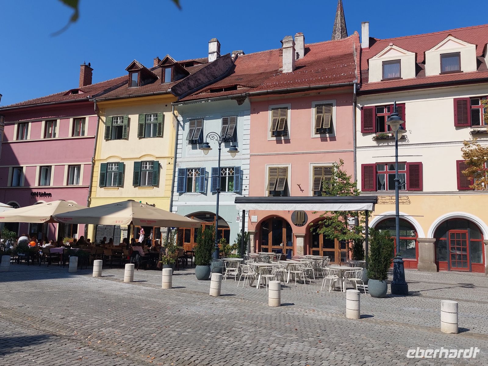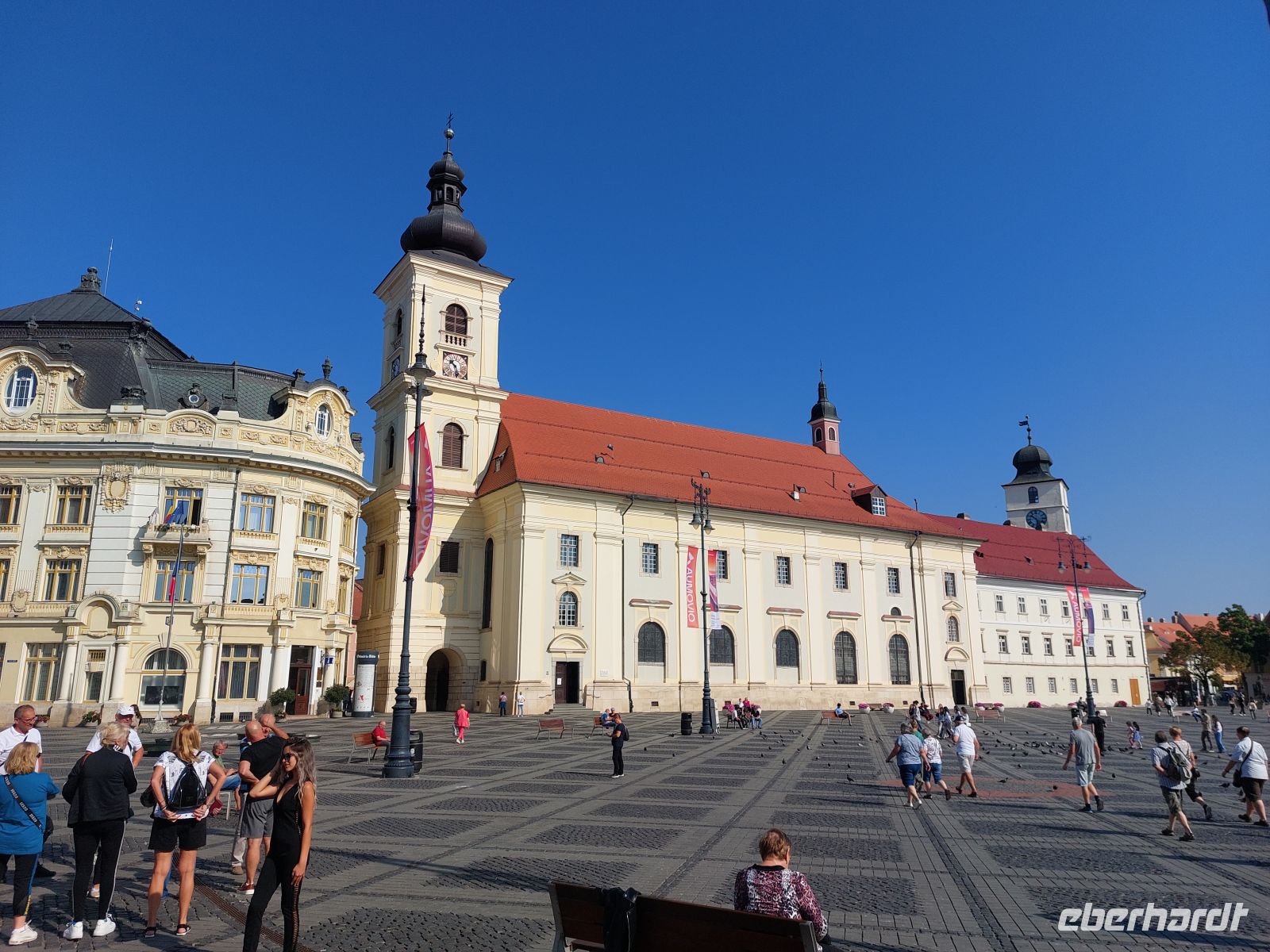 Über die, mit einer gemischten Bebauung aus dem 17. bis 20. Jahrhundert versehenen Fußgängerzone, erreichten wir den Hauptplatz. Dieser wurde dominiert von den vielen Gaststätten. Gegenüber den gastronomischen Einrichtungen erstrahlte der Gouverneurspalast, mit dem davorstehenden Denkmal für Baron Samuel von Brukental (1877 - 1887 Habsburger Gouverneur von Siebenbürgen). Etwas rechts davon stand die barocke Katholischen Stadtpfarrkirche, die wir uns auch von innen anschauten.