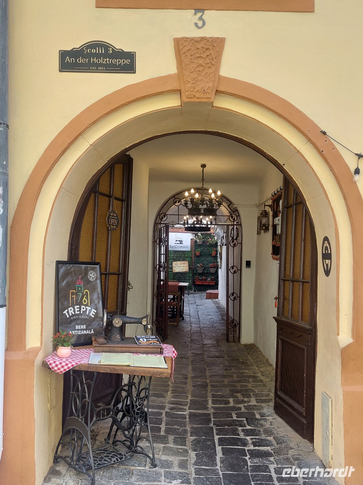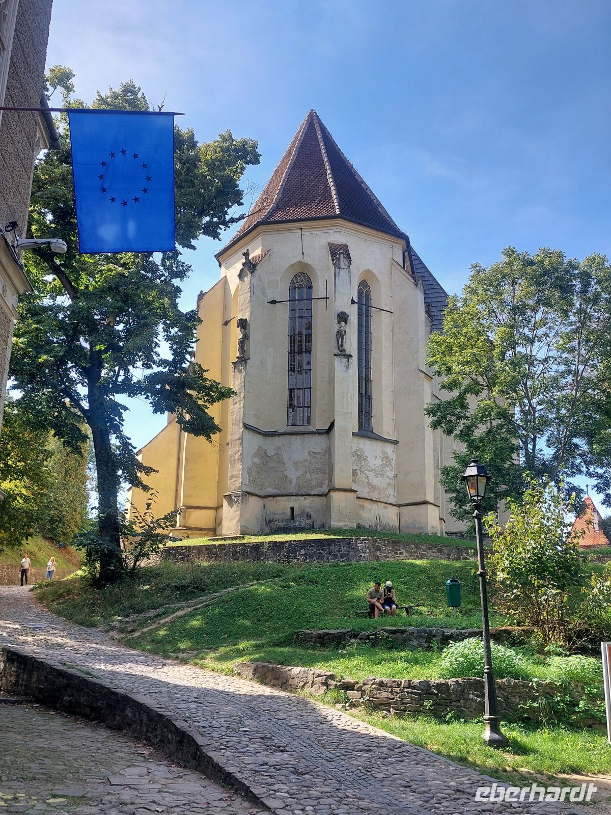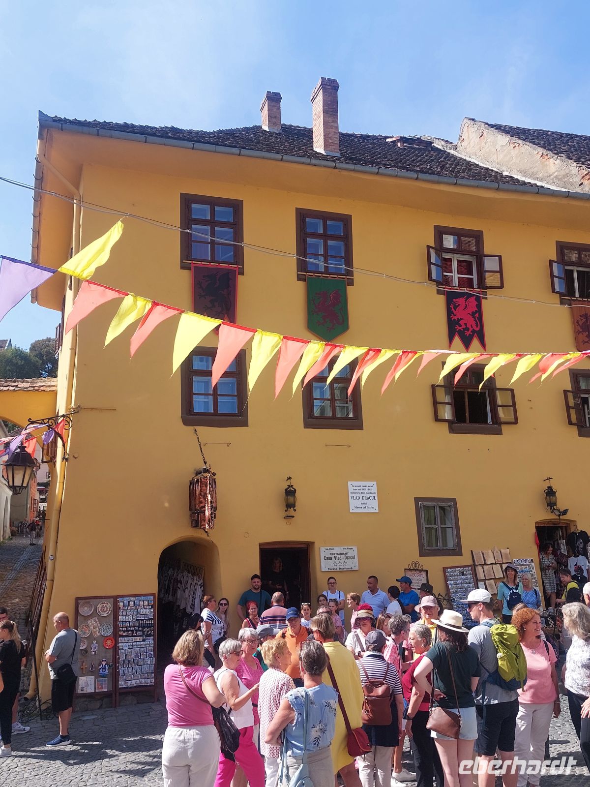 Beim Bummel durch die wunderschönen und sehr farbenfrohen Gassen erreichten wir das Geburtshaus Draculas, der im Obergeschoss liegend, die Gäste mit „warmer Hand“ begrüßte. Bevor es über die „Schülertreppe“ in die Mittagspause ging, besichtigten wir noch die Bergkirche mit ihren wieder freigelegten und mit dem Europa Nostra Award prämierten Fresken.