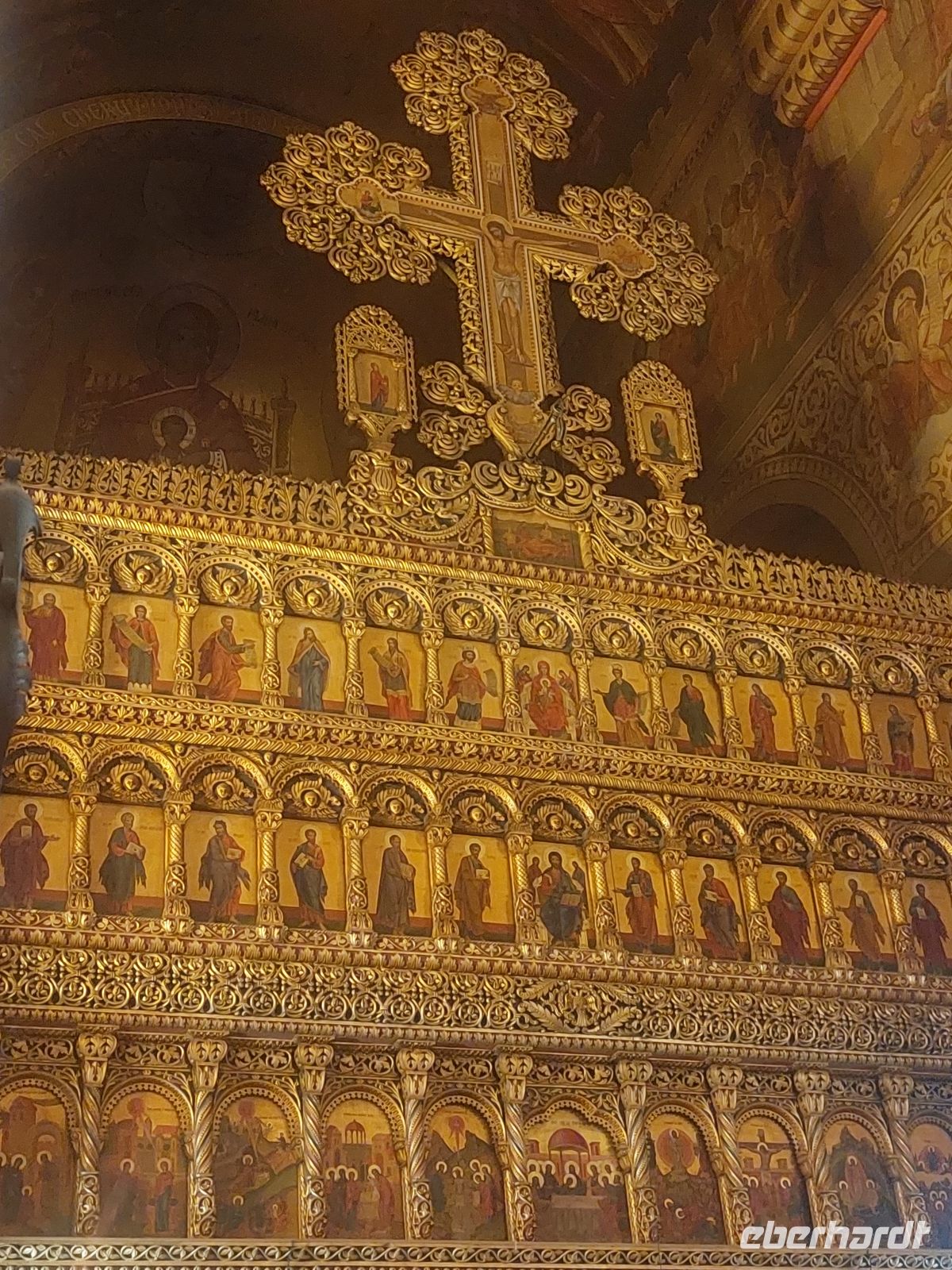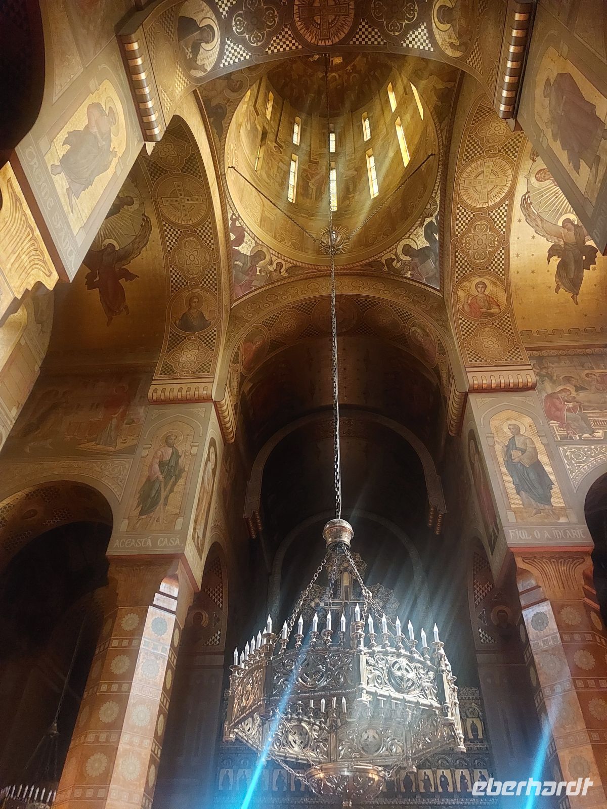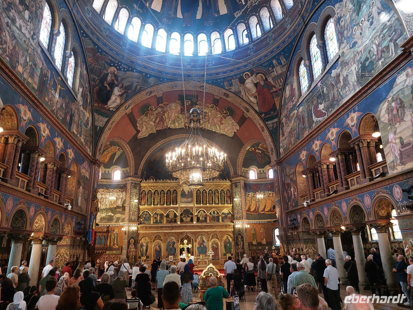 Der vierte Tag unserer Reise war als fast busfreier Tag angelegt. Wir trafen uns am Morgen mit Corina vor dem Hotel. Zuerst gingen wir zu den sehr gut restaurierten Resten der Stadtbefestigung, bestehend aus 2 Ringmauern, dem Wehrgang und dem Zimmermannsturm. Über die Burgstraße erreichten wir die Orthodoxe Kathedrale von Hermannstadt. Anlässlich des Marientages wurde hier gerade eine Messe zelebriert, was Corina aber nicht davon abhielt, uns in der Kirche ein paar Erklärungen zur Ausstattung der Kirche und zum Ablauf eines orthodoxen Gottesdienstes zu geben.