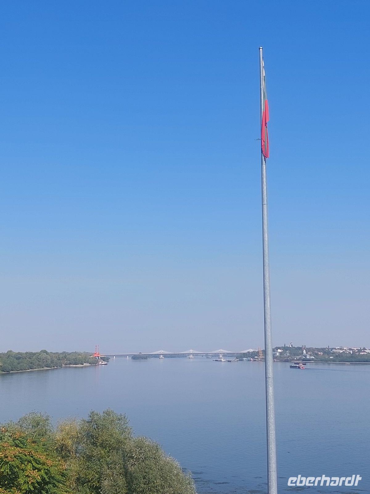 Corina ging mit uns in die „Saint Demetrius“ Metropolitan Kathedrale, die im Grundriss die Form eines griechischen Kreuzes aufweist. Ein altes, die Kirche betreuendes „Mütterchen“ schaltete extra für uns das Licht ein, und das Kircheninnere erstrahlte. Interessant waren die sehr hohe, aber mit geringem Durchmesser erbaute Kuppel und die Überfülle an vergoldeten Ikonen. Auch der Altar bestand aus einer Unzahl von in Gold eingefassten kleinen Ikonen. Nach der Mittagspause auf der Fußgängerzone von Craiova erreichten wir nach knapp 100 km Busfahrt in Calafat die 2012 eingeweihte, neue Donaubrücke. Diese 1.791 m lange Brücke ist, nach der Freundschaftsbrücke in Russe, die 2. straßenmäßige Donauquerung zwischen Rumänien und Bulgarien. Ein Blick von der Brücke auf die Donau ließ ahnen, welche Schwierigkeiten die Donauschifffahrt bei diesem Niedrigwasser haben muss.