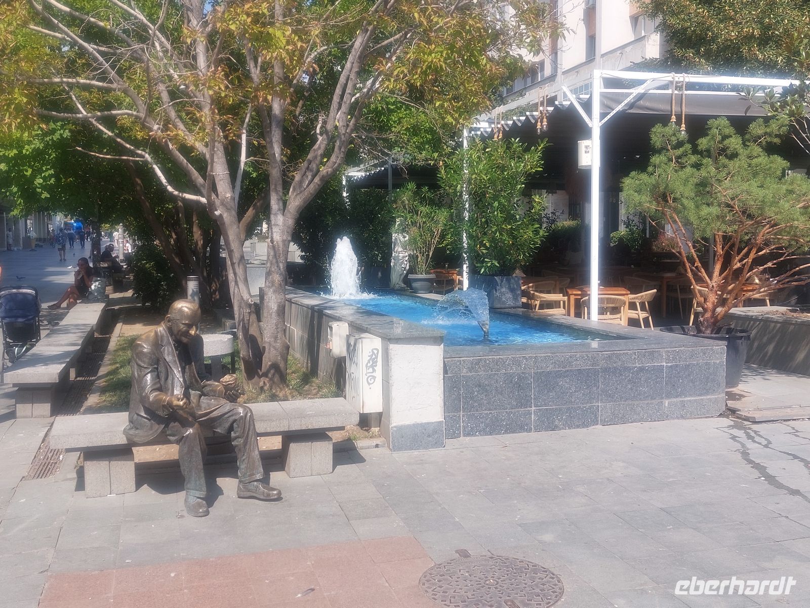 Wir stiegen gegenüber der Markthalle aus. Von hier waren 4 Kirchen von vier Religionen zu sehen. An der großen Kreuzung, wo früher Lenin zu den Gästen herunterschaute, steht heute, hoch oben, die Heilige Sofia, die die Größe und Schönheit Sofias verkörpern soll. Sie gilt als Beschützerin der Stadt und des Landes. Wir erreichten den Vitosha Boulevard und die vielen, dort ansässigen Lokalitäten.
