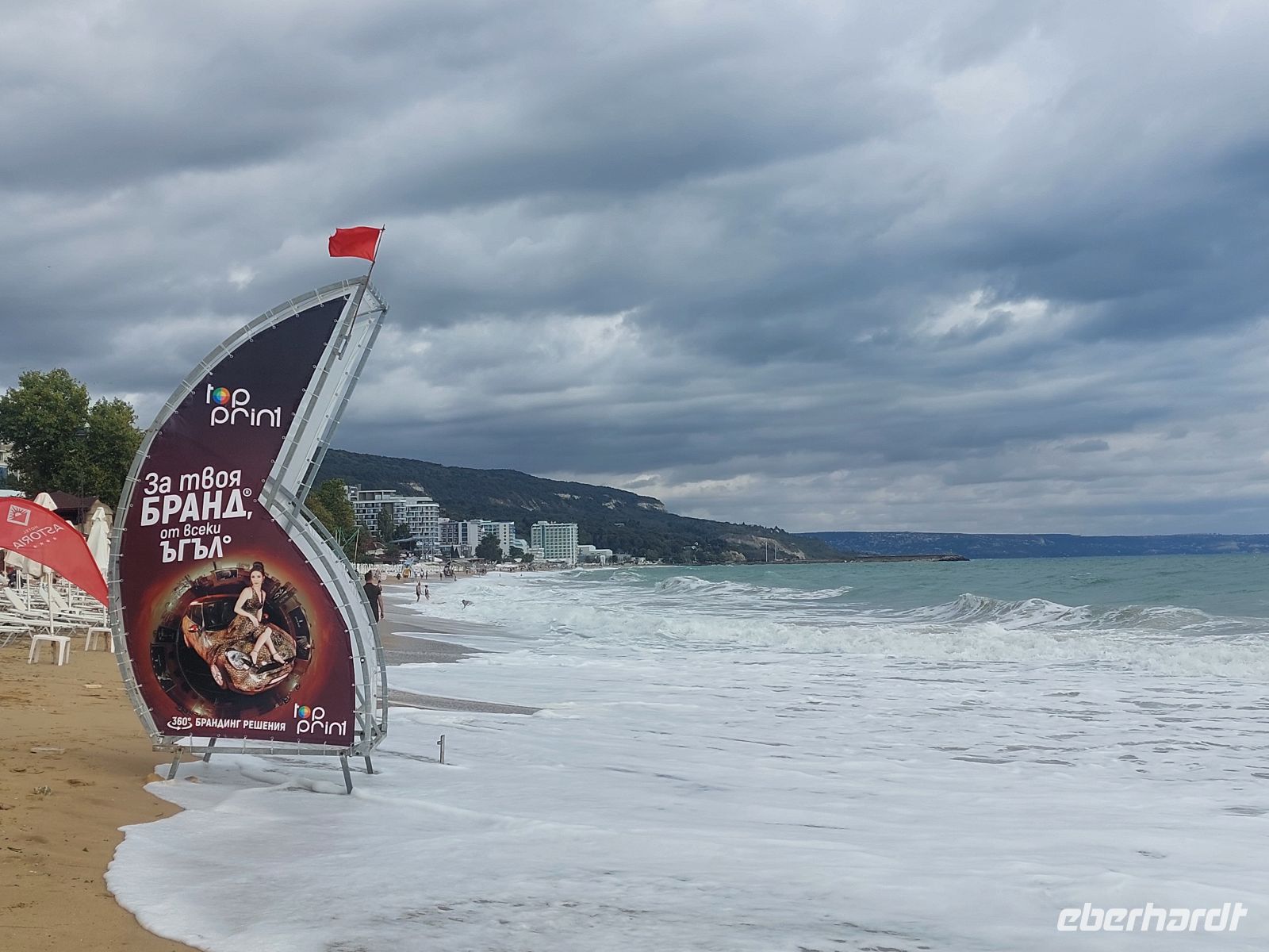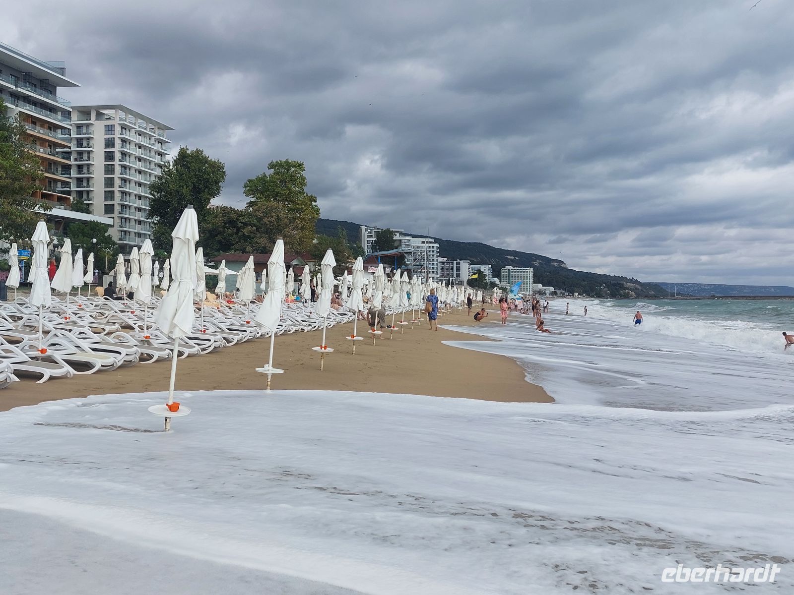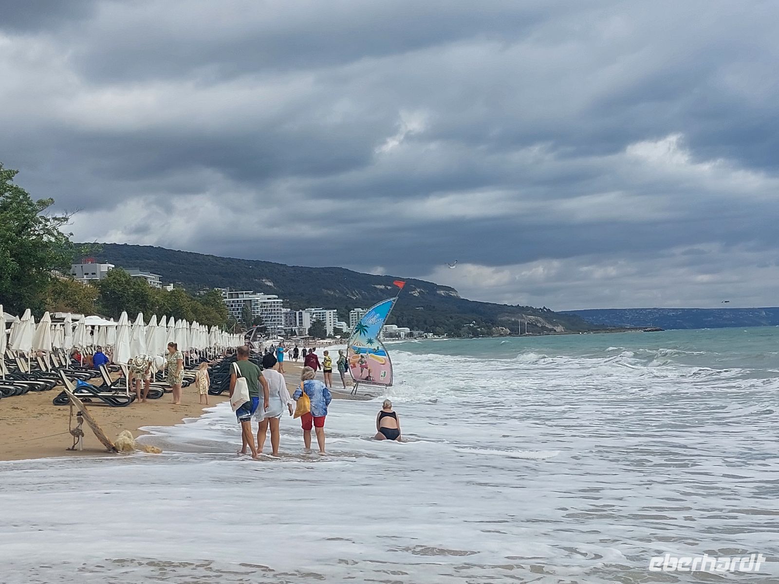 Der Sonntag am Goldstrand stand zur freien Verfügung. Leider war der Vormittag sehr bewölkt. Infolge des starken Wellengangs, der zu einem Badeverbot führte, musste bei einigen Gästen der Tagesplan umgeschrieben werden. Der Wellengang ließ uns ahnen, warum seinerzeit italienische Seefahrer das ehemalige "Stille Meer" in "Schwarzes Meer" umbenannt hatten. Nach dem Abendessen traf sich der größte Teil der Gruppe an der Poolbar, um bei einem Getränk den Tag Revue passieren zu lassen.