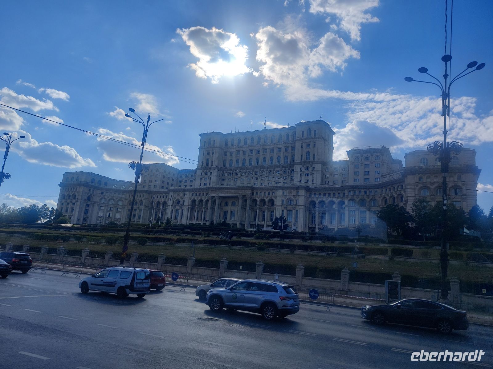 Wir durchfuhren die, mit sehr vielen Brunnen bestückte Prachtstraße „B-dul Unirii“, die auch als Brunnenstraße bekannt ist. Am Kopf dieser Allee steht der „Palast des Volkes“, dem zweitgrößten Gebäudekomplex der Welt. Mit rund 5.000 Räumen auf 365.000m², die mit 15.000 Kronleuchtern bestückt wurden, hat Ceaușescu seine Gigantomanie ausgelebt, während sein Volk hungerte und darbte.