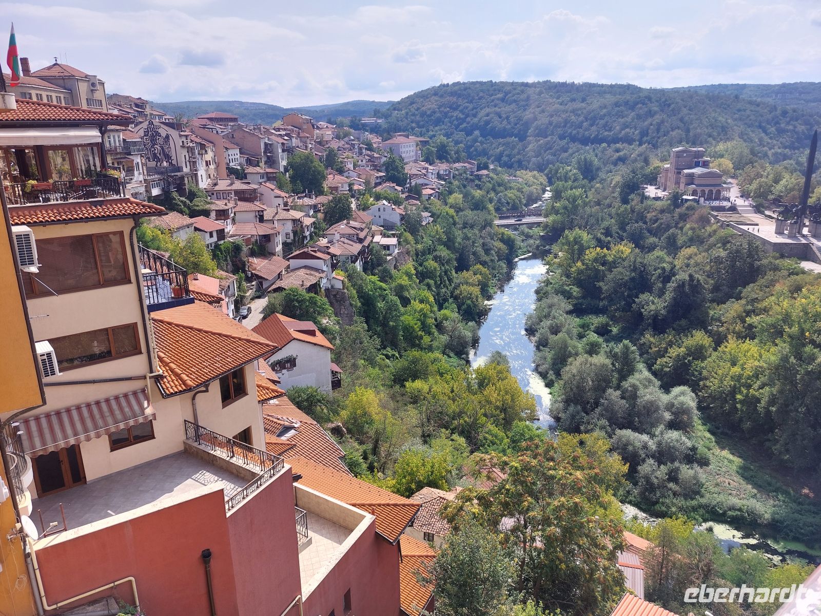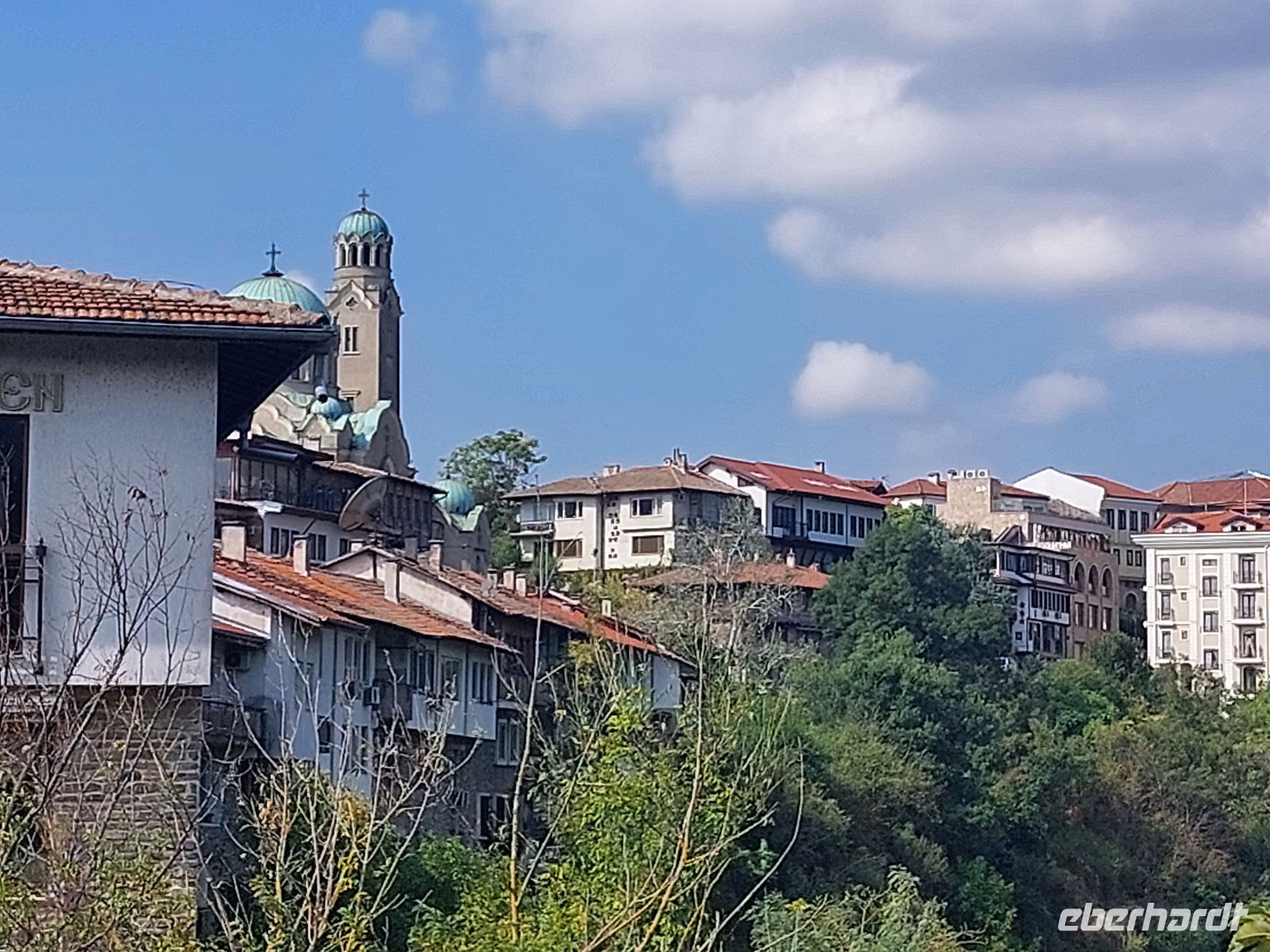Nach nur 5 Minuten bergab erreichten wir die Stadt Veliko Tarnovo, die im zweiten bulgarischen Zarenreich (12. - 14. Jahrhundert) die Hauptstadt des von der Ägäis bis zum Schwarzen Meer und der Adria reichende bulgarischen Großreich war. Den Status der Hauptstadt hat die Stadt, mit Beginn der 600 Jahre dauernden osmanischen Herrschaft, wieder verloren.