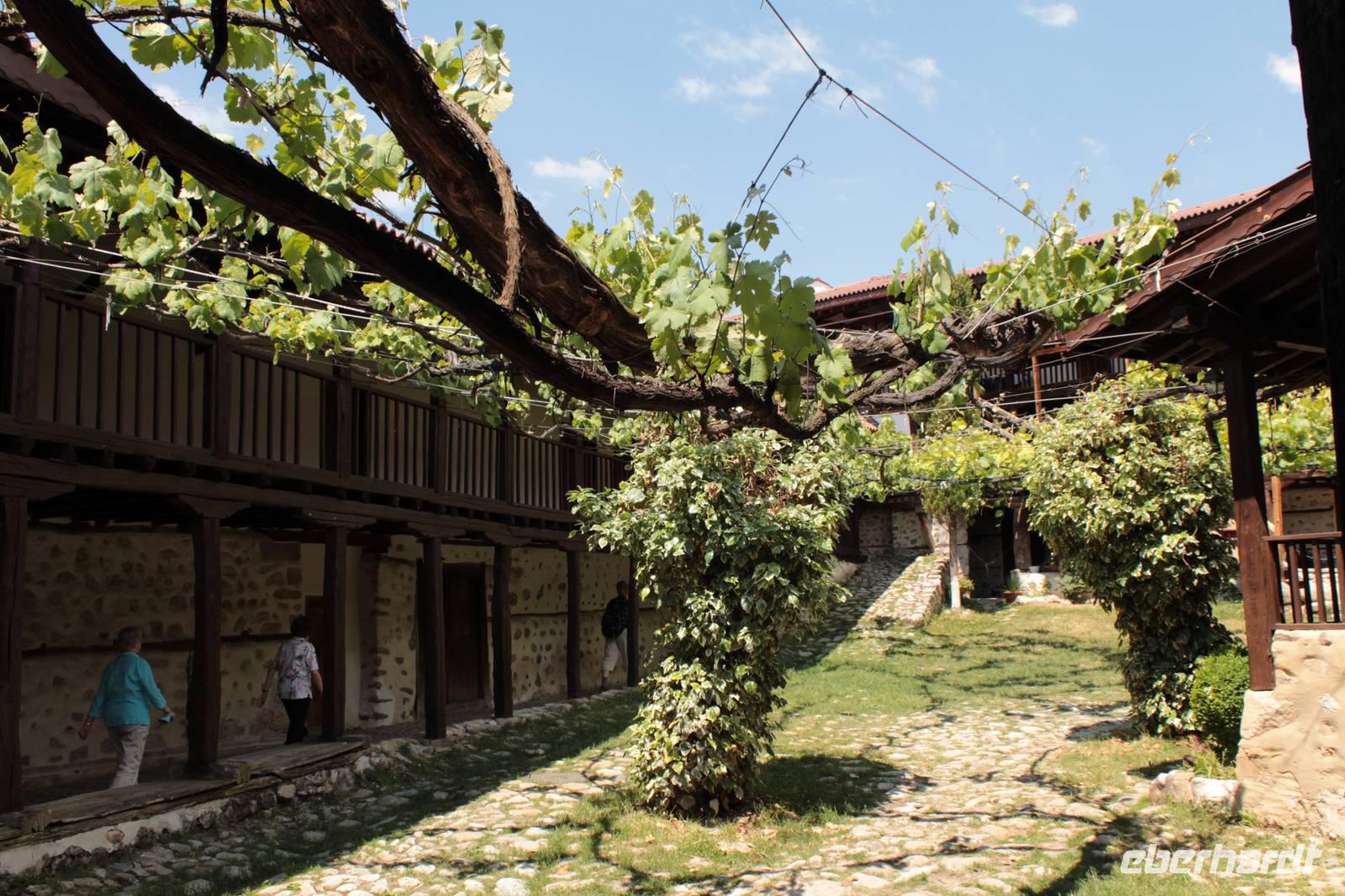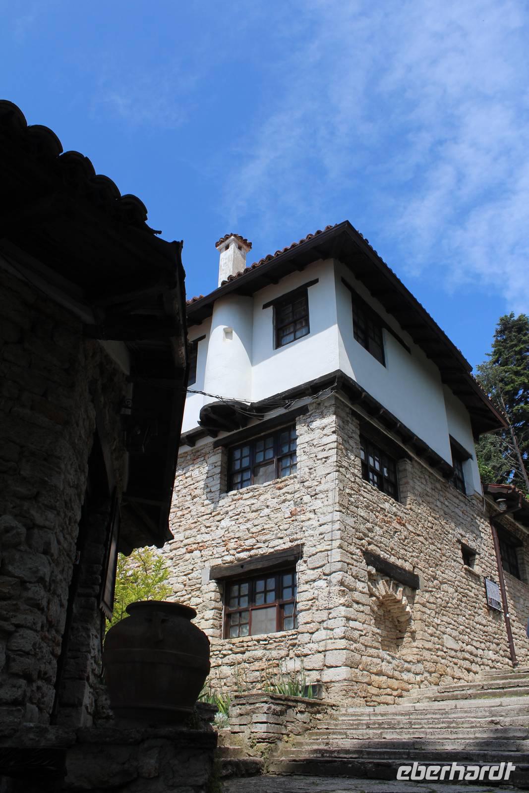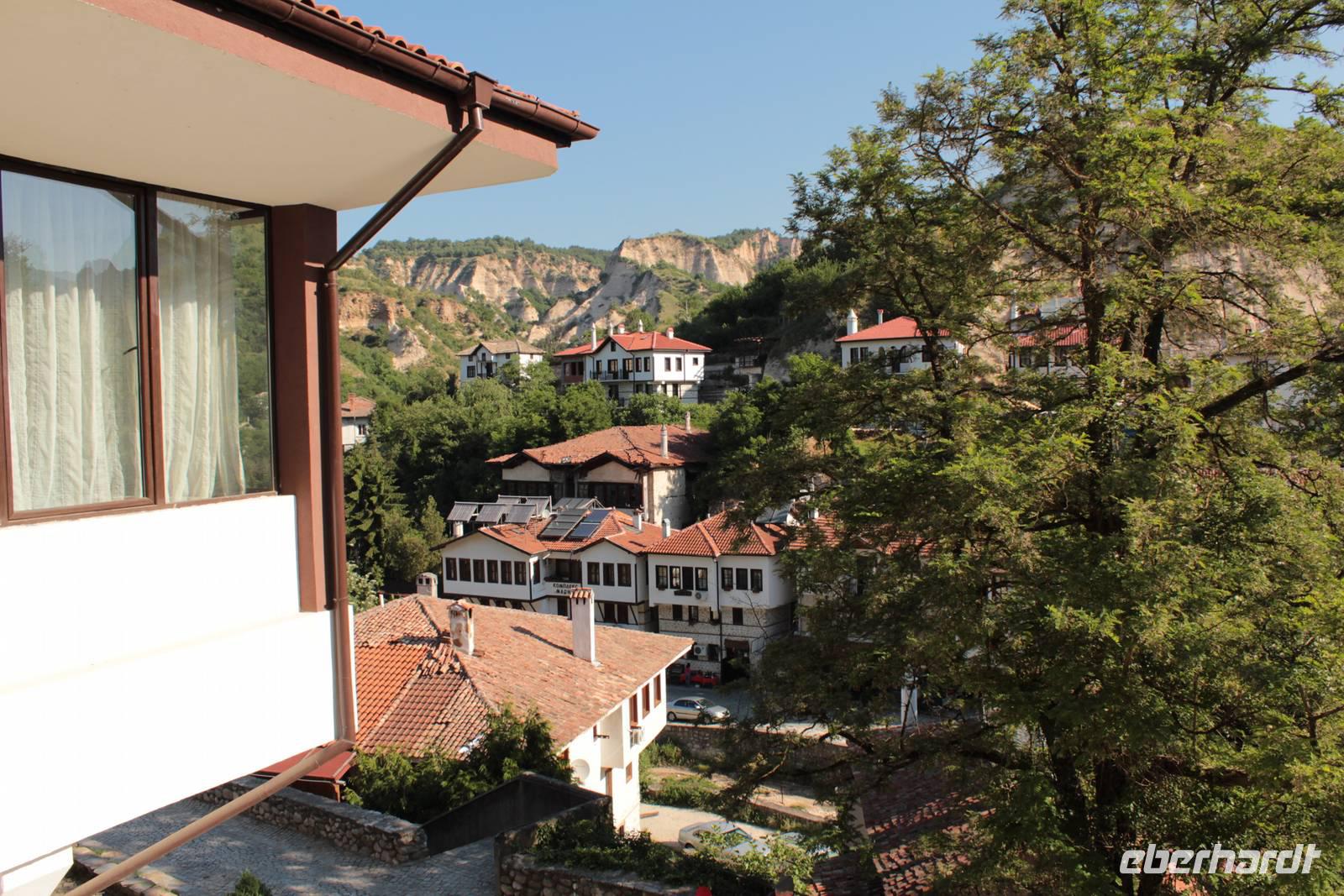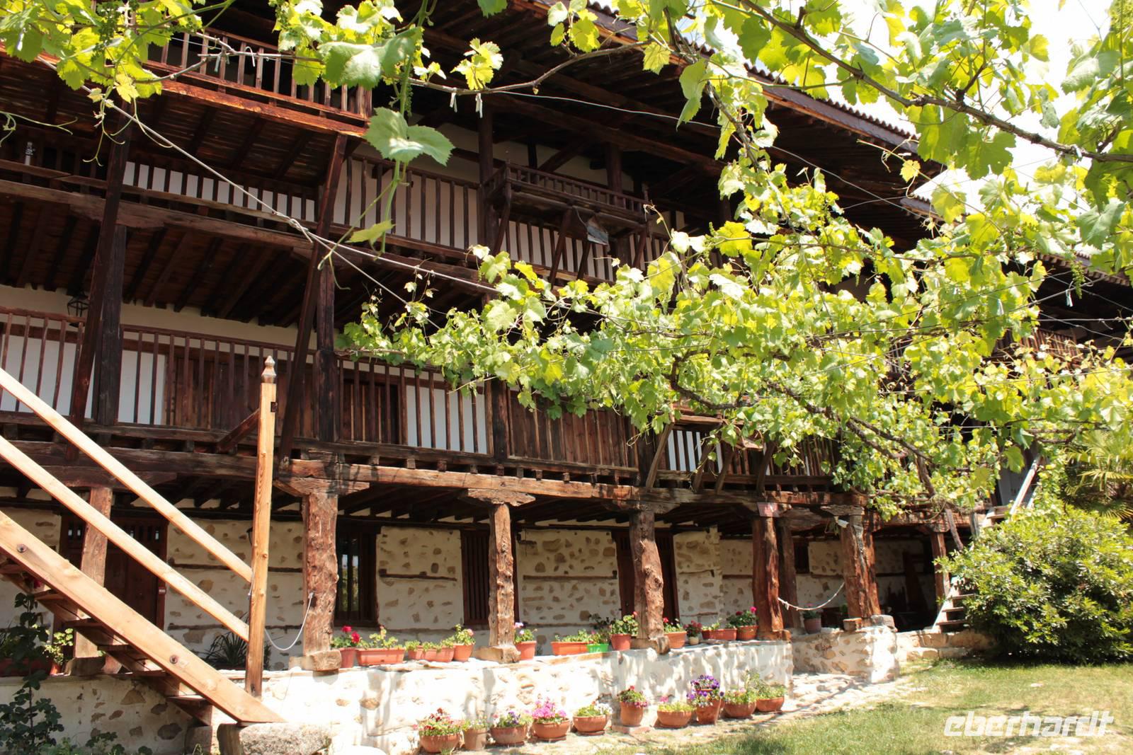 Nach der Besichtigung fahren wir zurück nach Melnik, wo nach unsere Mittagspause zum Kordopulov-Haus am Ende des Ortes spazieren. Es wurde 1754 vom wohlhabenden Griechischen Händler Manol Kordopulov erbaut und es handelt sich um eines der herausragenden Häuser Bulgariens im Stil der Architektur der Periode der Bulgarischen Wiedergeburt.