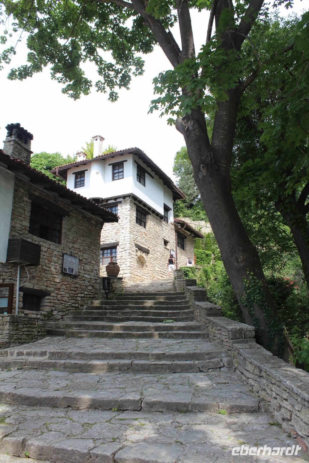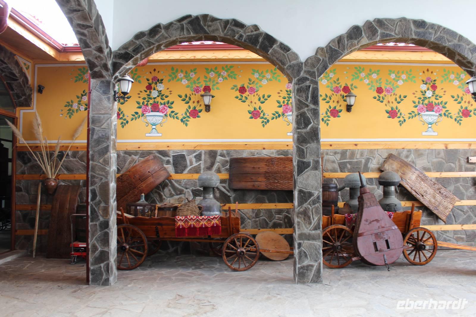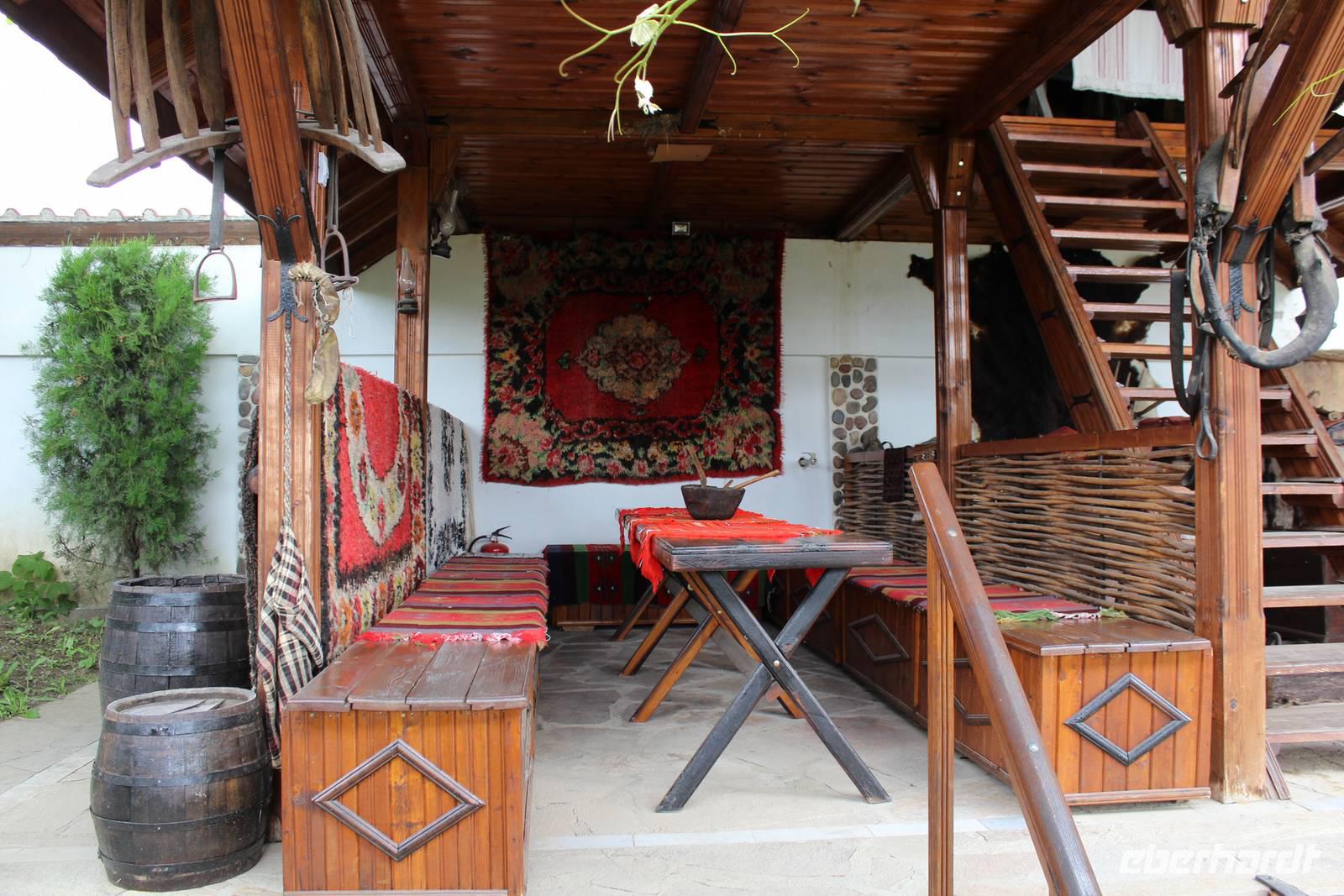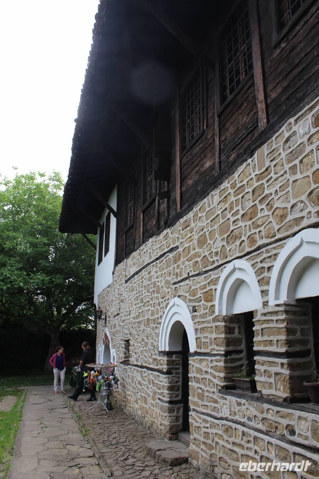 Nach der Besichtigung fahren wir zurück nach Melnik, wo nach unsere Mittagspause zum Kordopulov-Haus am Ende des Ortes spazieren. Es wurde 1754 vom wohlhabenden Griechischen Händler Manol Kordopulov erbaut und es handelt sich um eines der herausragenden Häuser Bulgariens im Stil der Architektur der Periode der Bulgarischen Wiedergeburt.