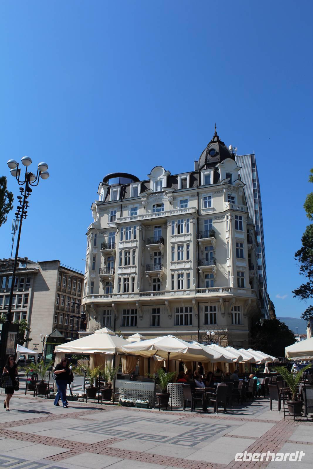 Unser Busfahrer Plamen bringt uns ins Hotel. Nach einer kurzen Erfrischungspause fahren wir nachmittags ins Zentrum und haben Zeit die Stadt erst einmal auf eigene Faust zu erkunden. Gerade aus dem Bus ausgestiegen überraschte uns ein heftiger Platzregen, was dazu führte, dass wir erst einmal einen Kaffee tranken, bis sich der Regen gelegt hat. Als die Sonne dann rauskam, konnten wir unseren Spaziergang fortsetzen und Sofia erkunden.