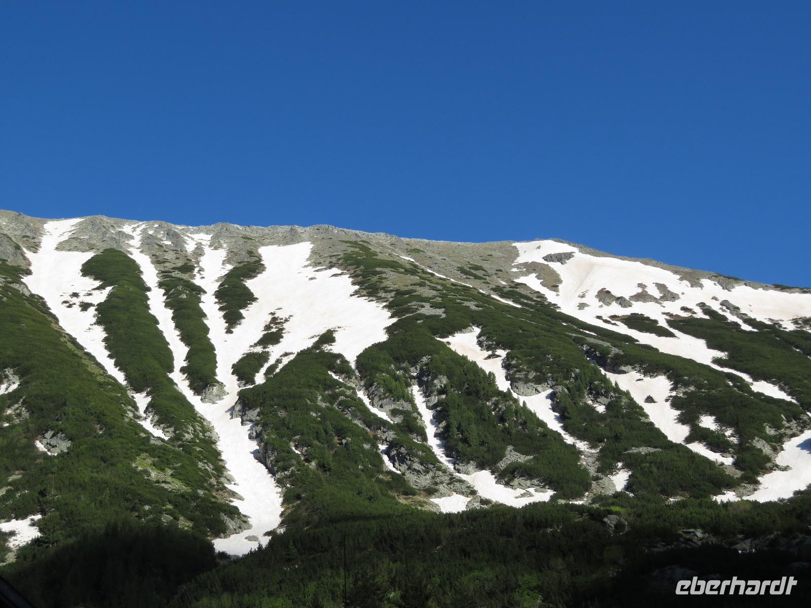Da wir den Wunsch eines Gastes erfüllen wollten, fuhren wir abschließend noch zur Wichrenhütte auf 1972 m Höhe. Auf dem Weg sahen wir letzte Schneefelder sowie den ältesten Baum Bulgariens, eine Panzerkiefer, welche bereits 1300 Jahre alt ist. Wir genossen die frische, kühle Luft und das herrliche Bergpanorama, dann ging es zurück nach Bansko.